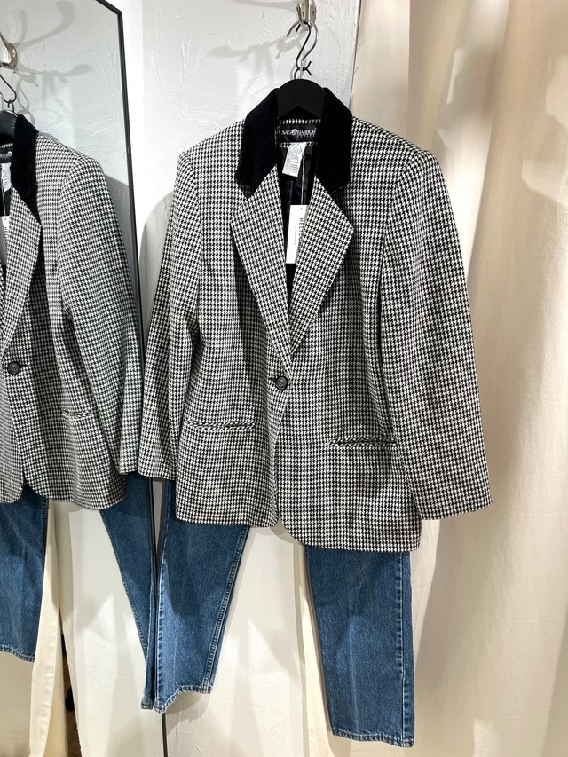 90's houndstooth velvet collar jacket