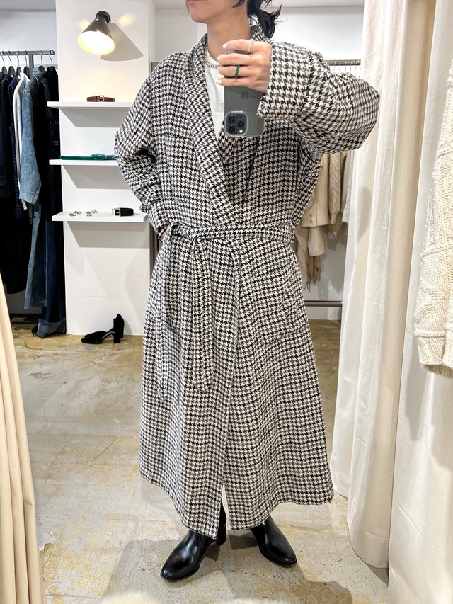 wool checked belted gown 千鳥格子柄のクラシックでメンズライクなチェックが可愛いロングガウン。 薄手のコートやロングカーディガンとして活躍するガウンです。 Price:¥11000+tax Quality:wool 50%,polyester 50% Color:gray Size: 54 Shoulder 44cm,Bust 51cm,Length 120cm,Sleeve 62cm Condition:Vintage 右袖口に汚れ(画像7) ≪注意事項≫ 当店ではused、vintageを取り扱いしております。古着という特性上コンディションは様々です。ダメージや汚れなどがある場合もございます。ひとつひとつの商品が持つストーリーやコンディシにご理解の上お買い求めください。 お客様のPC環境の違いにより、実際の色合いとは異なって見える場合があります。あらかじめご了承ください。 ≪返品・交換について≫ 古着に関する商品の劣化、ほつれ、色落ち、汚れ等での返品はお断りしております。古着に抵抗のある方や、気になる点がございましたらご購入前にお気軽にご質問下さい。