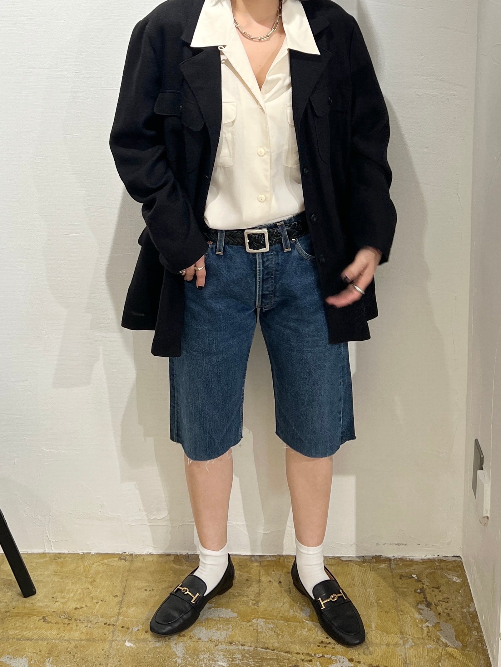 アップサイクルする為にセレクトしたデニムをカットオフしたハーフパンツ。