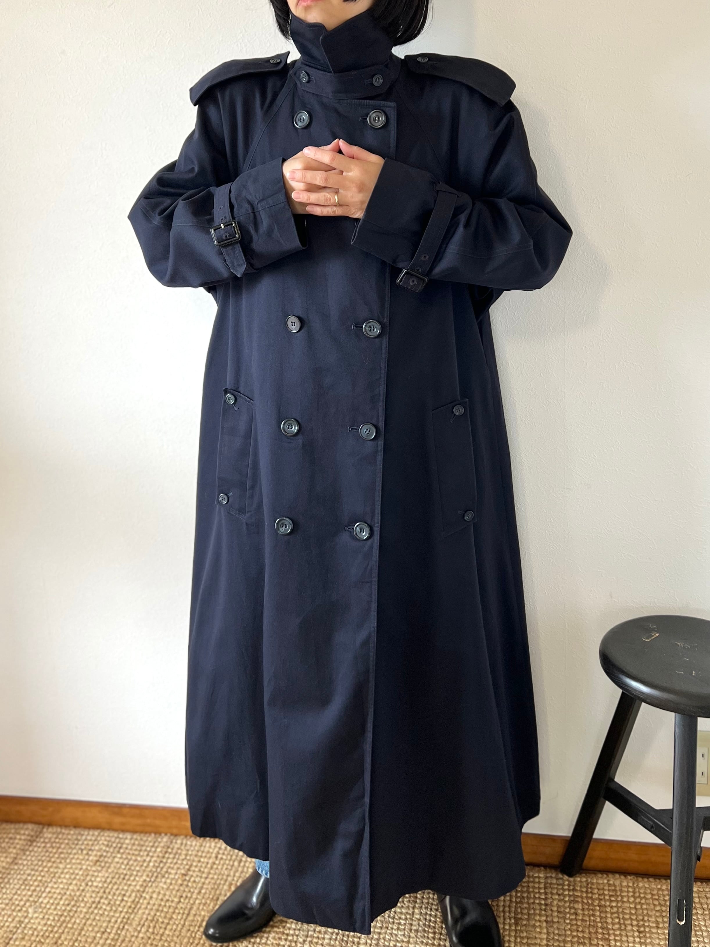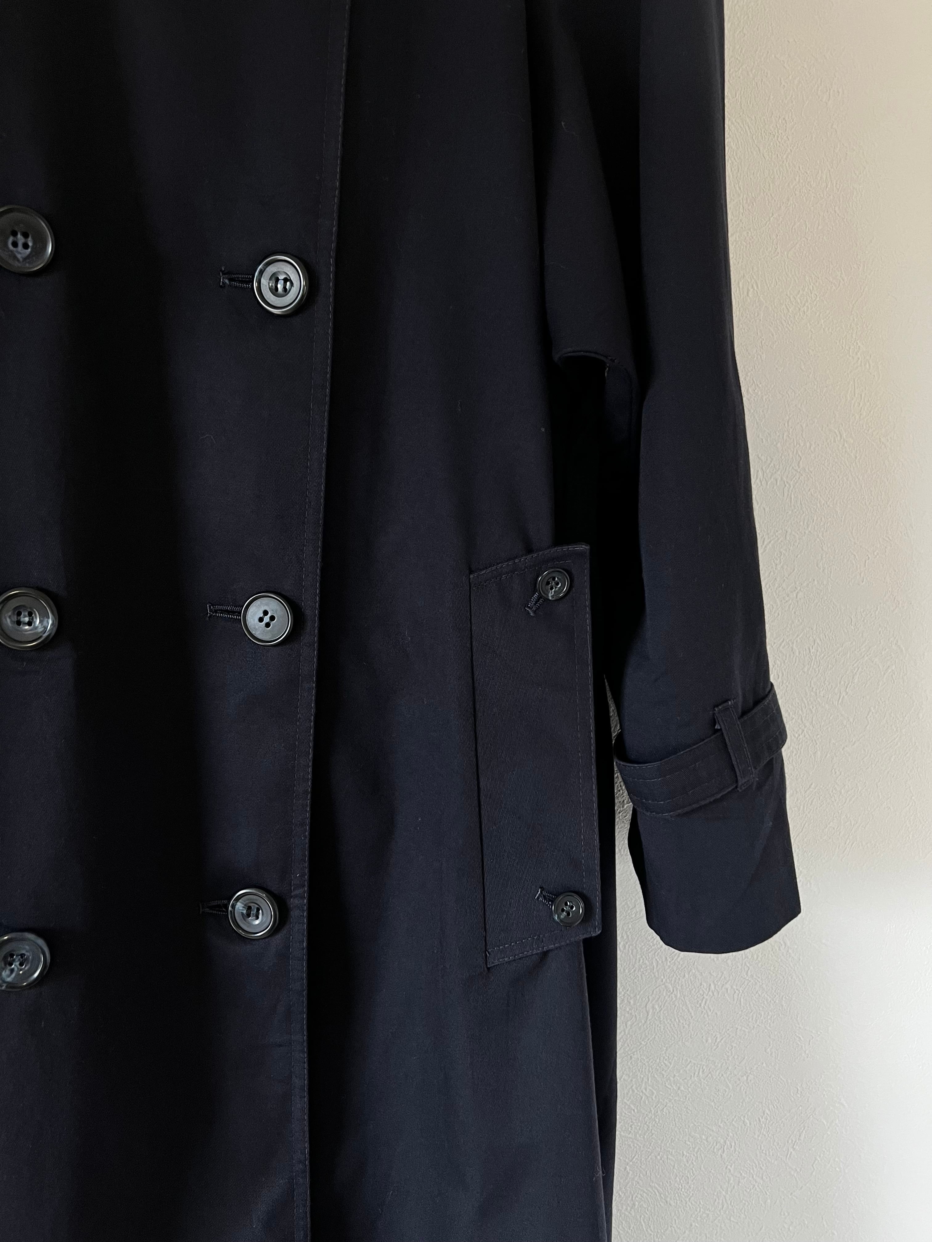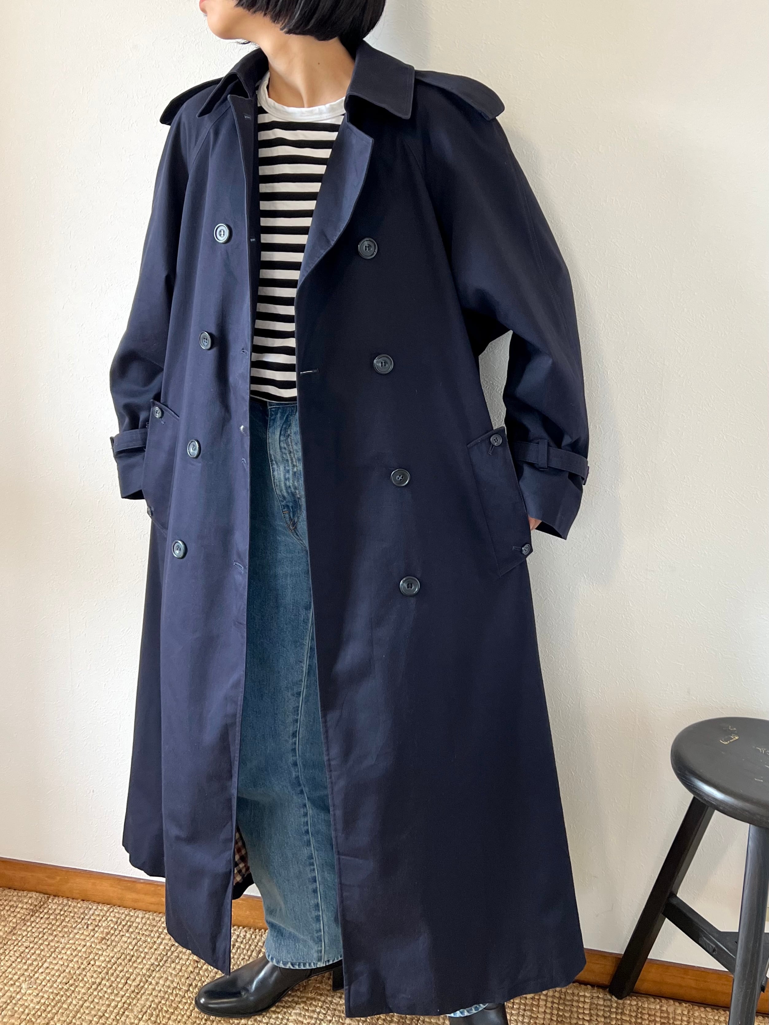 黒に近いダークネイビーに元々ベルトの無いAラインシルエットがとても綺麗です。