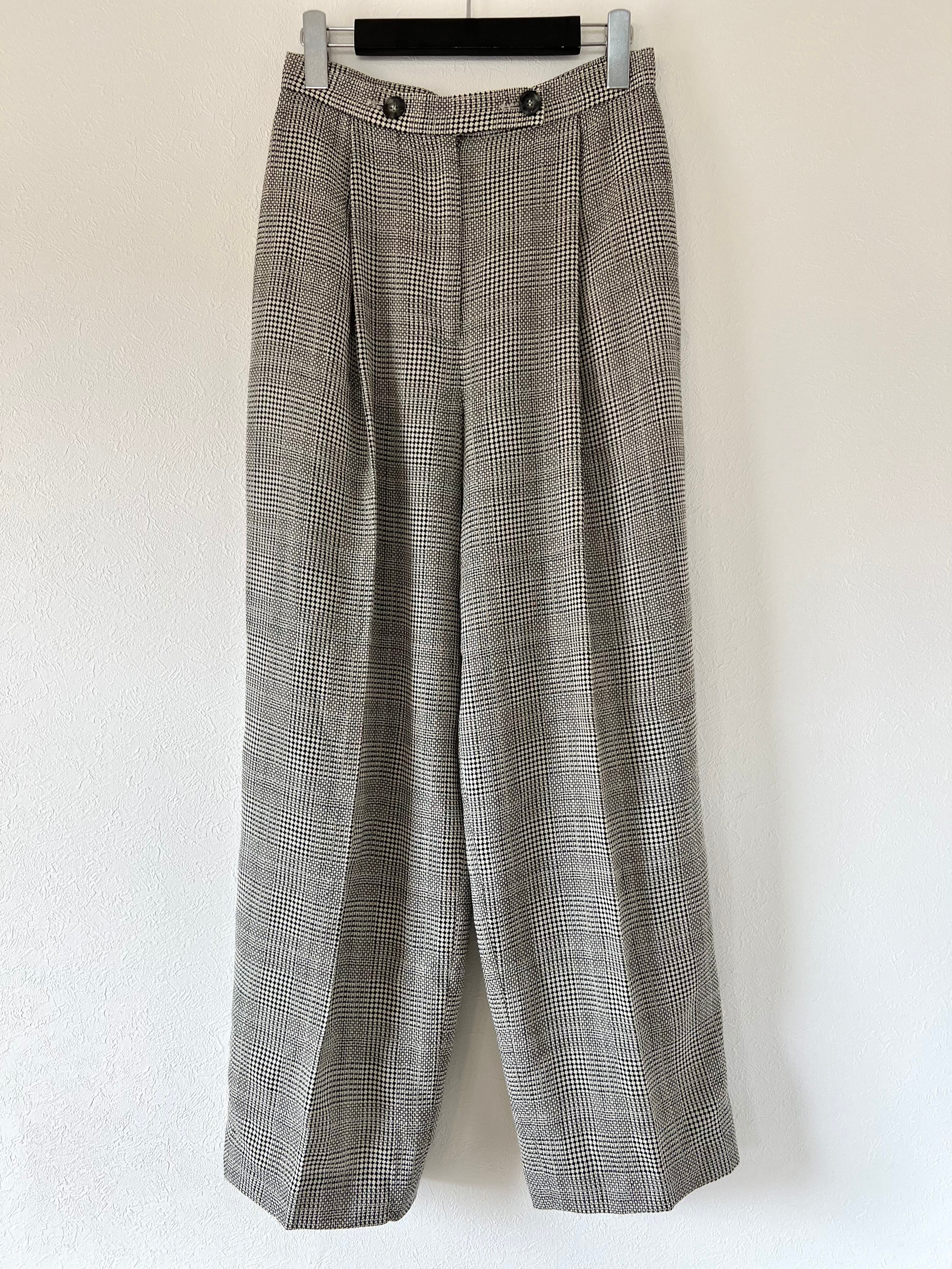グレンチェックにワイドなシルエットがハンサムなEmanuel Ungaroのタックパンツ。