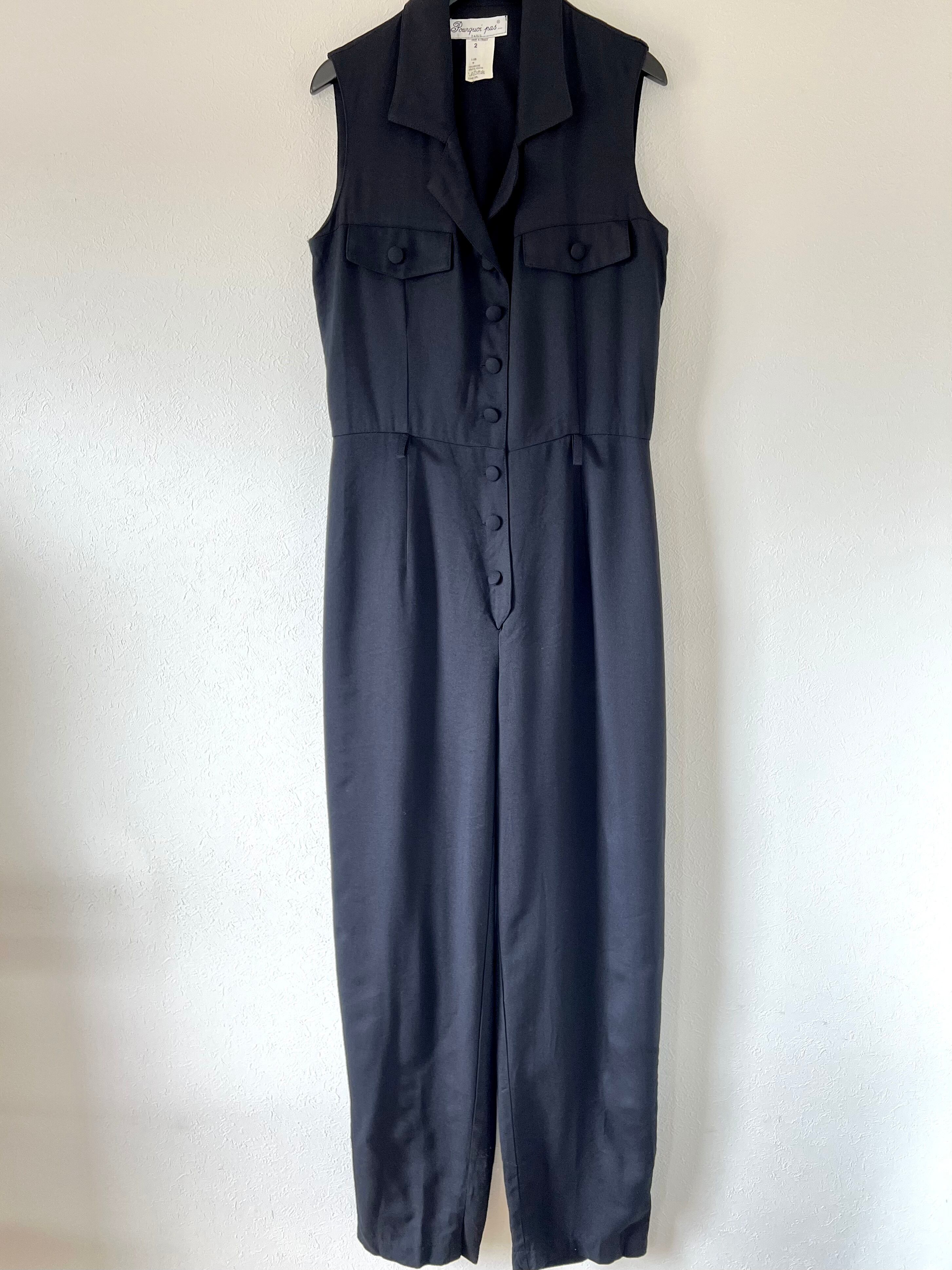 ラペルのあるハンサムなデザインのフランス製ヴィンテージジャンプスーツ。