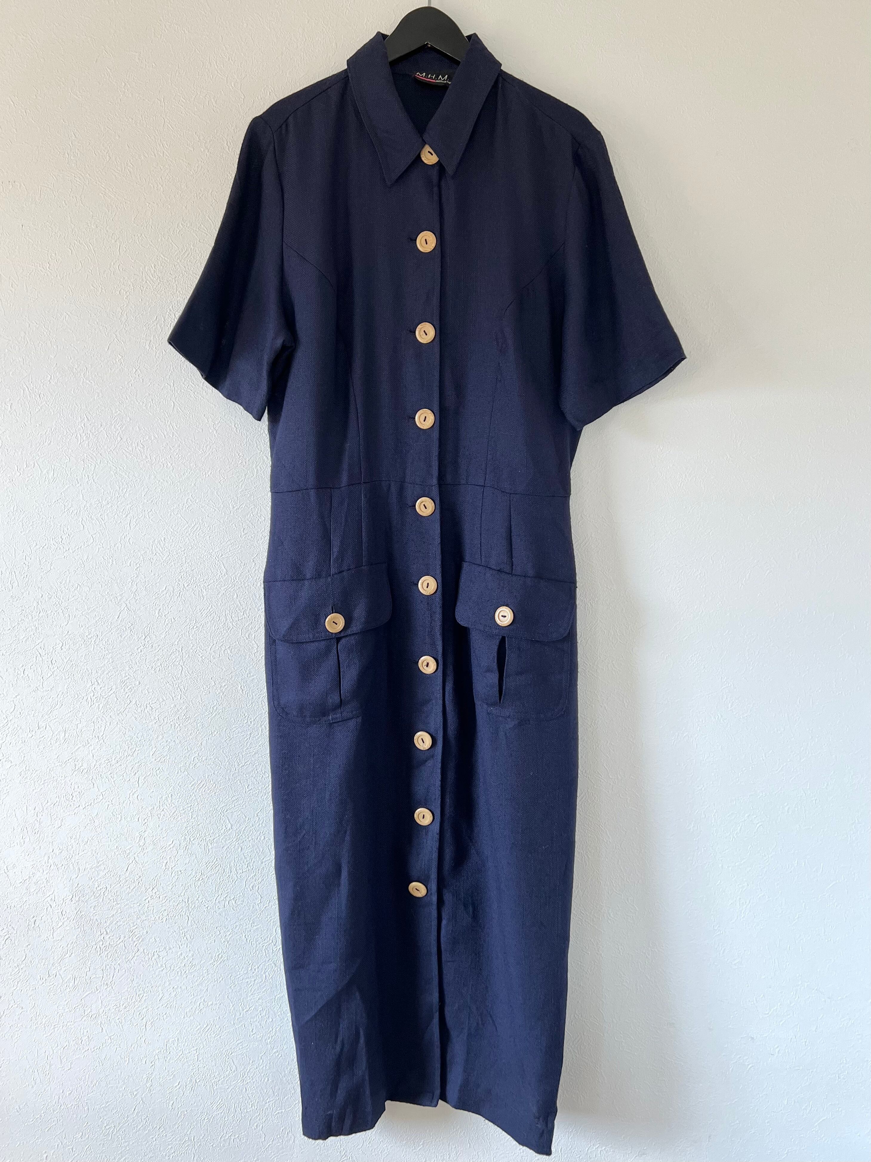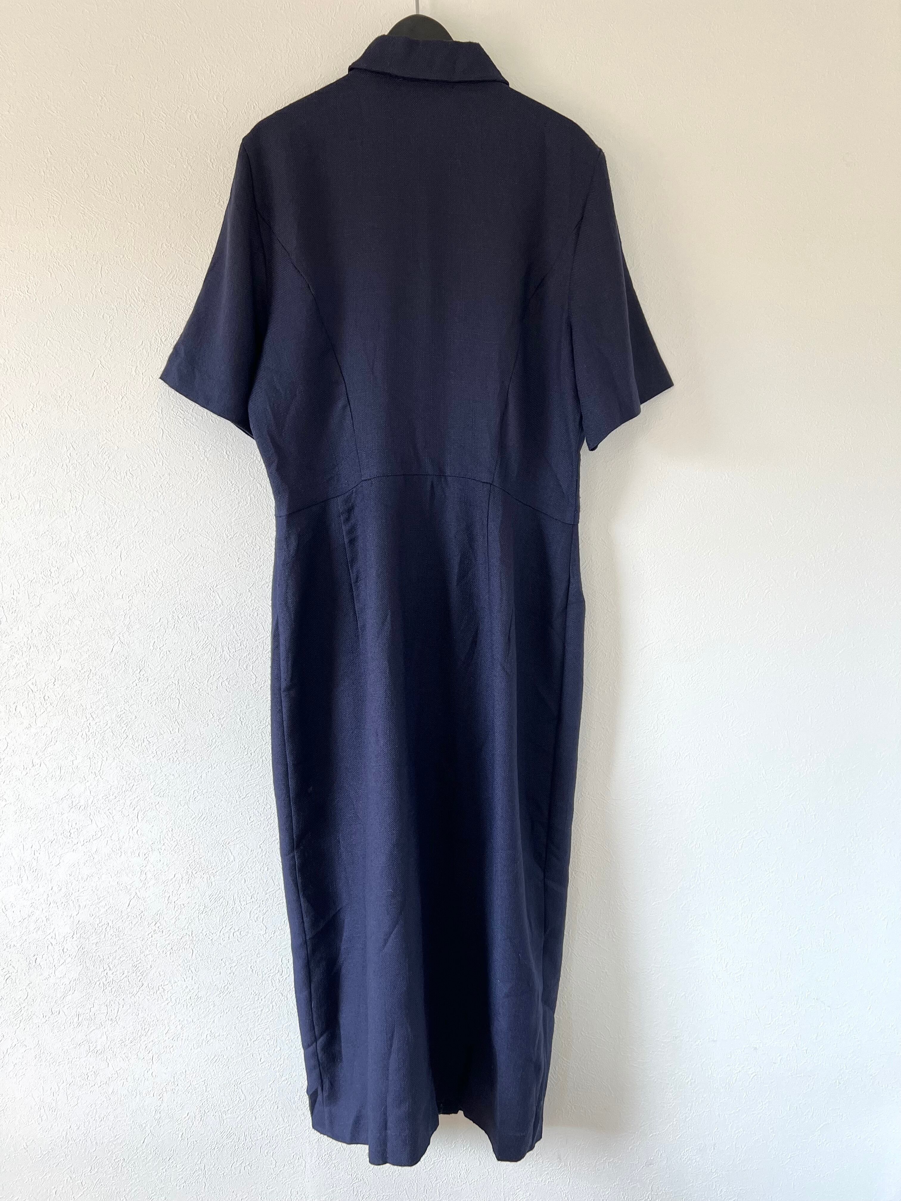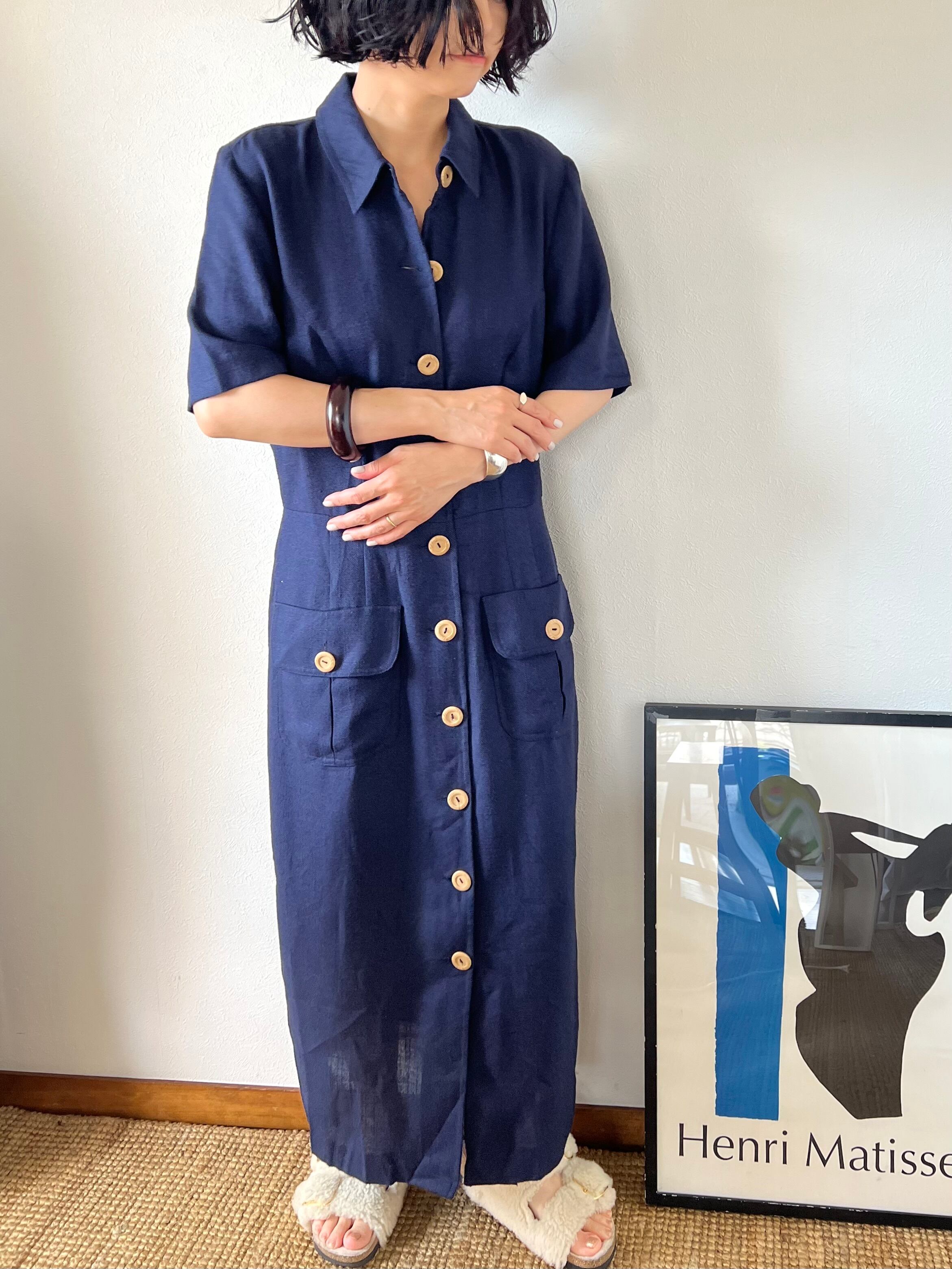 シックなネイビーカラーや女性らしい切り替えも素敵なフロントボタンのワンピース。