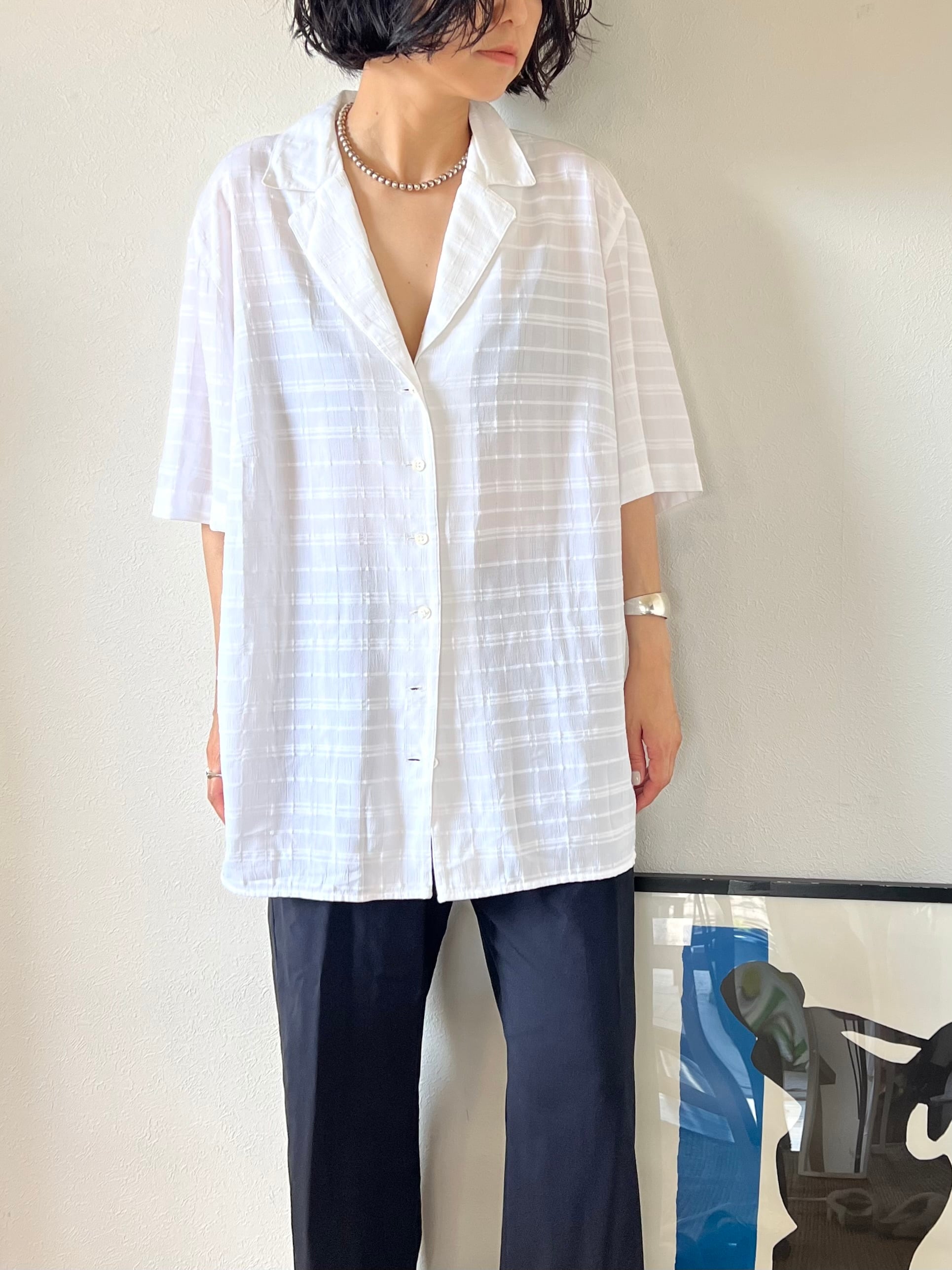 透けのある涼しげな織りのチェック柄が可愛い90'sのボックスシャツ。