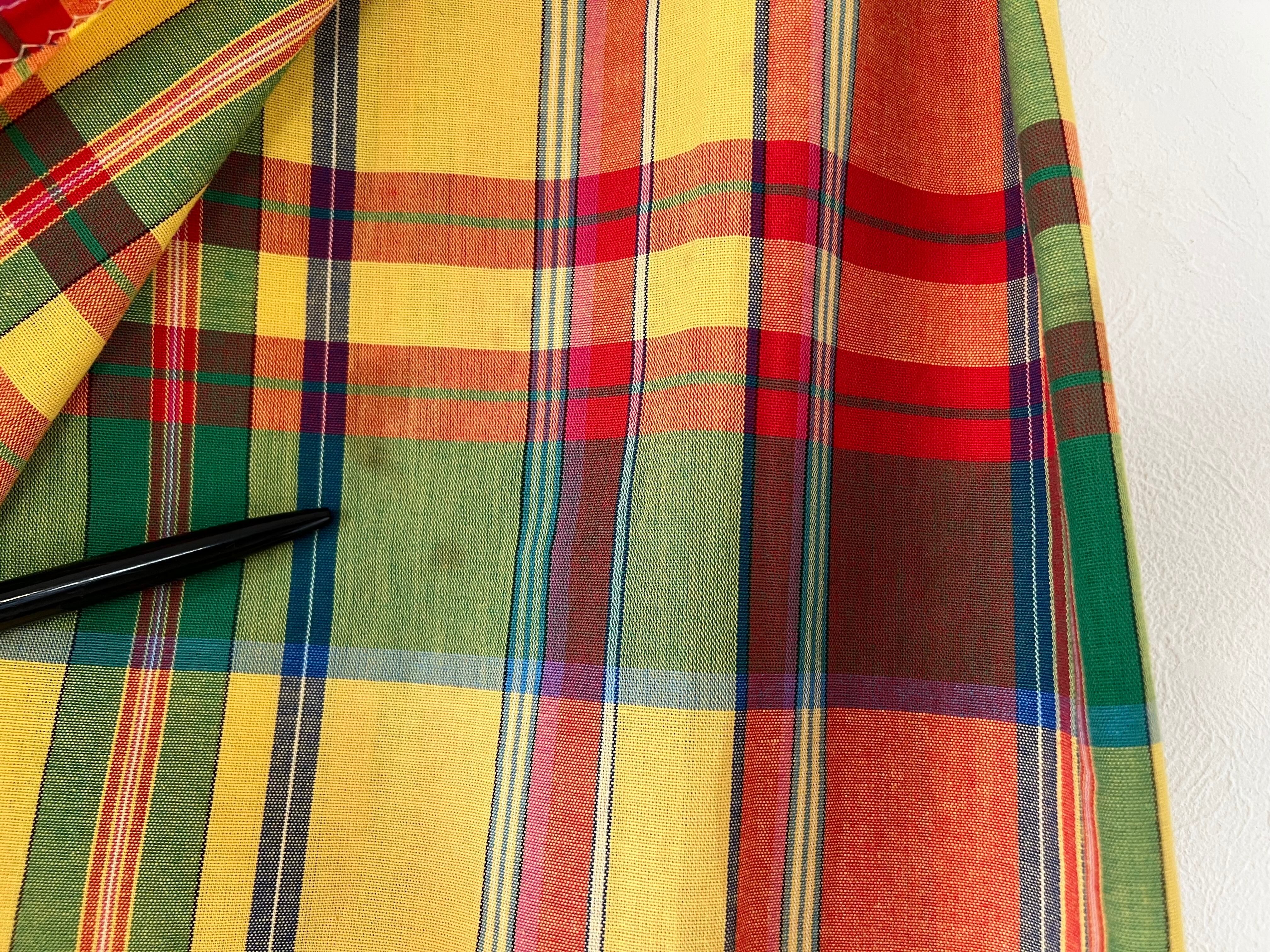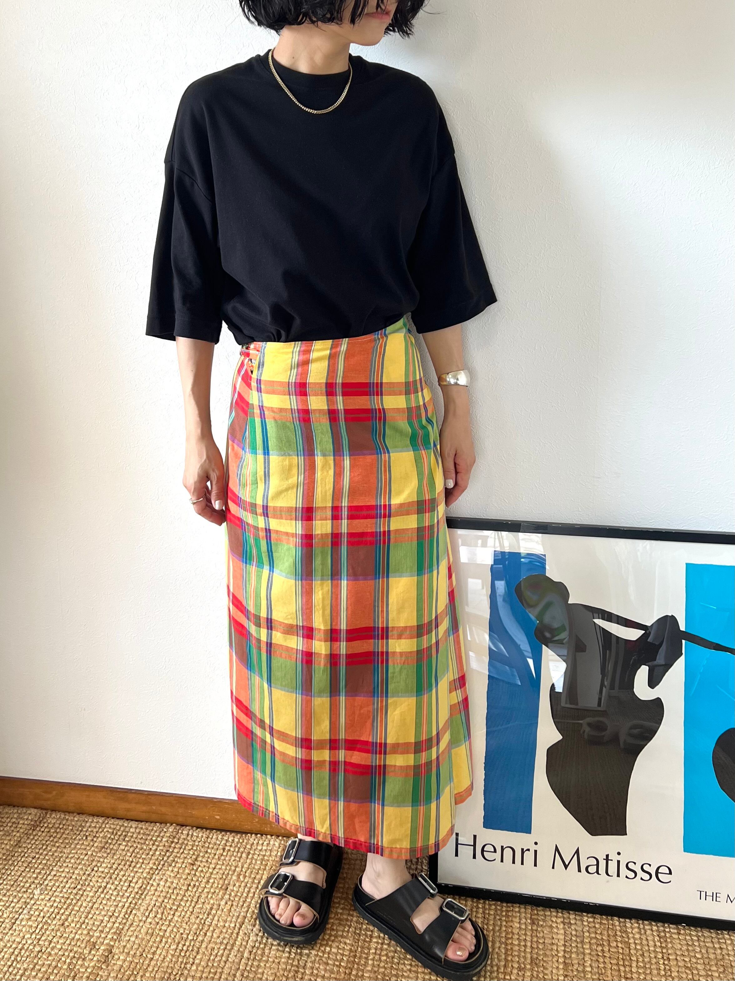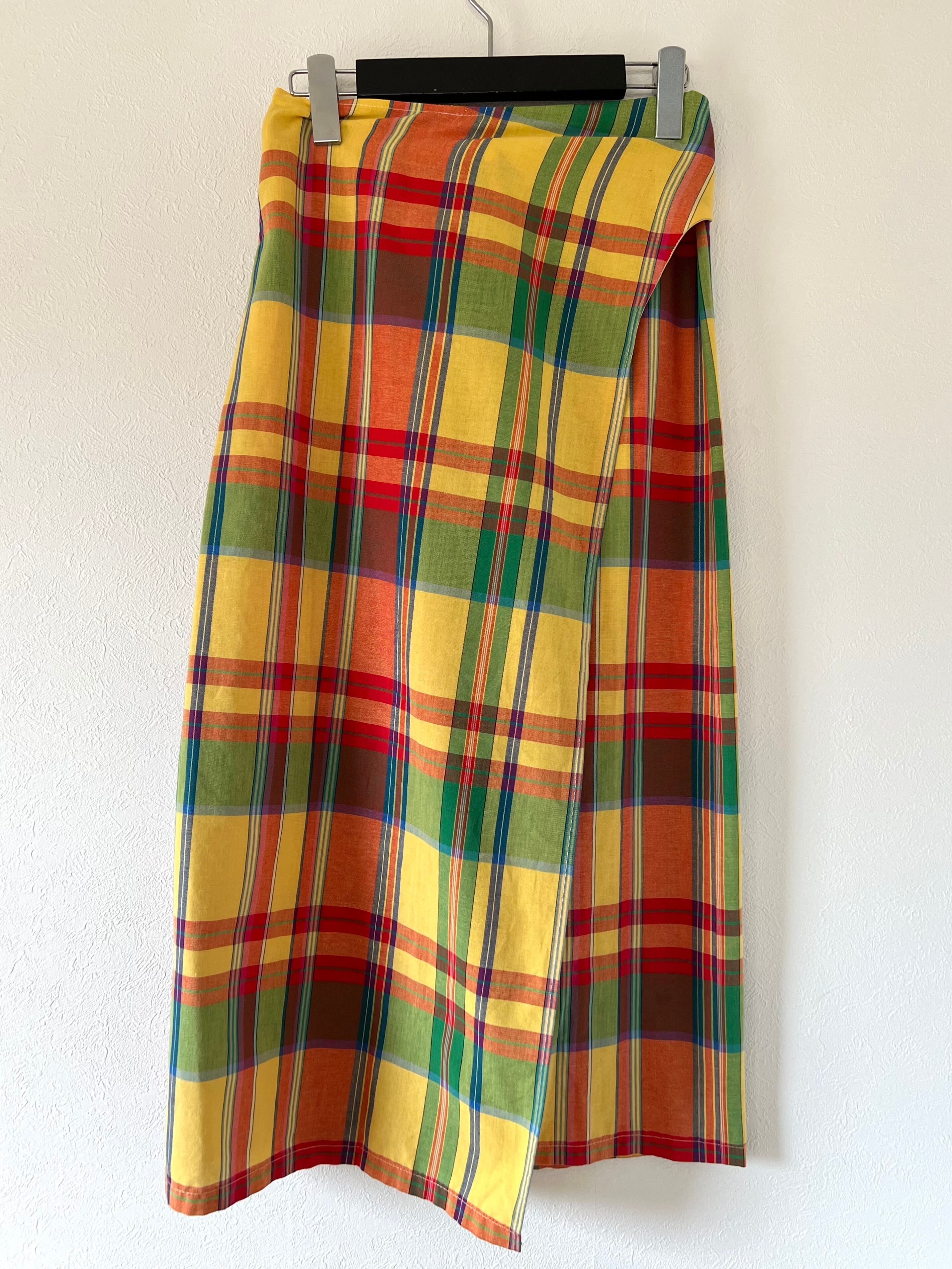 鮮やかなマドラスチェックが印象的なハンドメイドのヴィンテージラップスカート。
