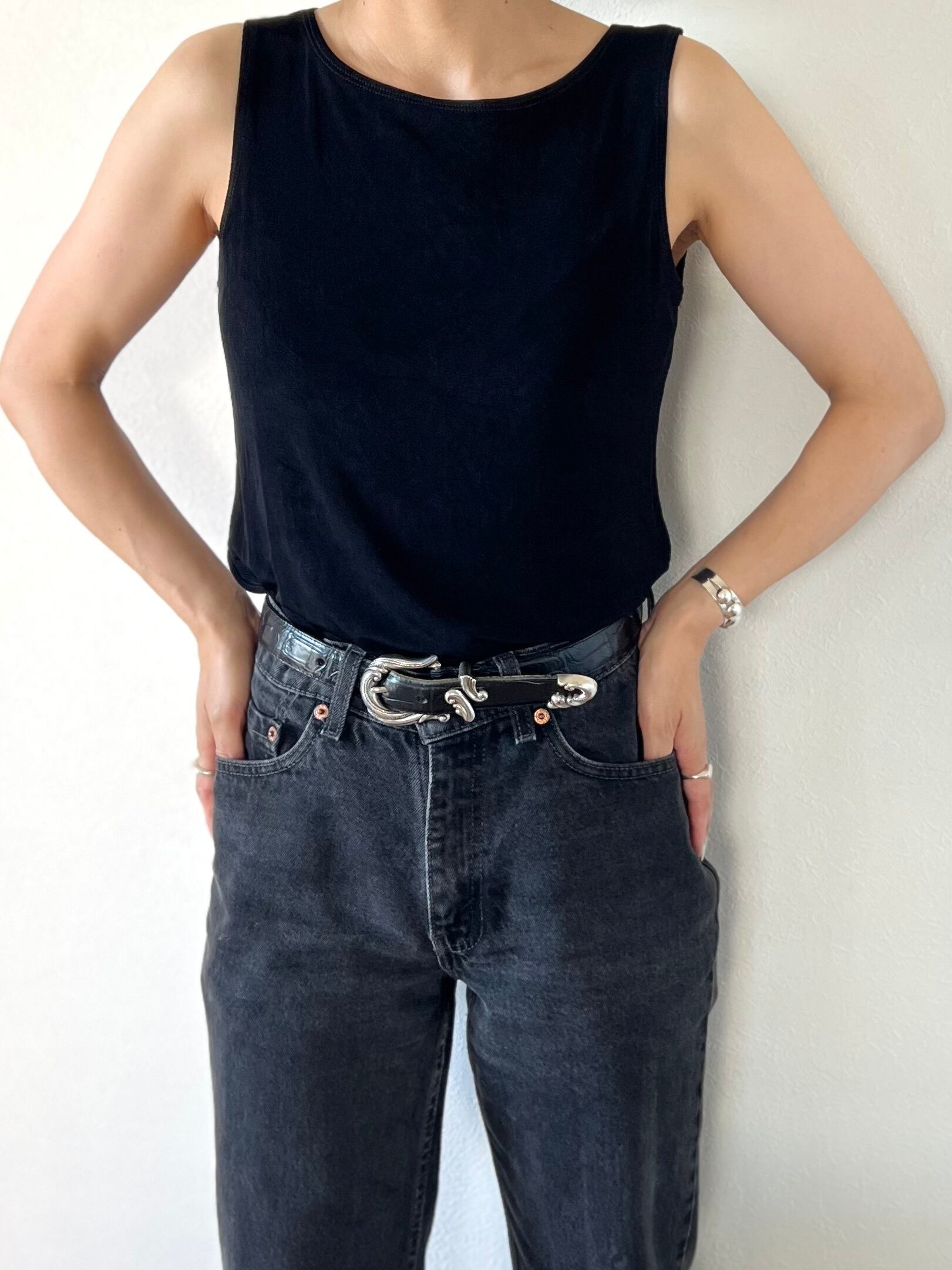 落ち感と光沢のあるジャージーなテキスタイルの風合いが心地良い90年代のタンクトップ。