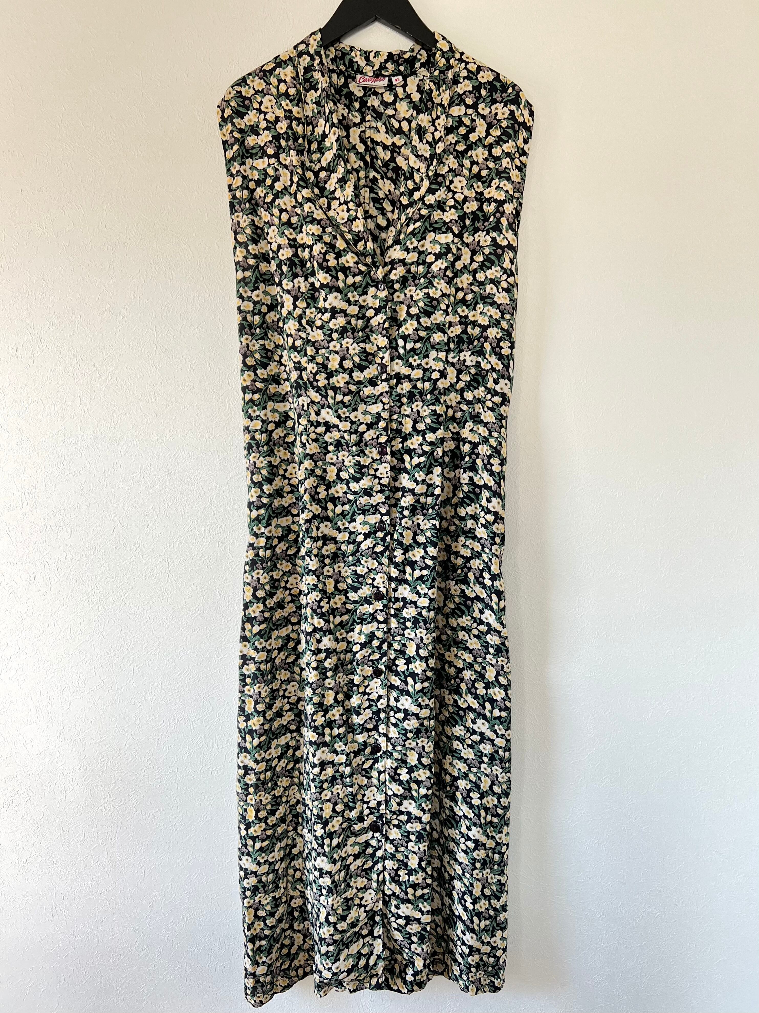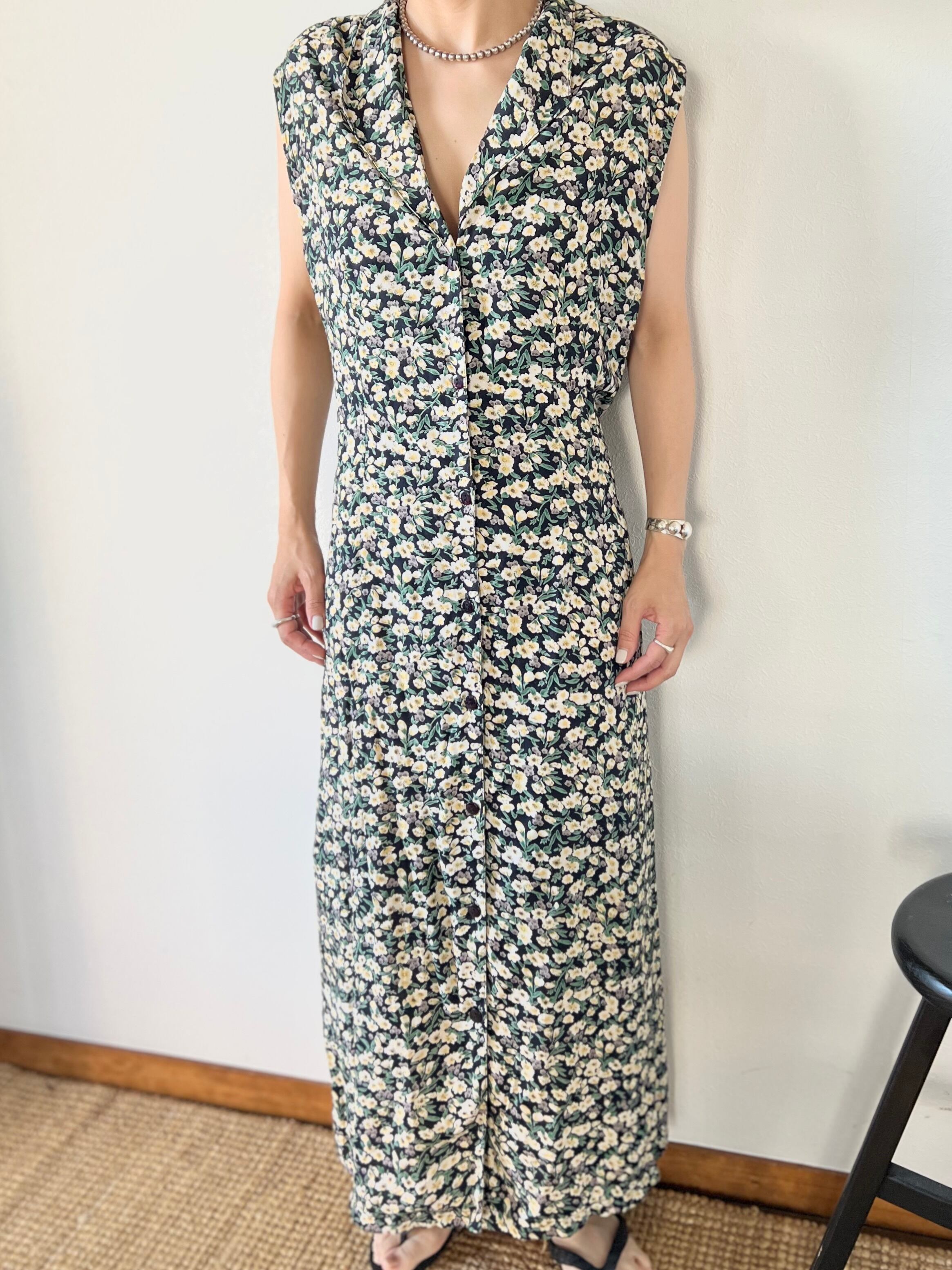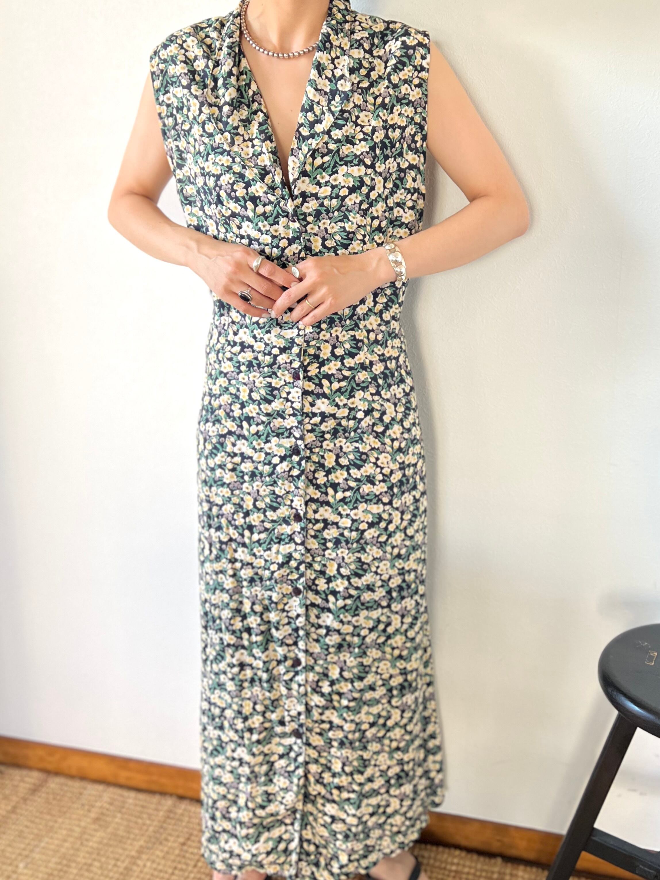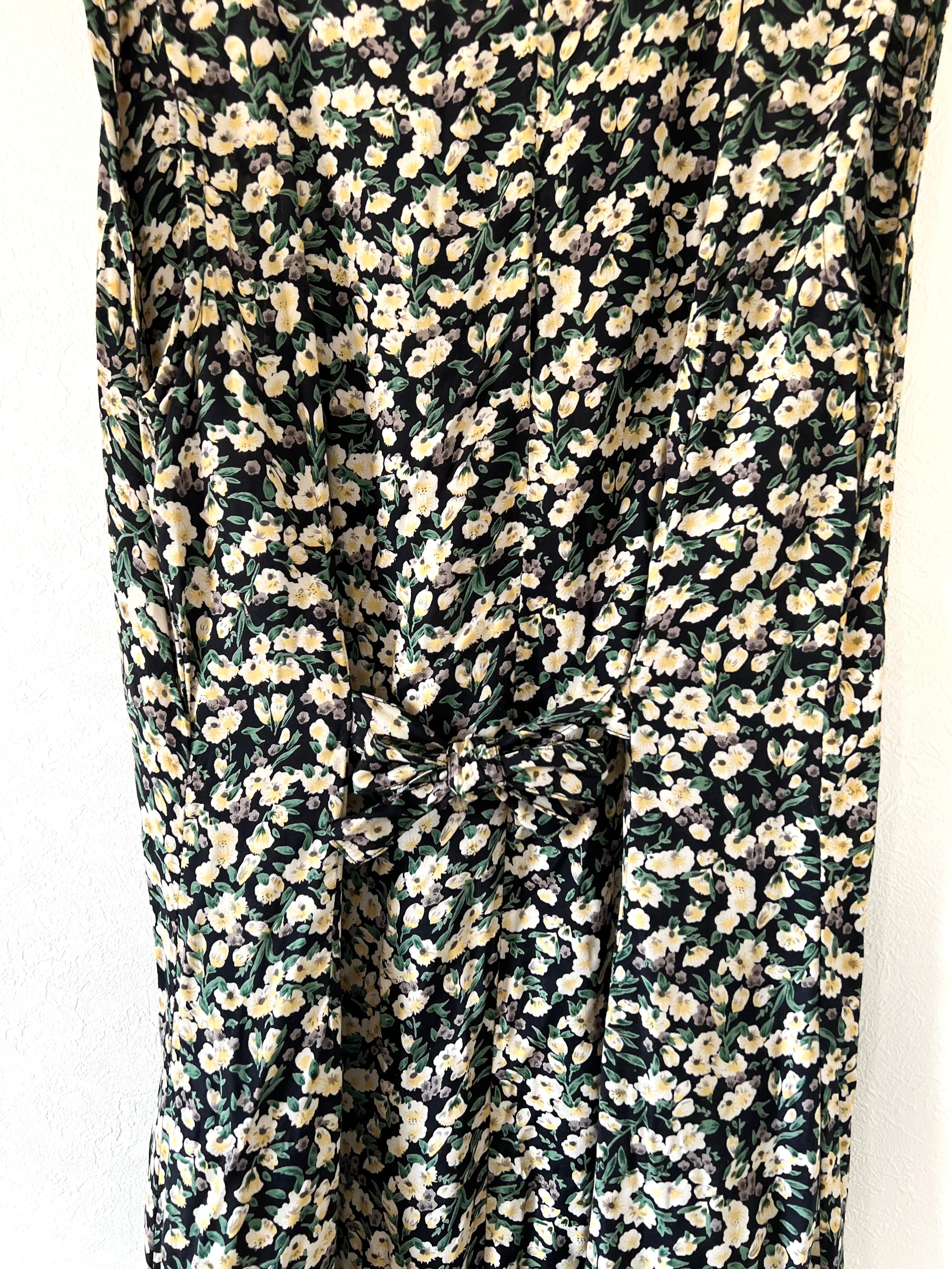 ブラックベースでシックな小花柄が可愛いユーロヴィンテージのシャツワンピース。
