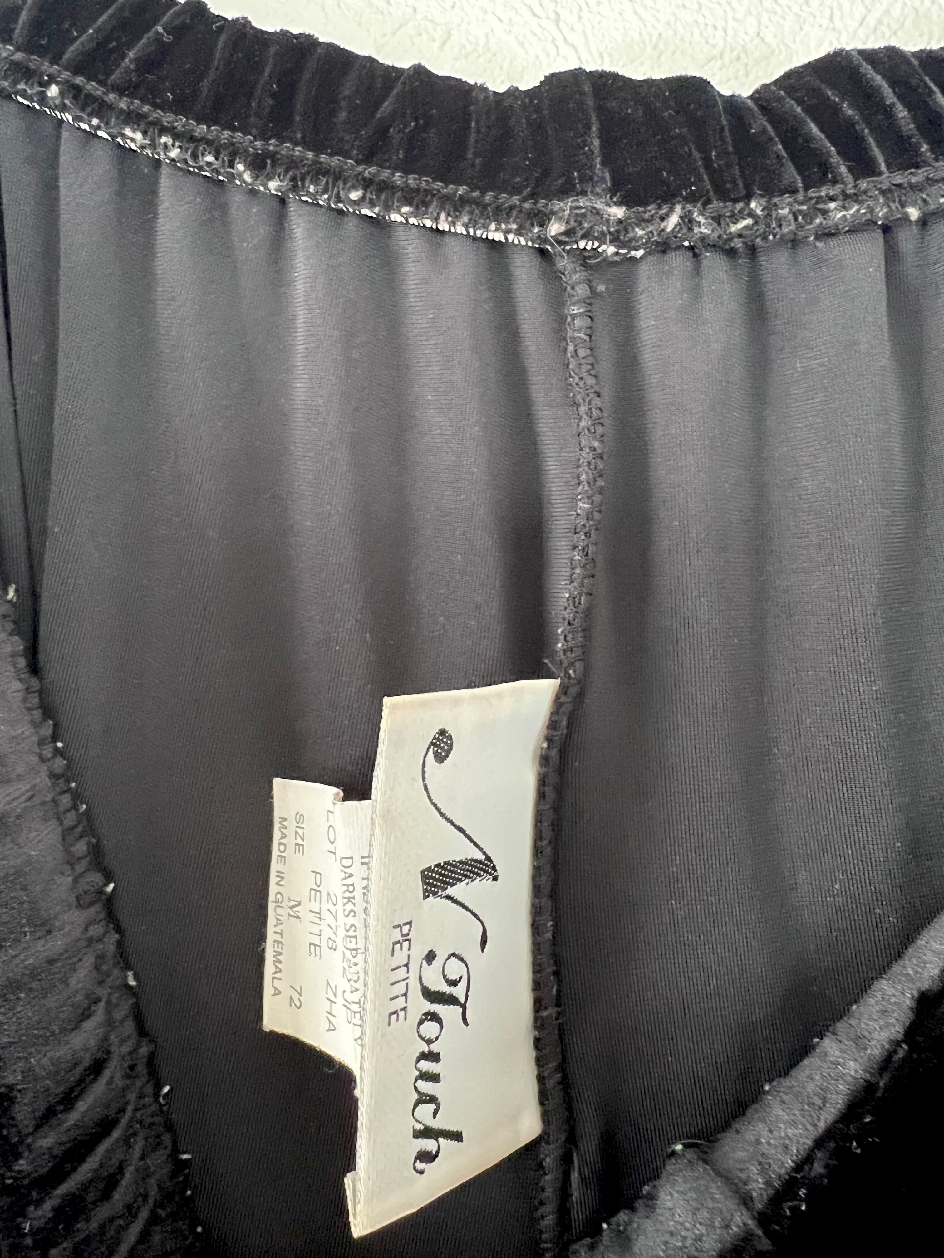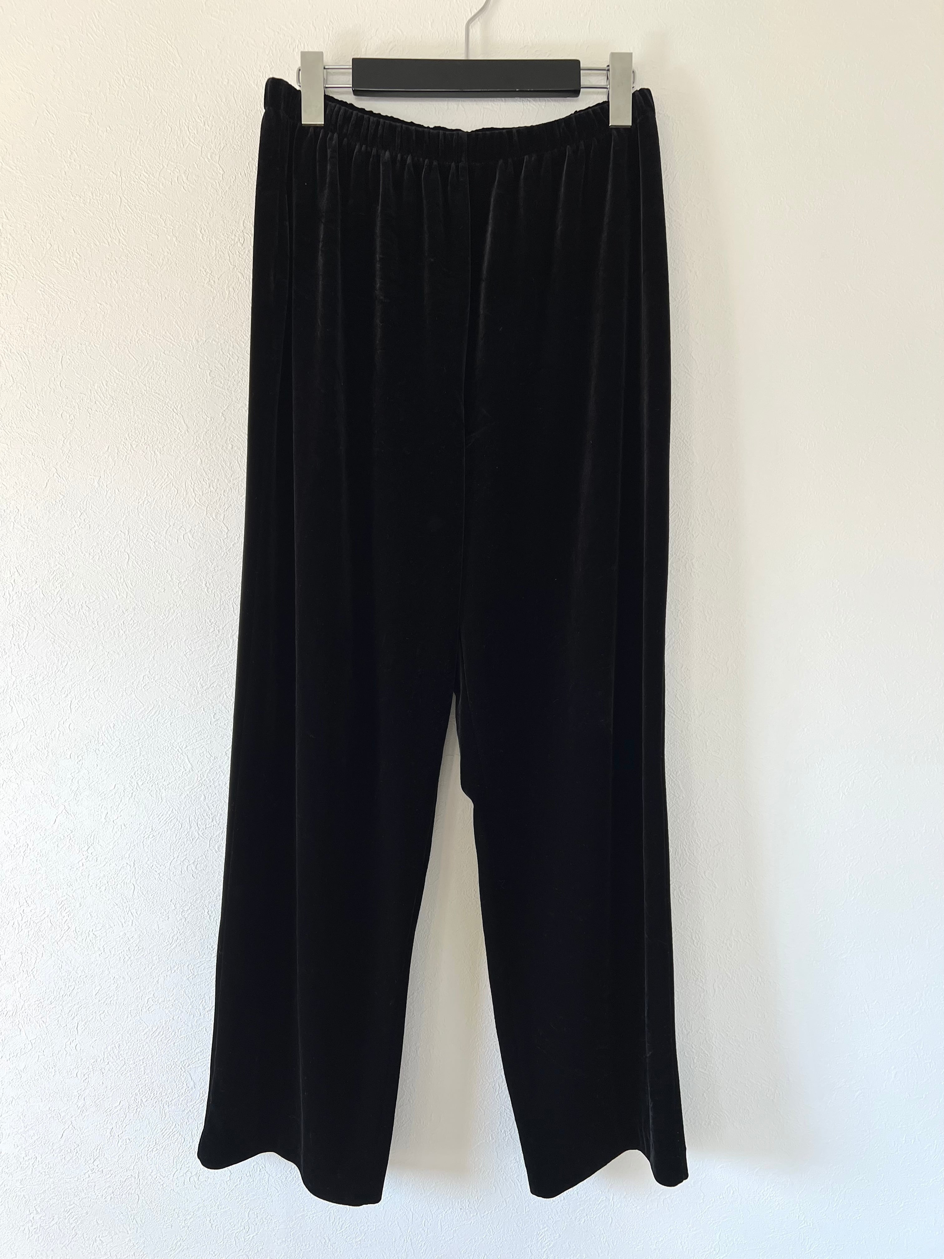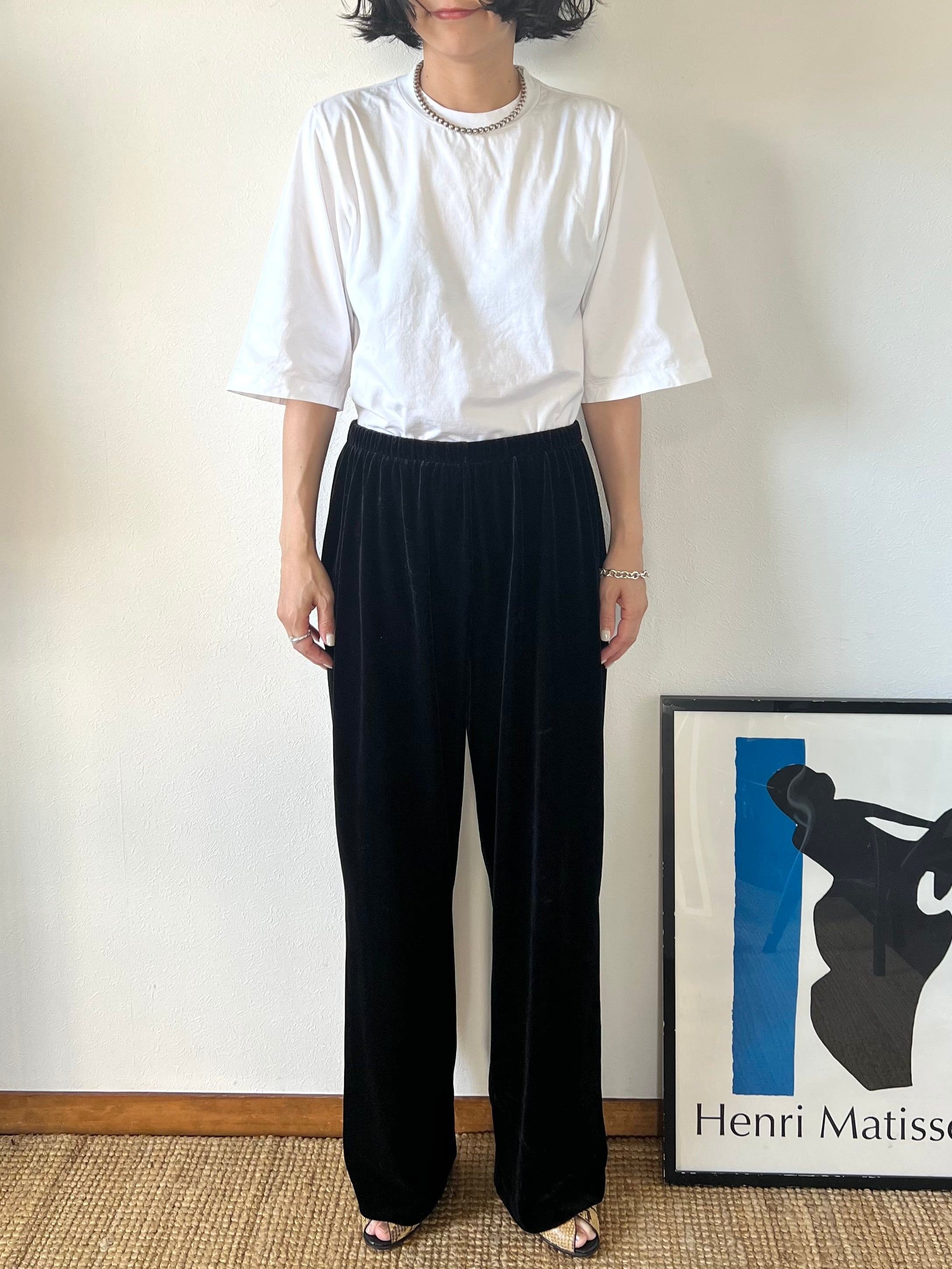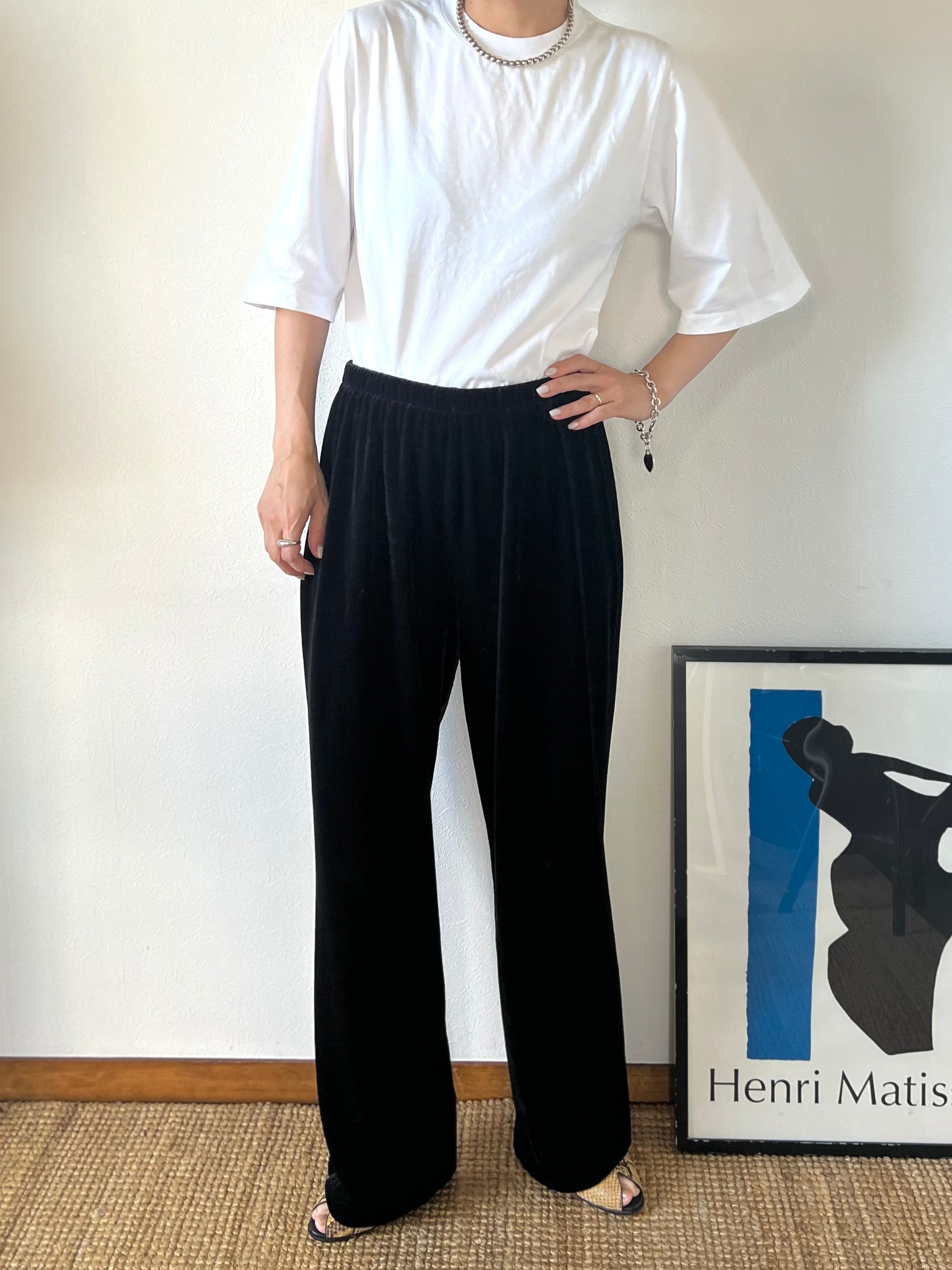ゆるっと穿けるワイド目なウエストゴムのベロアイージーパンツ。