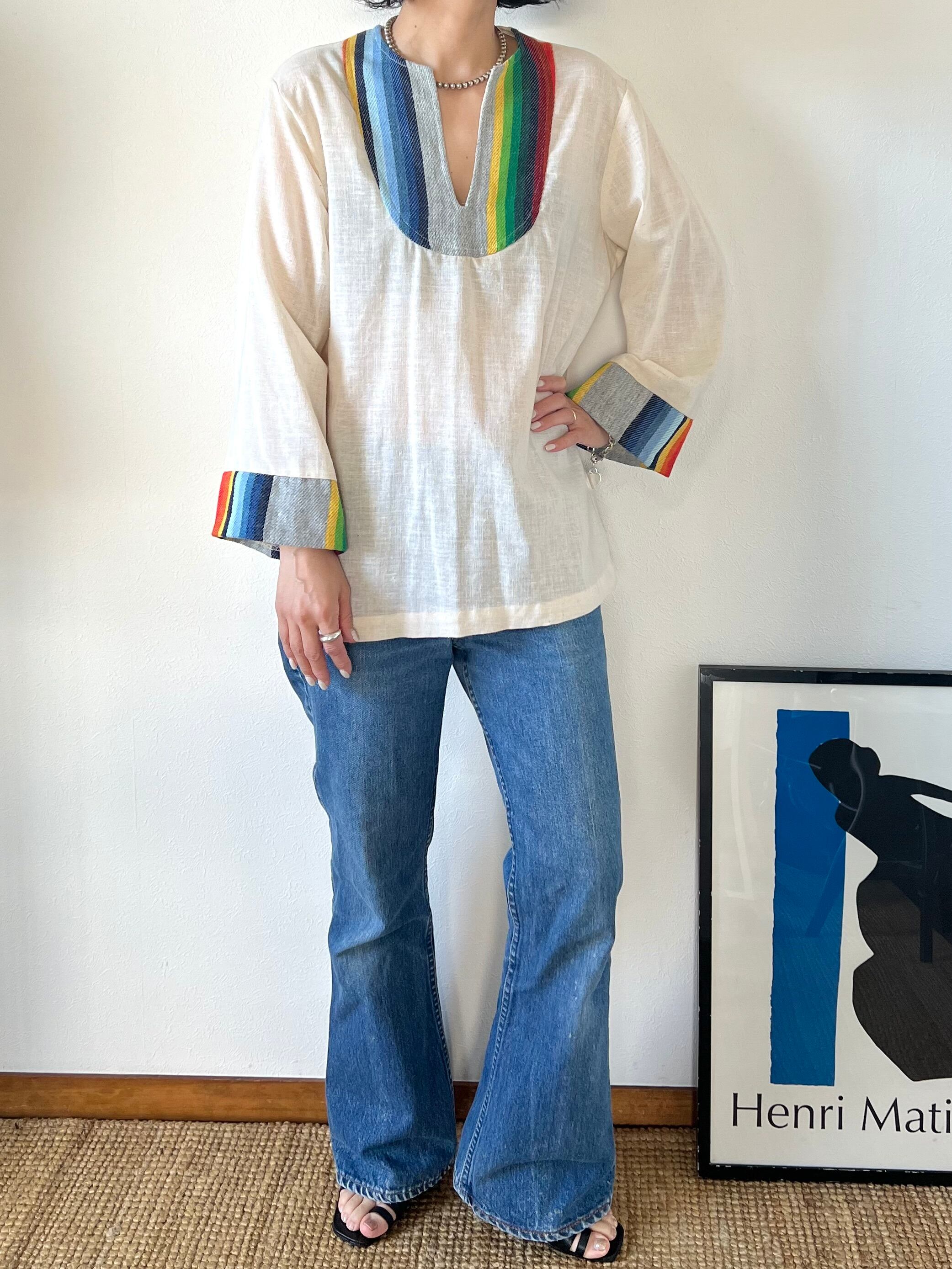 70年代らしいメイドインCaliforniaのスキッパーデザインのコットンチュニック。