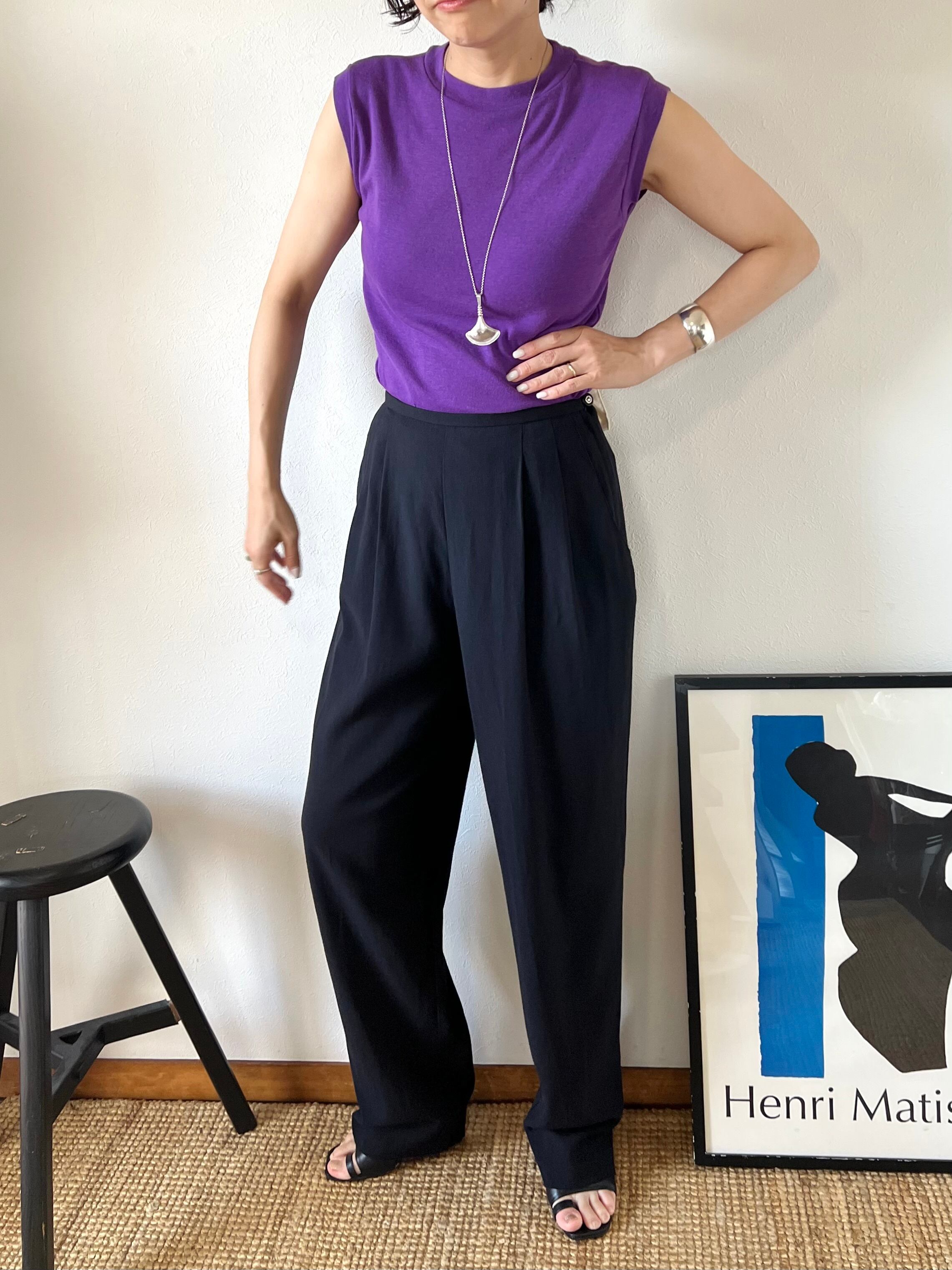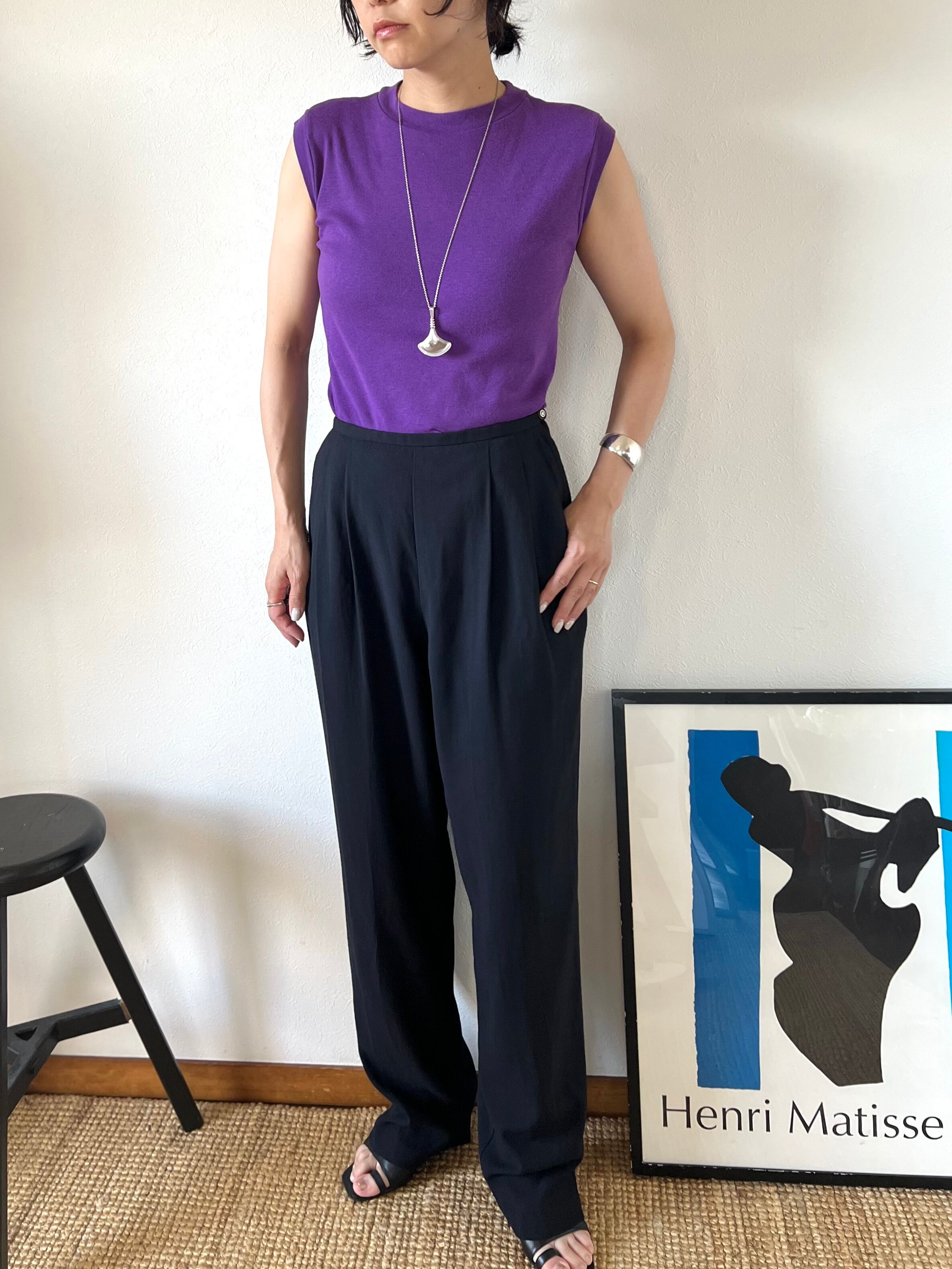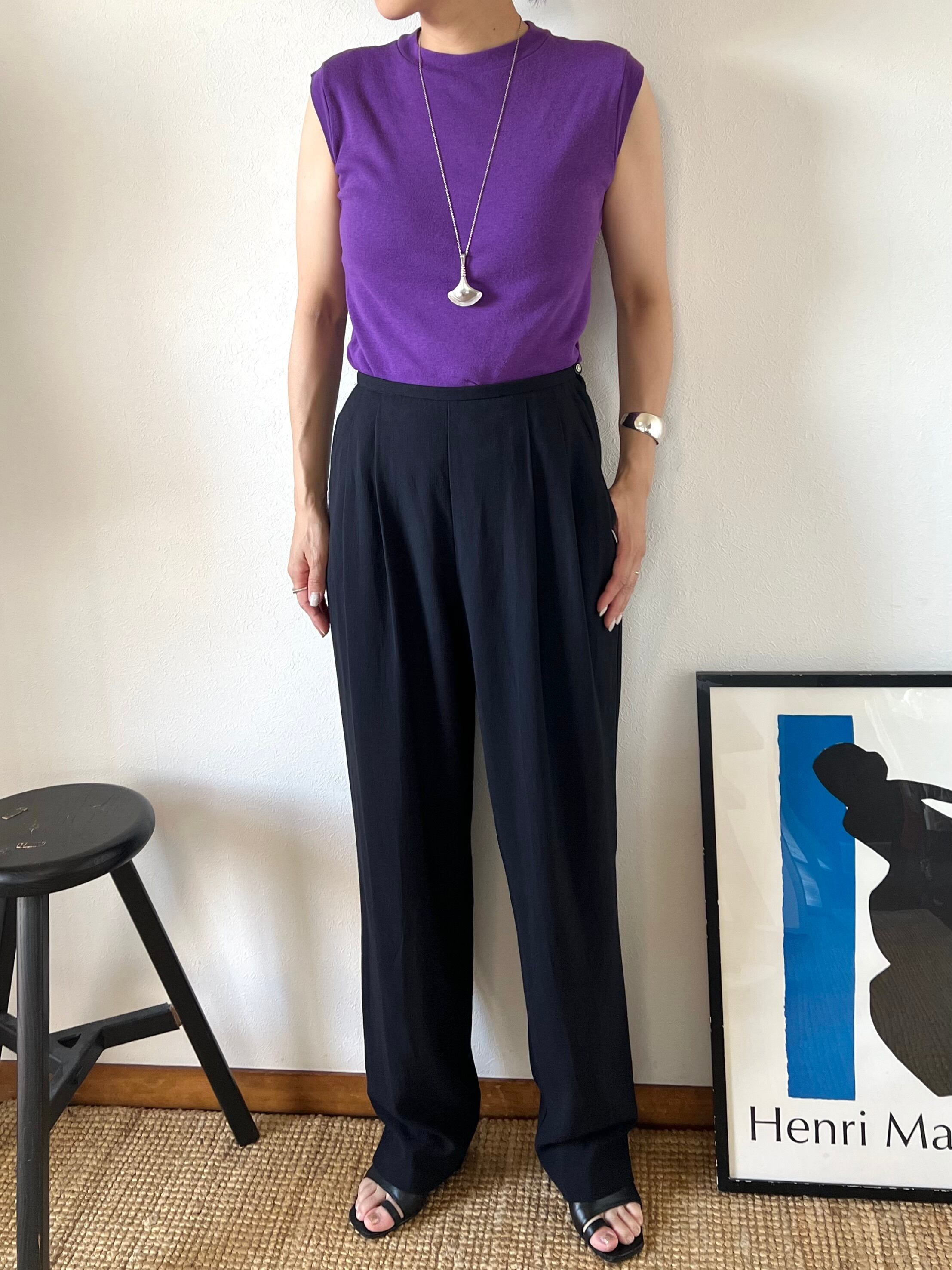 夏も過ぎてくると色で次の季節のムードを取り入れたくなるパープルで、長く続く暑い季節の後半に特に活躍してもらえるTシャツかと思います。