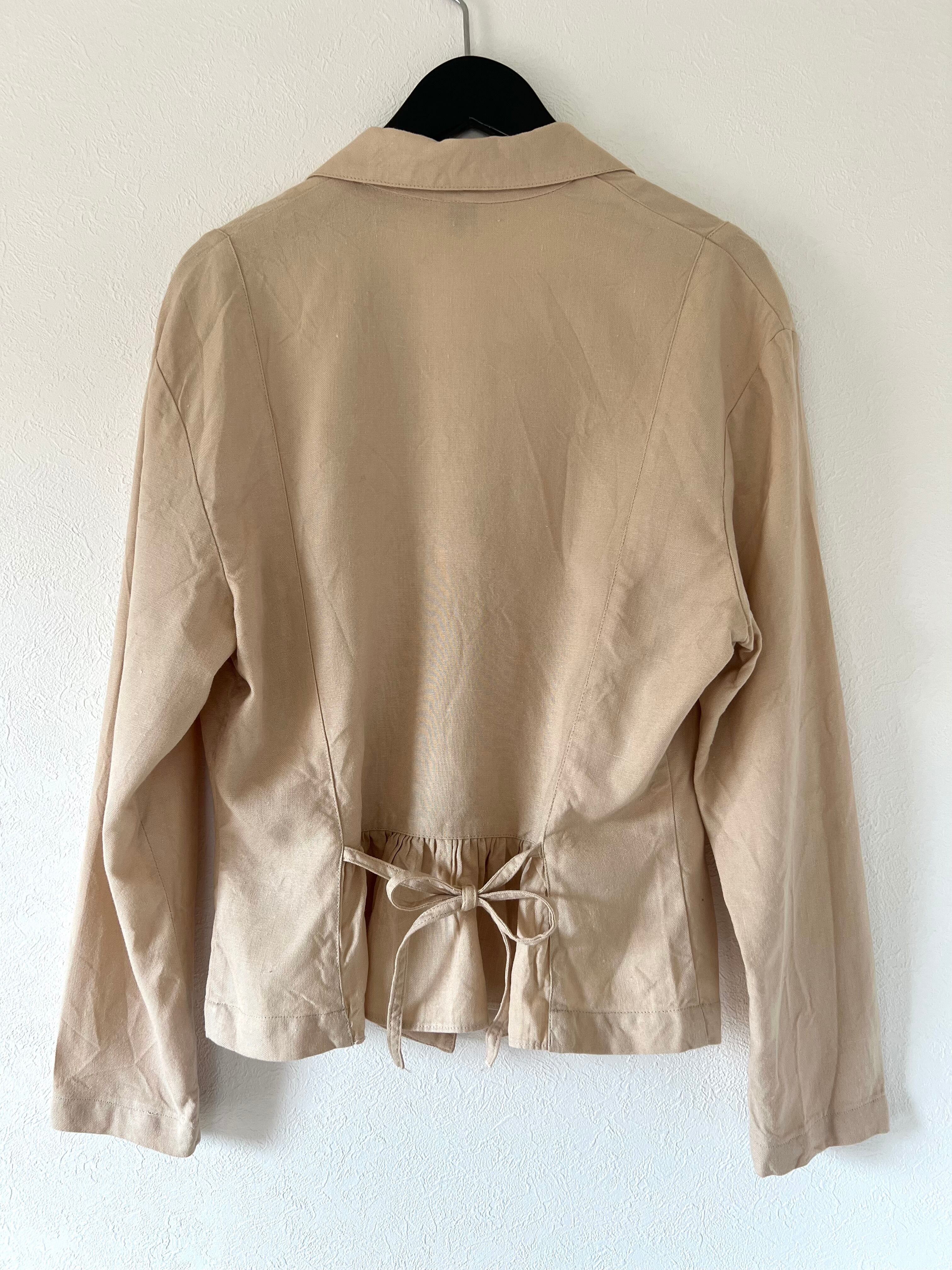80's Euro linen back belted jacket