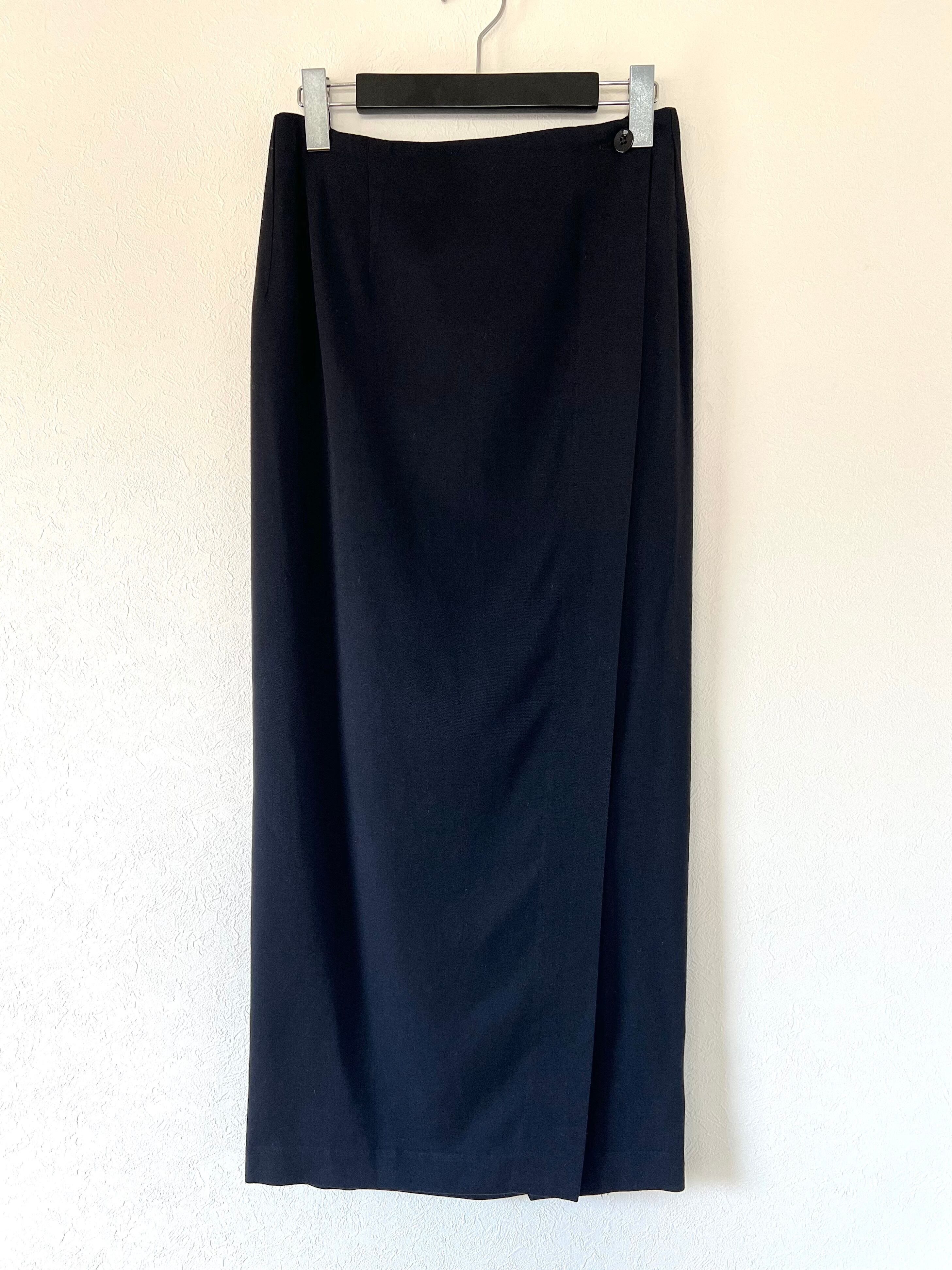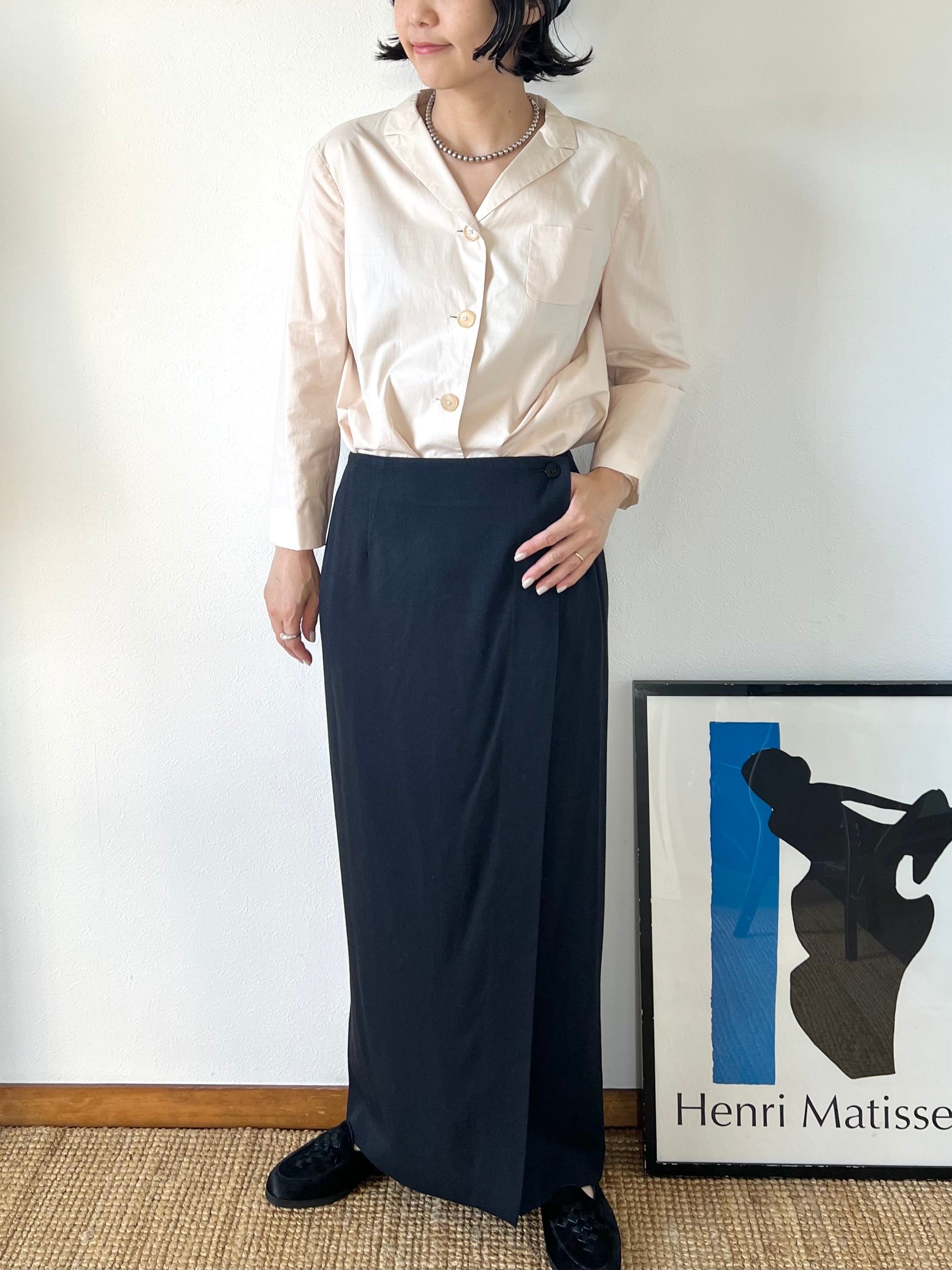 シンプルで洗練された印象のUSA製ラップロングスカート。