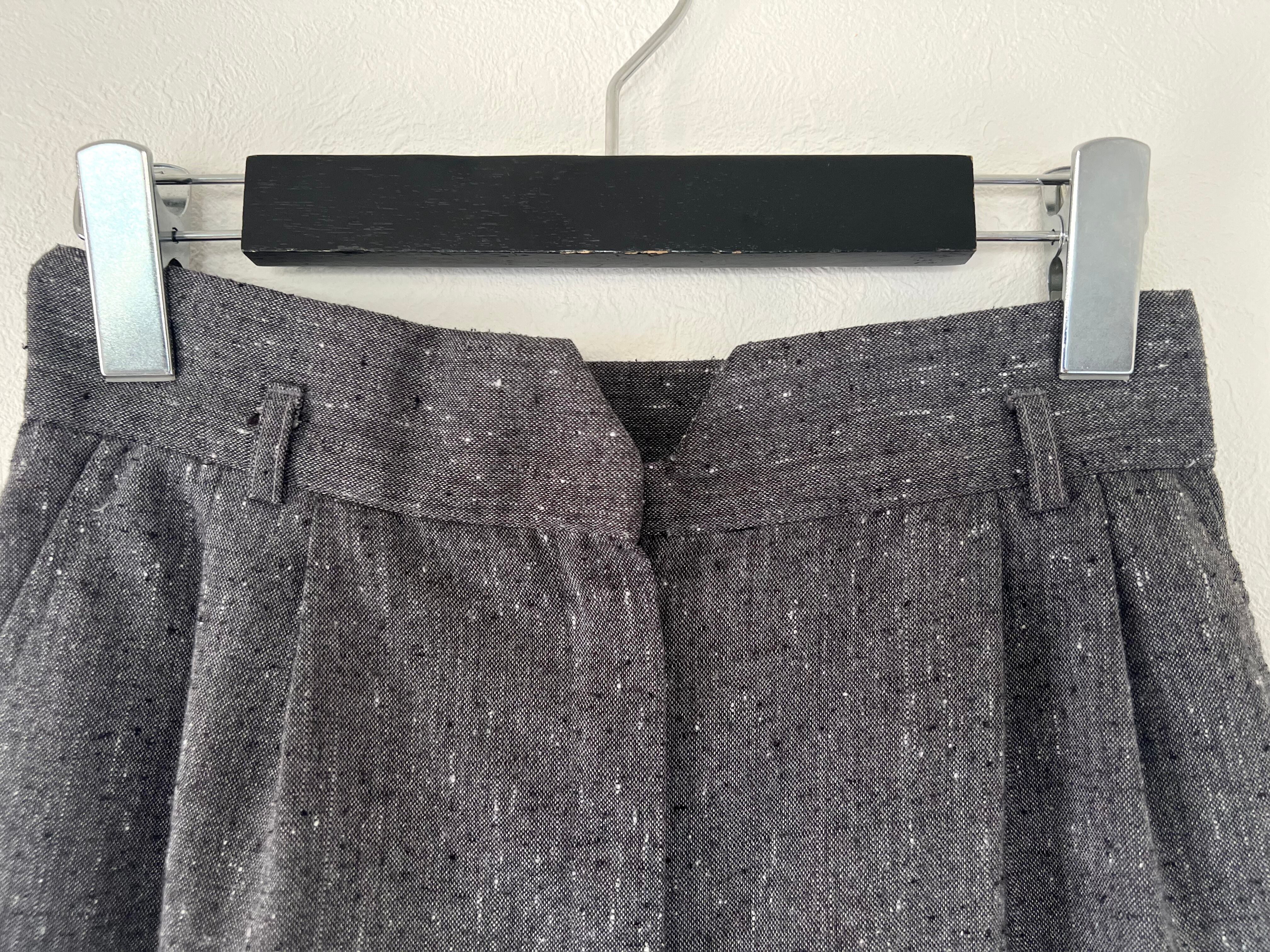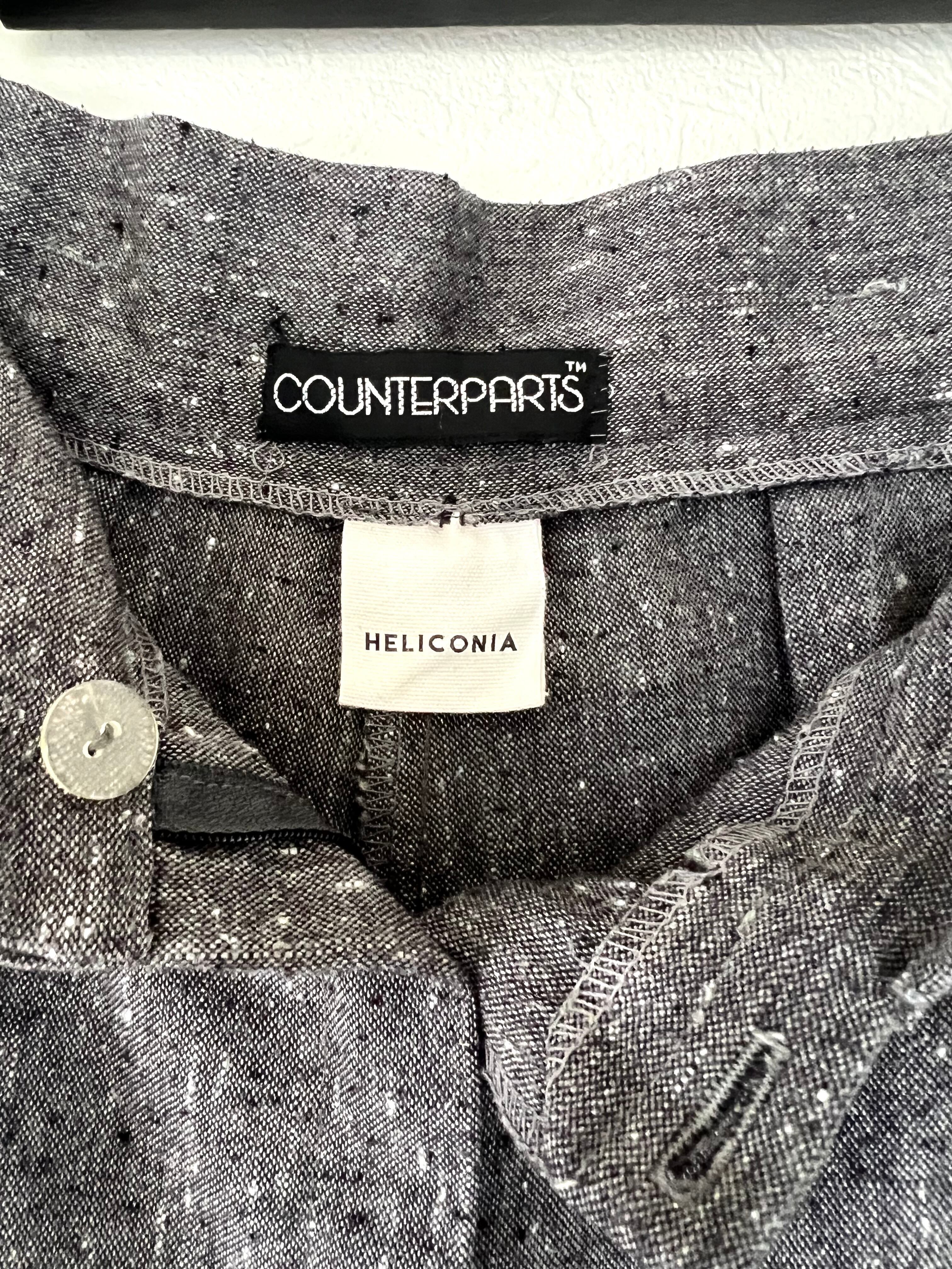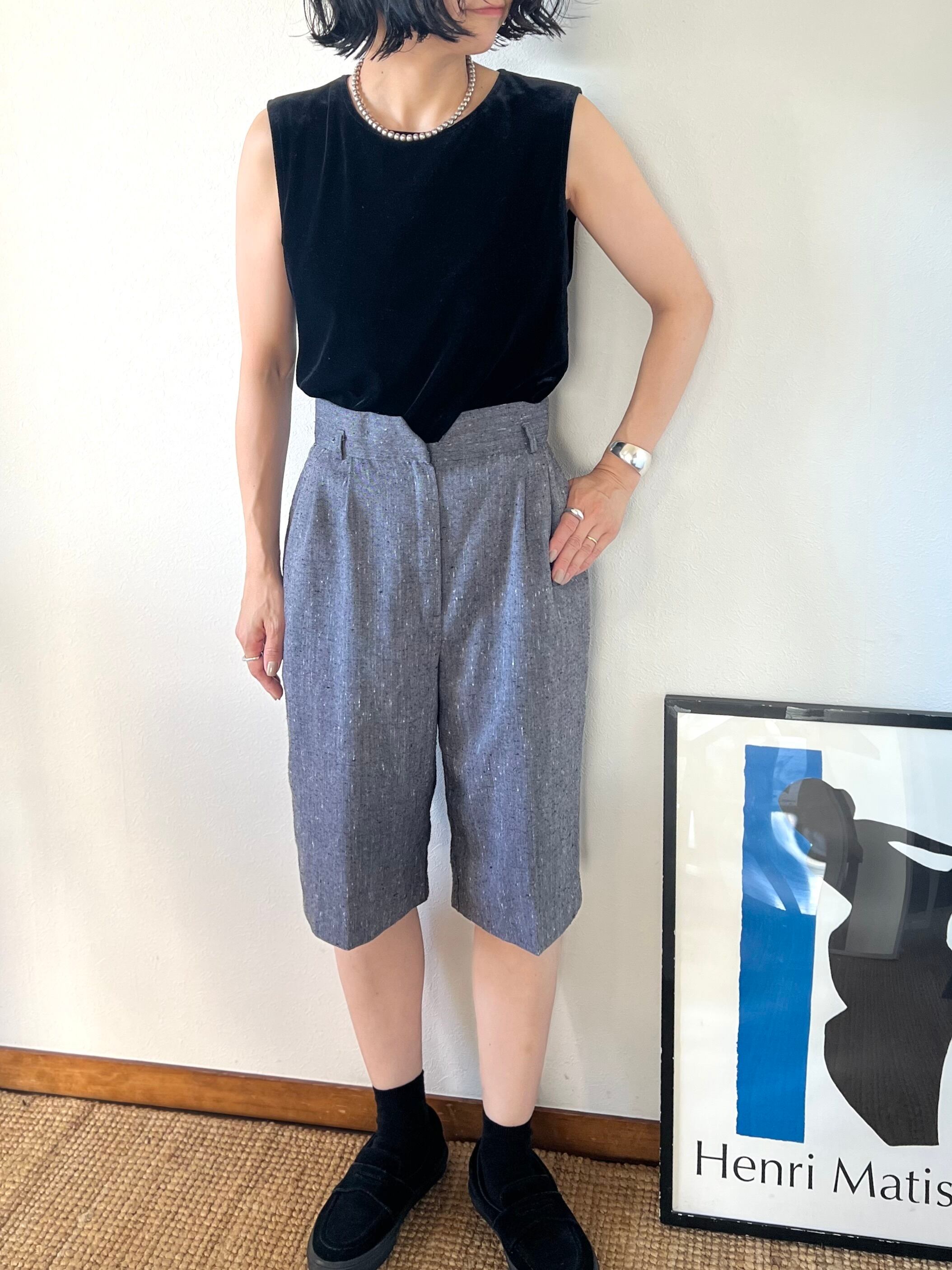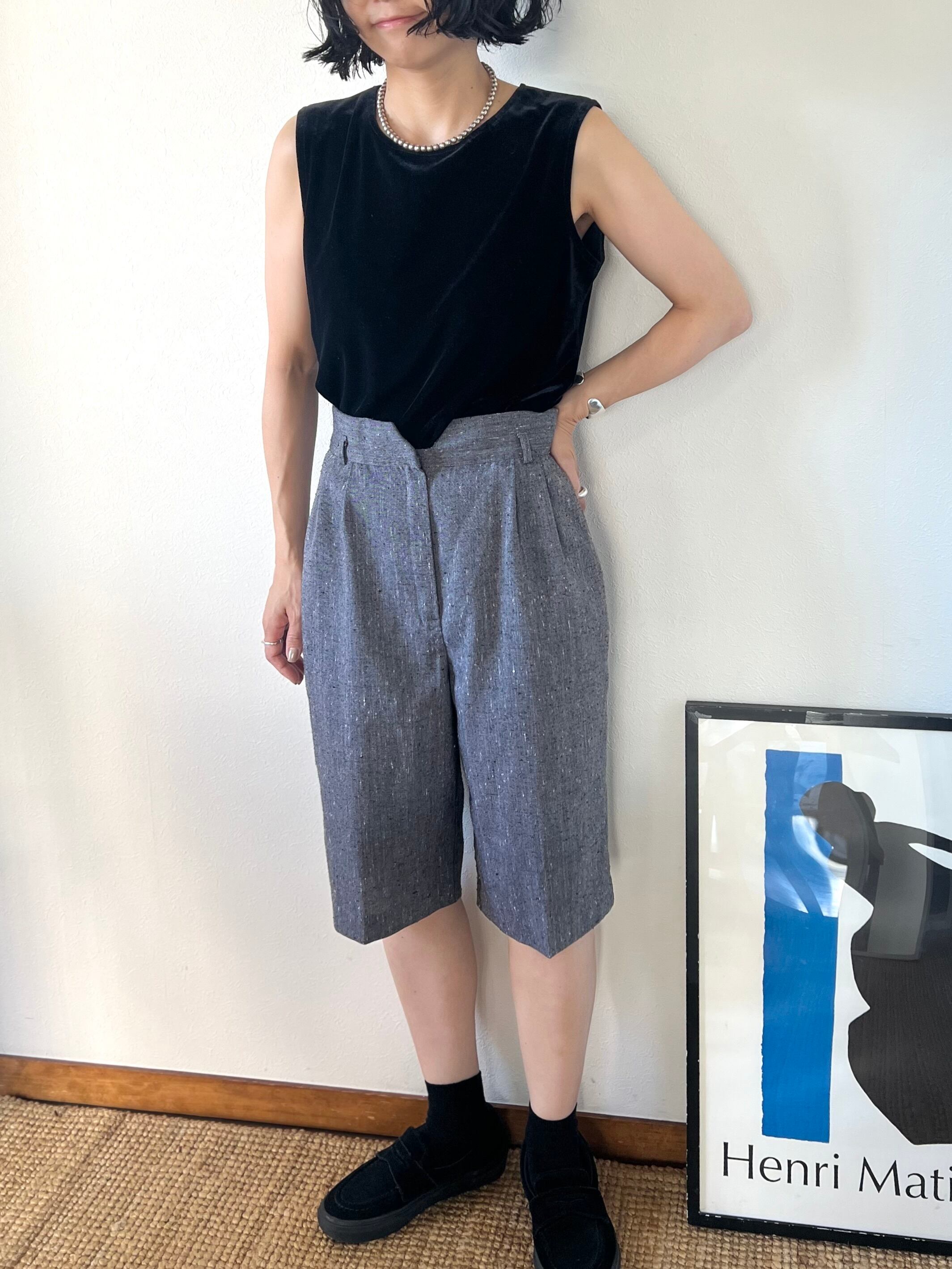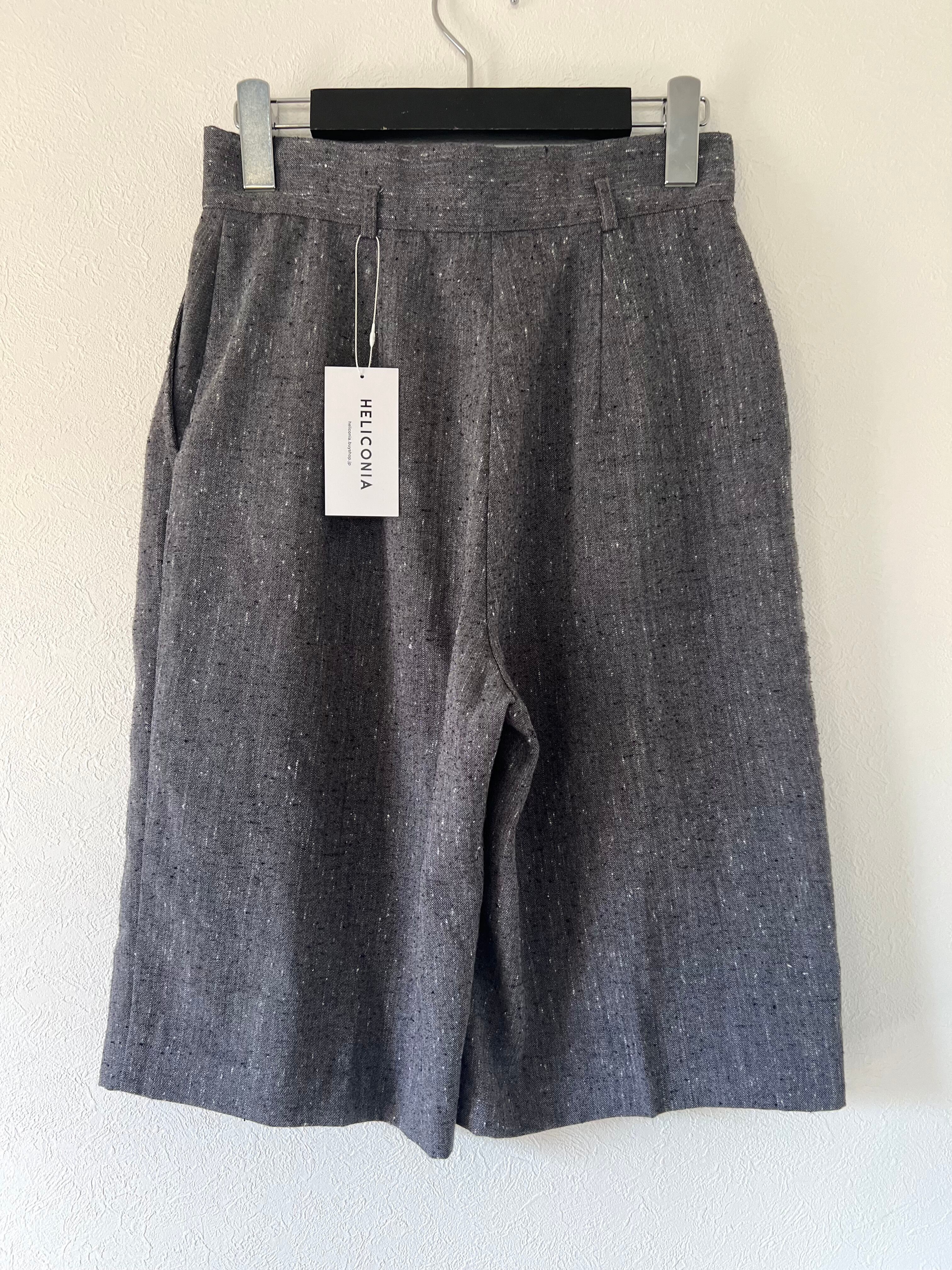ヴィンテージのスラックスをアップサイクルしたHELICONIAオリジナルのハーフパンツ。