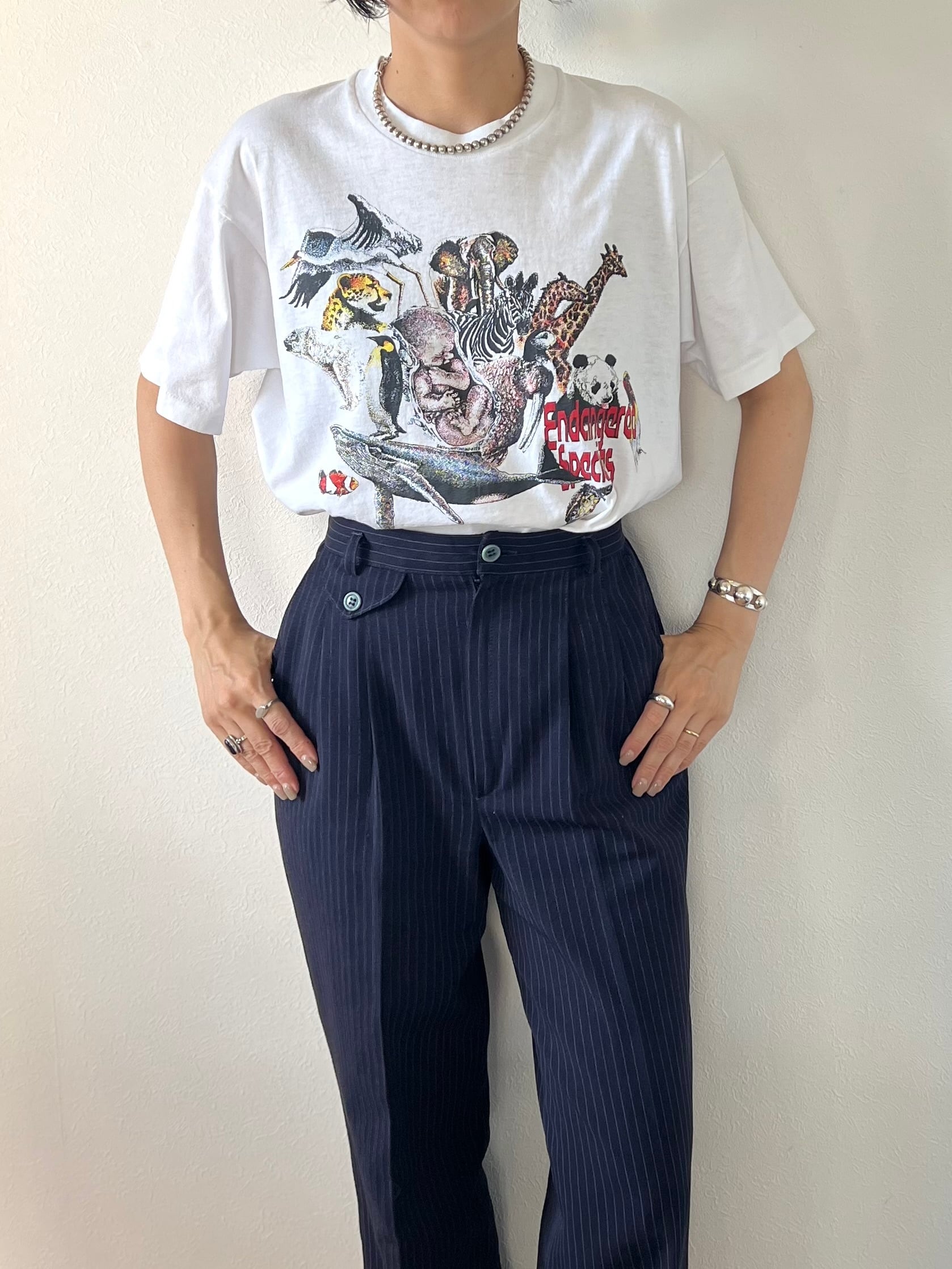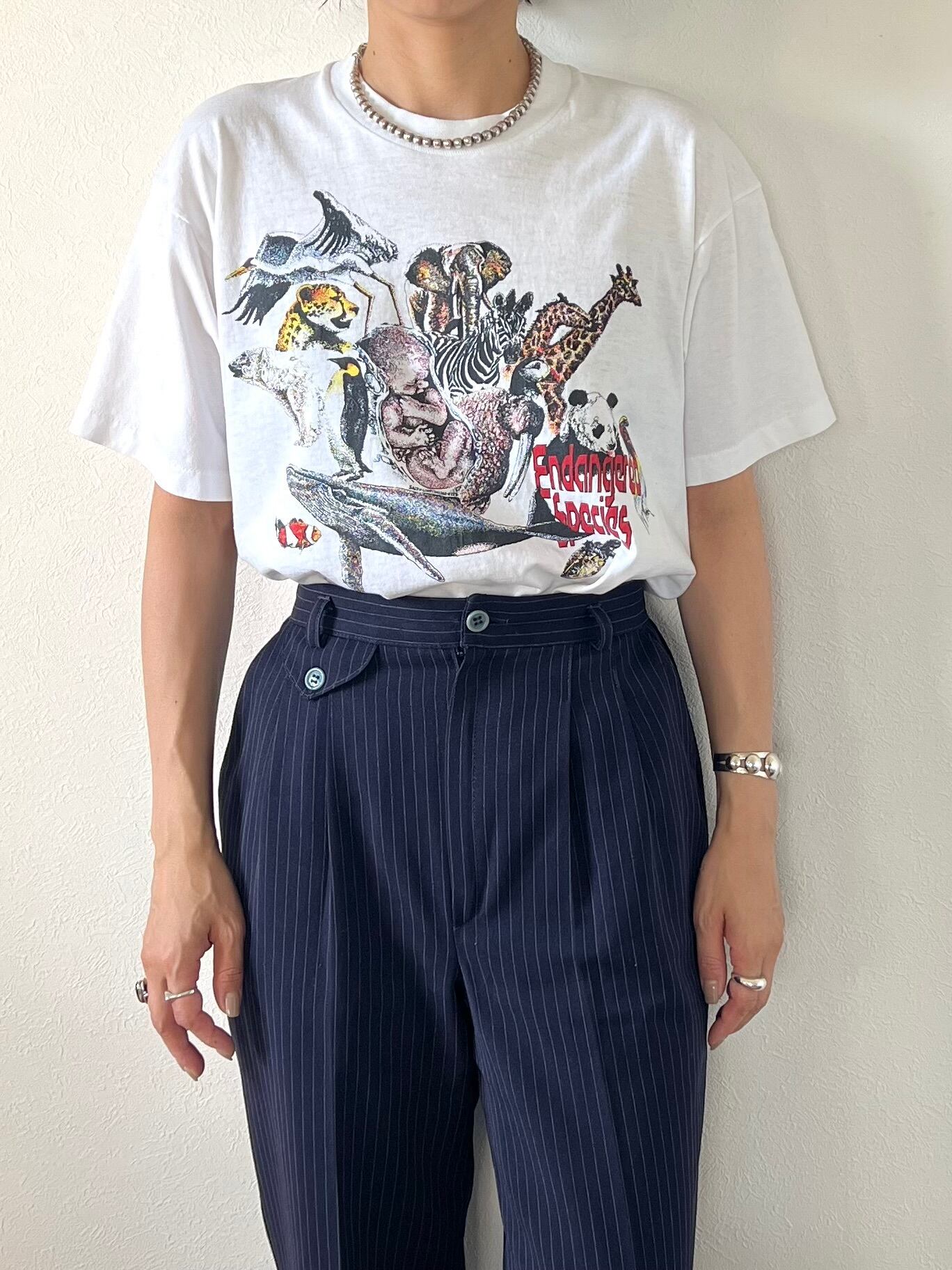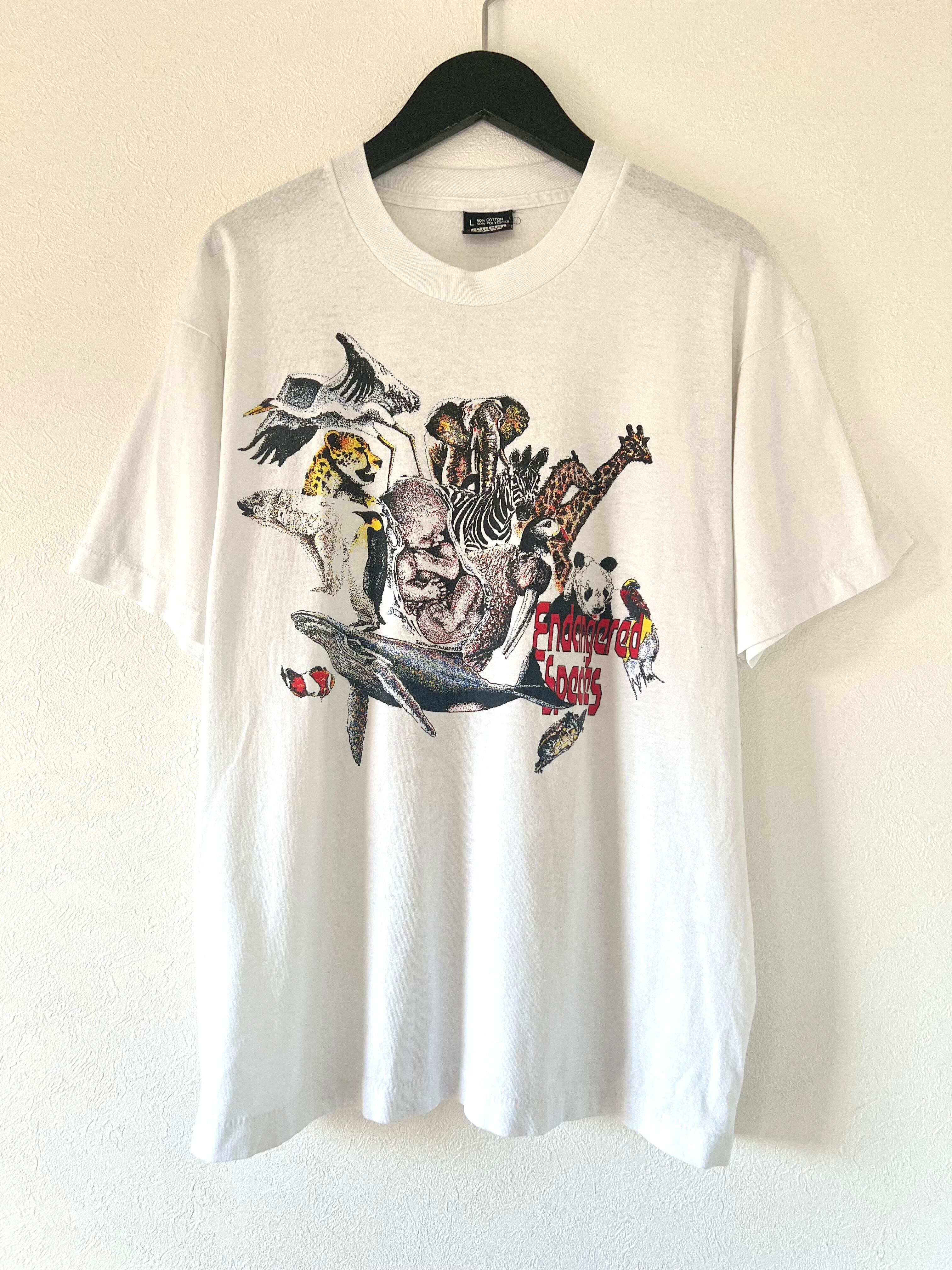 よく見ると点で色付けされた凝った動物プリントが一癖ある80年代のSCREEN STARSボディのプリントTシャツ。