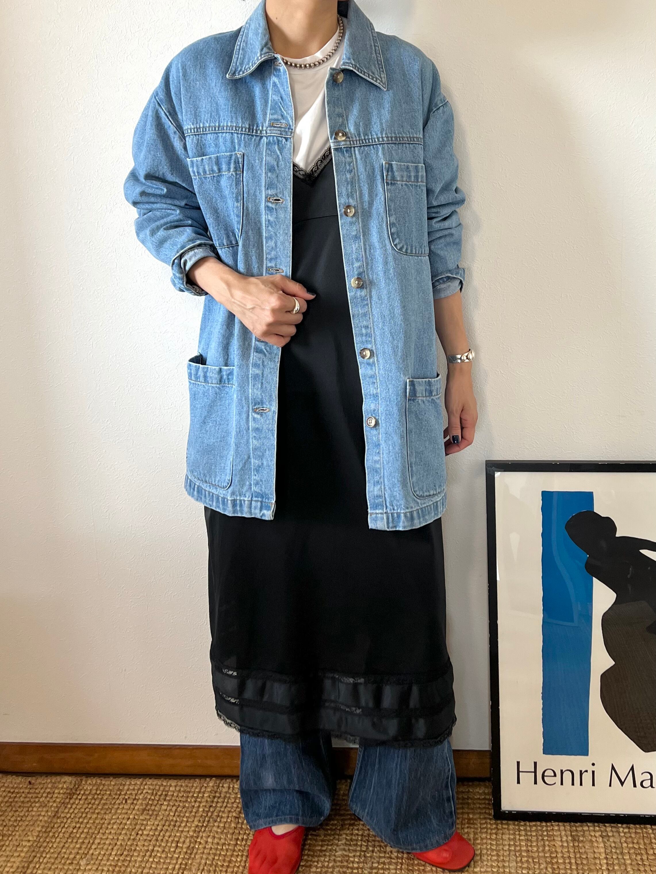軽めのデニム素材で着やすいデニムのカーバーオールジャケット。
