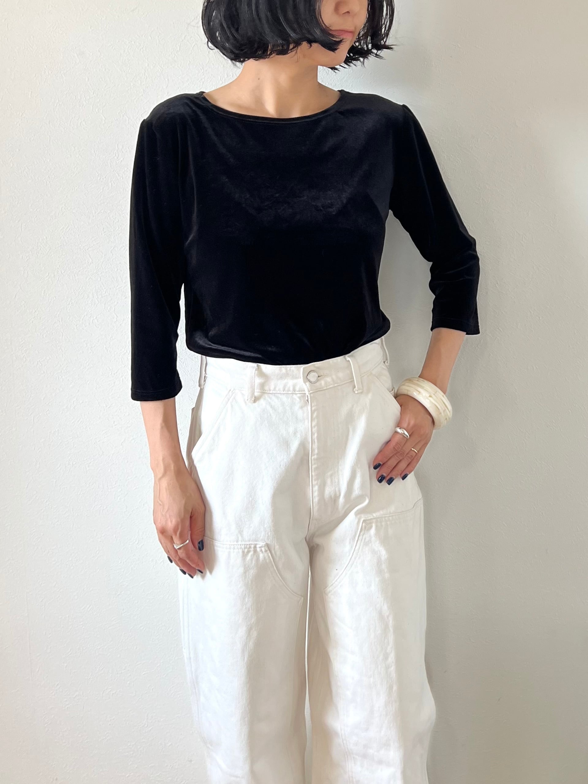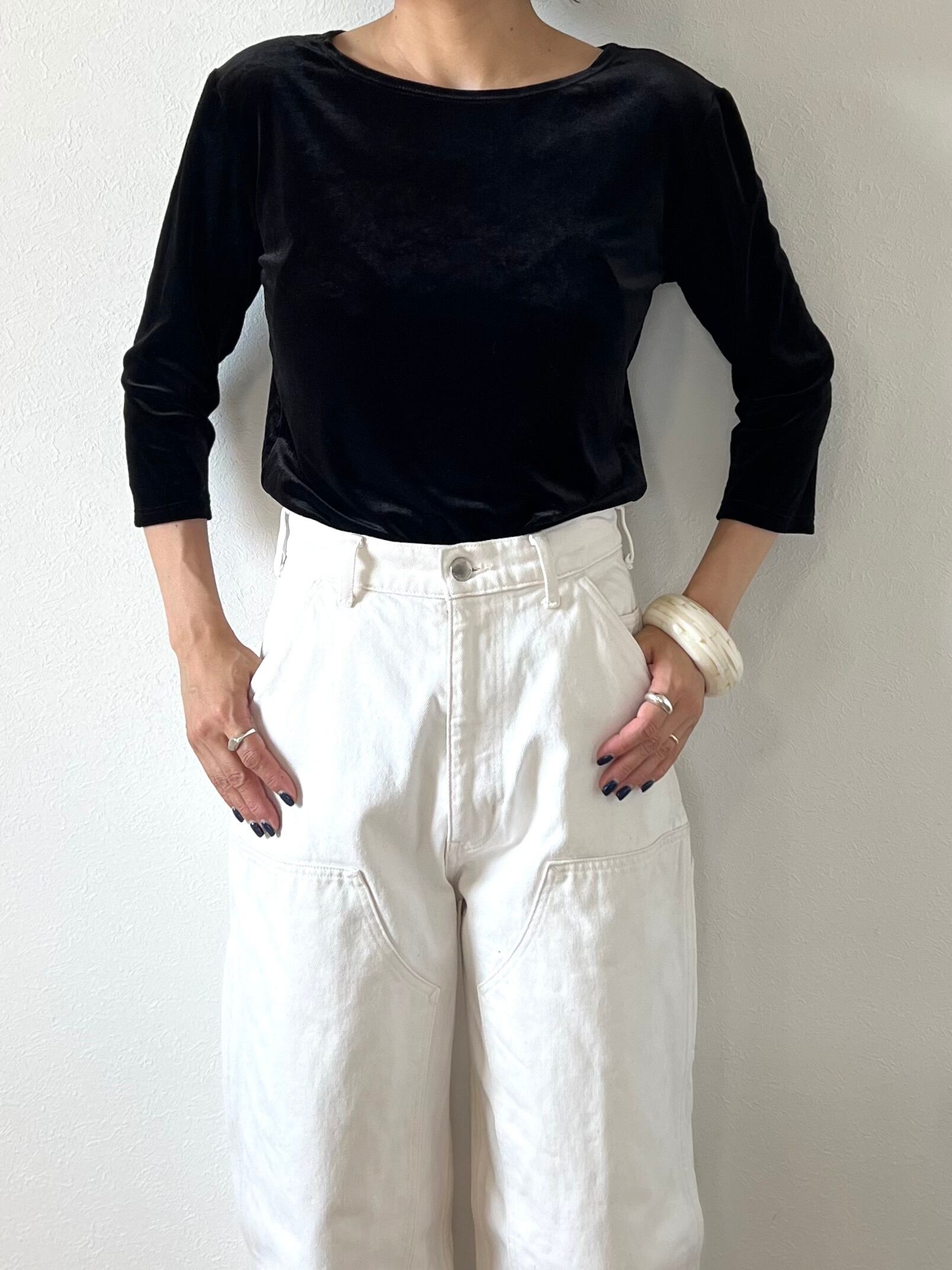 鎖骨のラインが綺麗な伸縮性のあるベロアトップス。