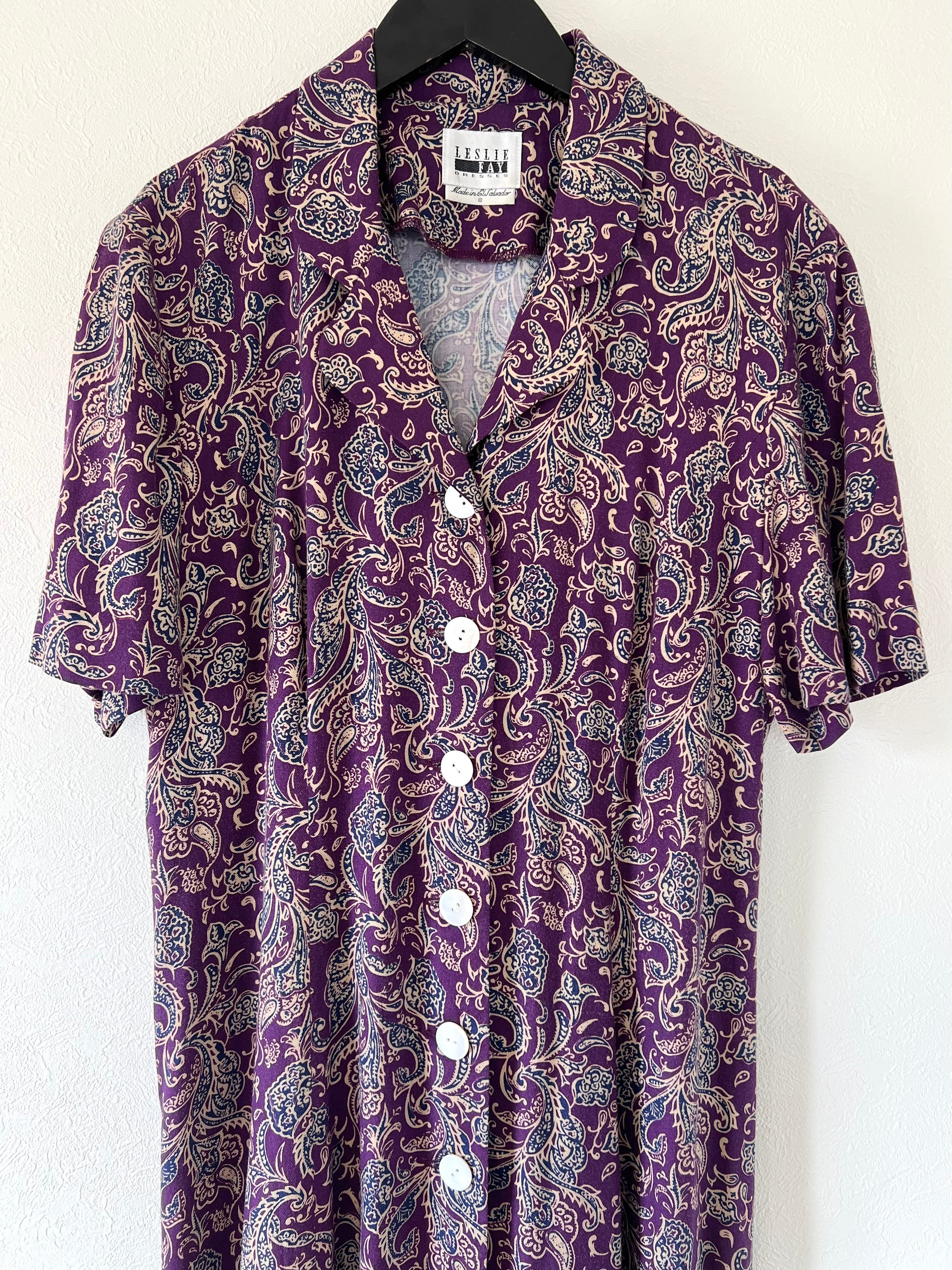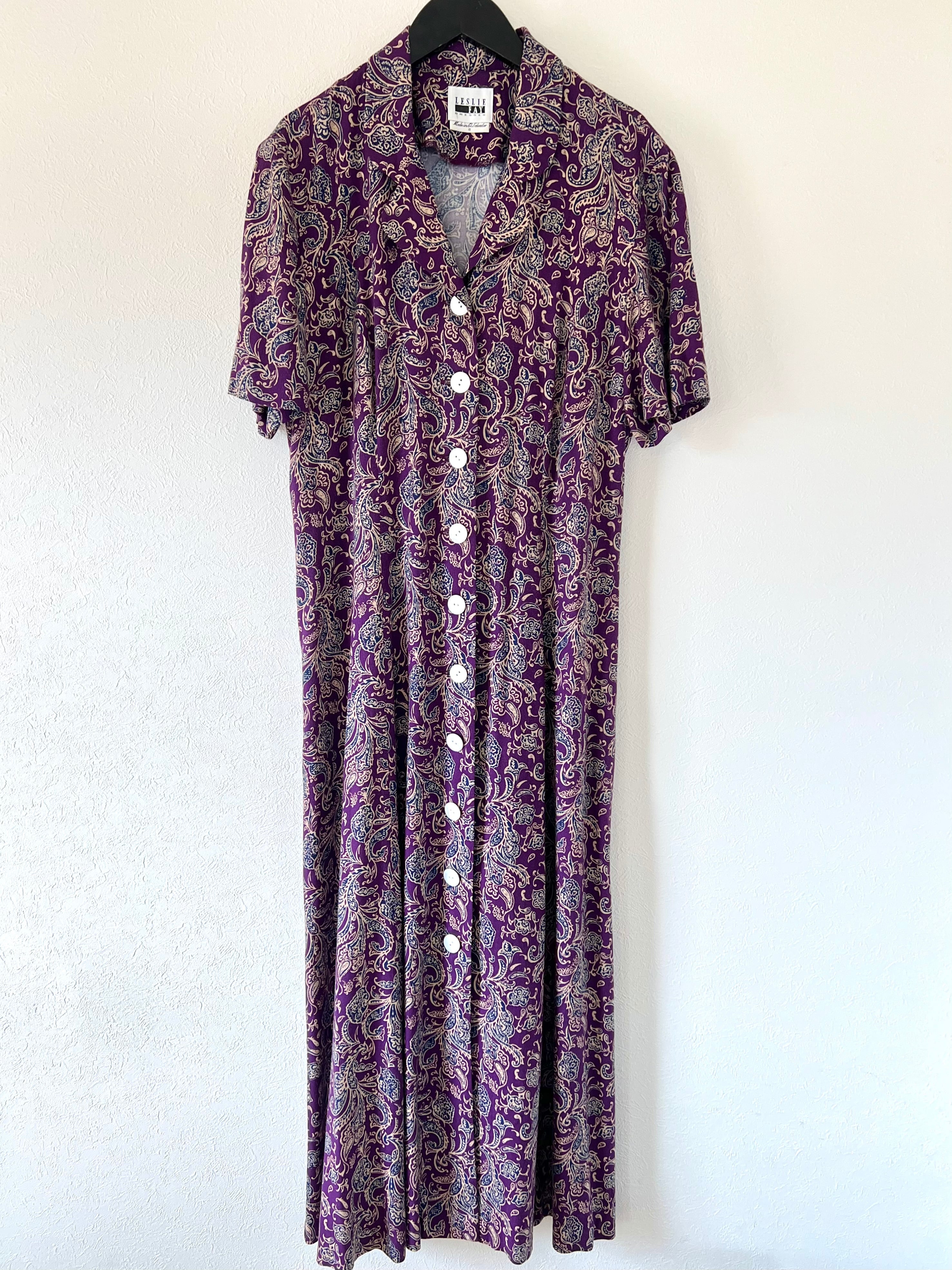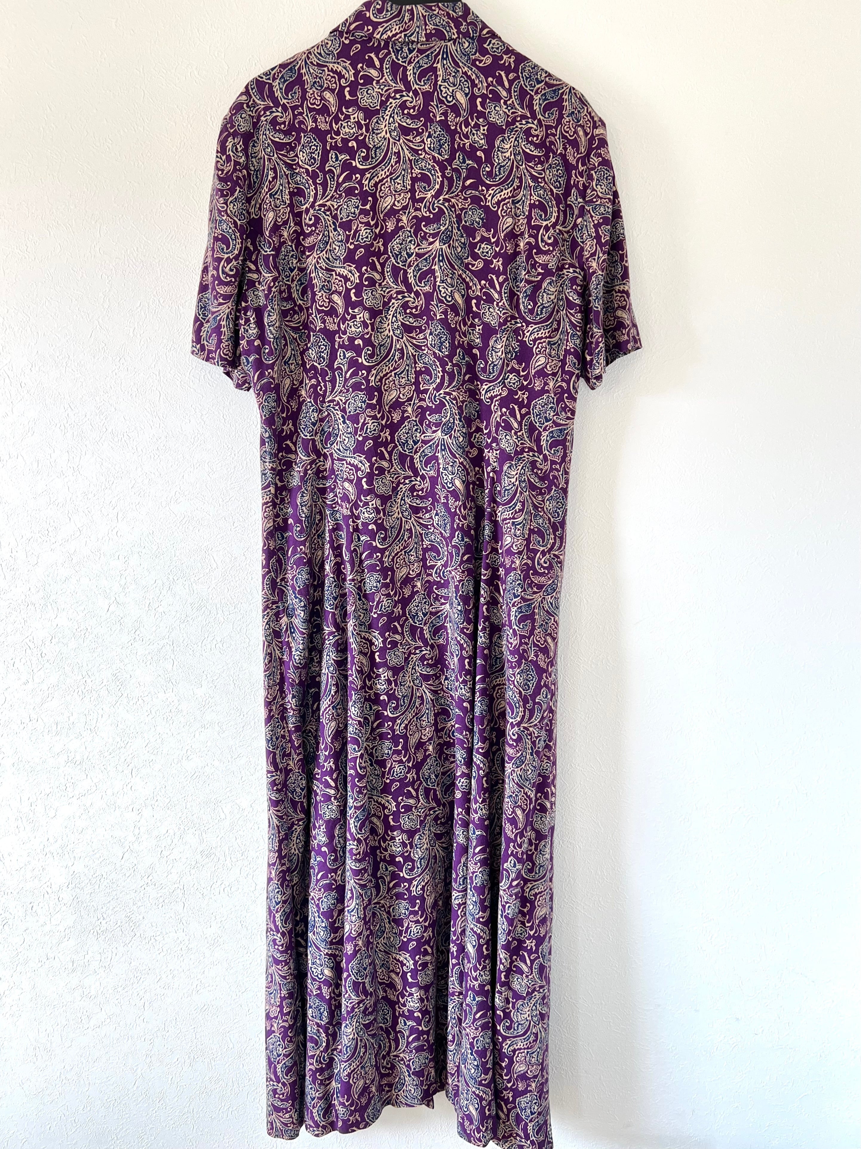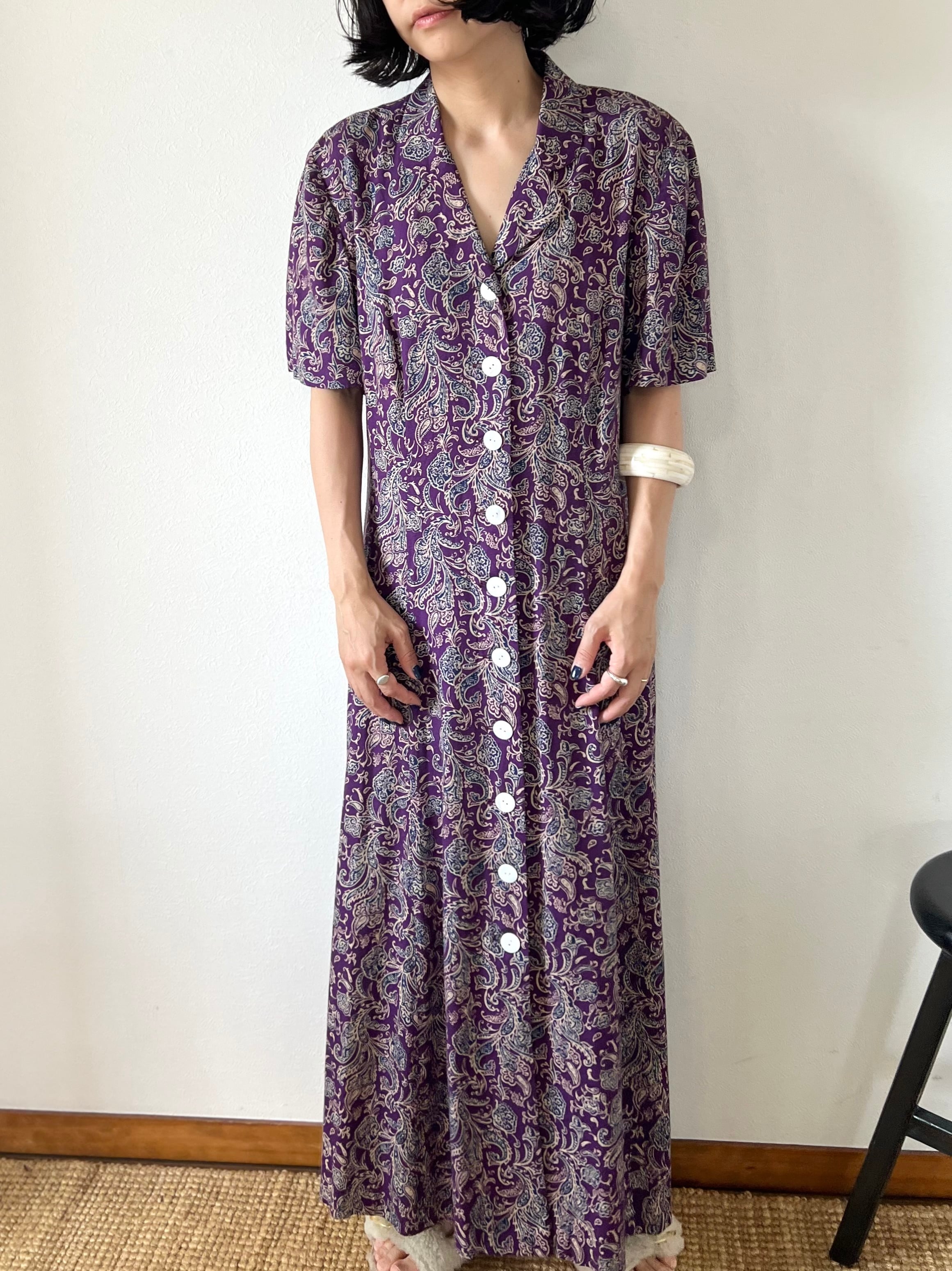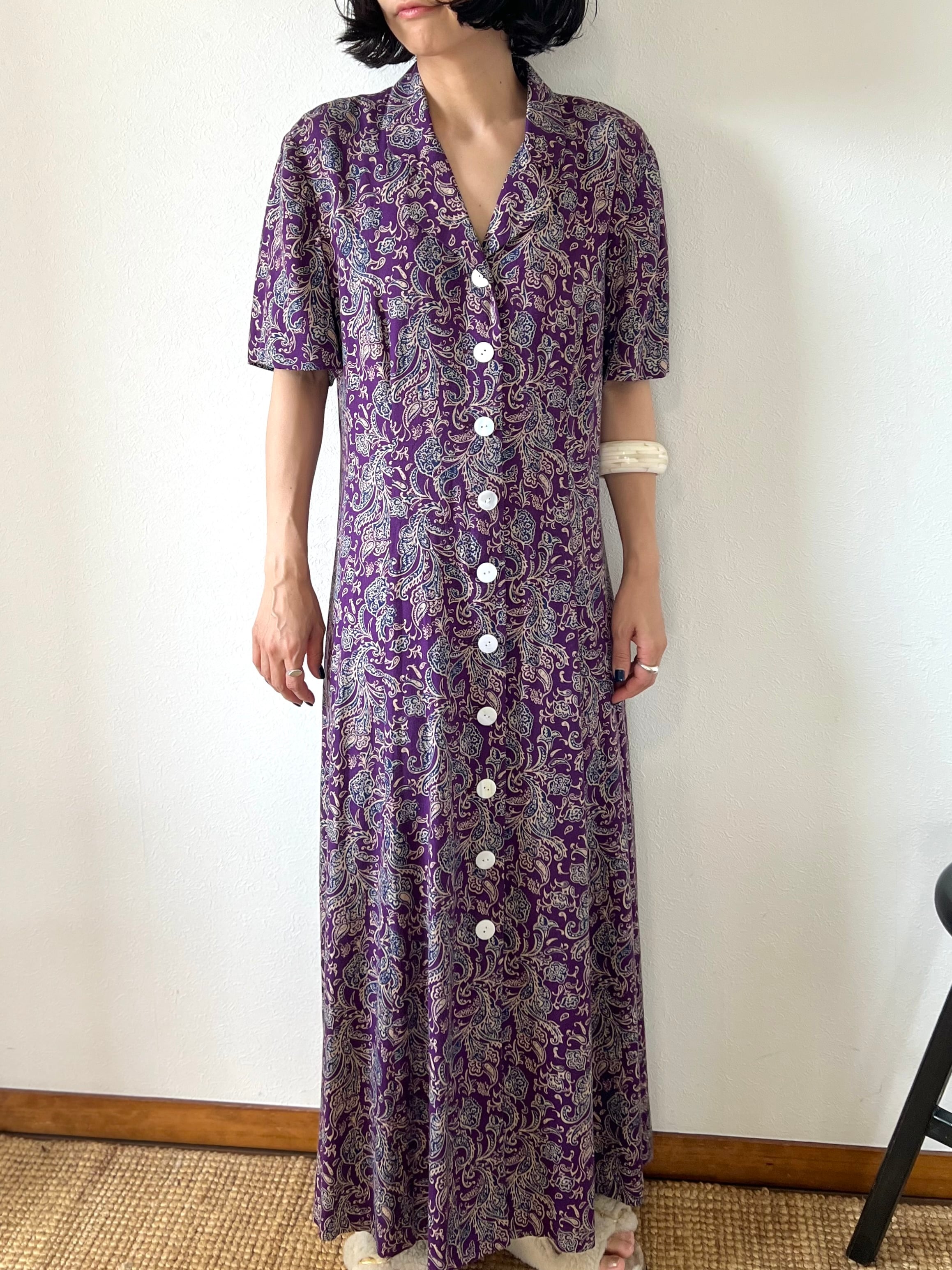 大人の雰囲気漂うパープルのペイズリー柄のヴィンテージワンピース。