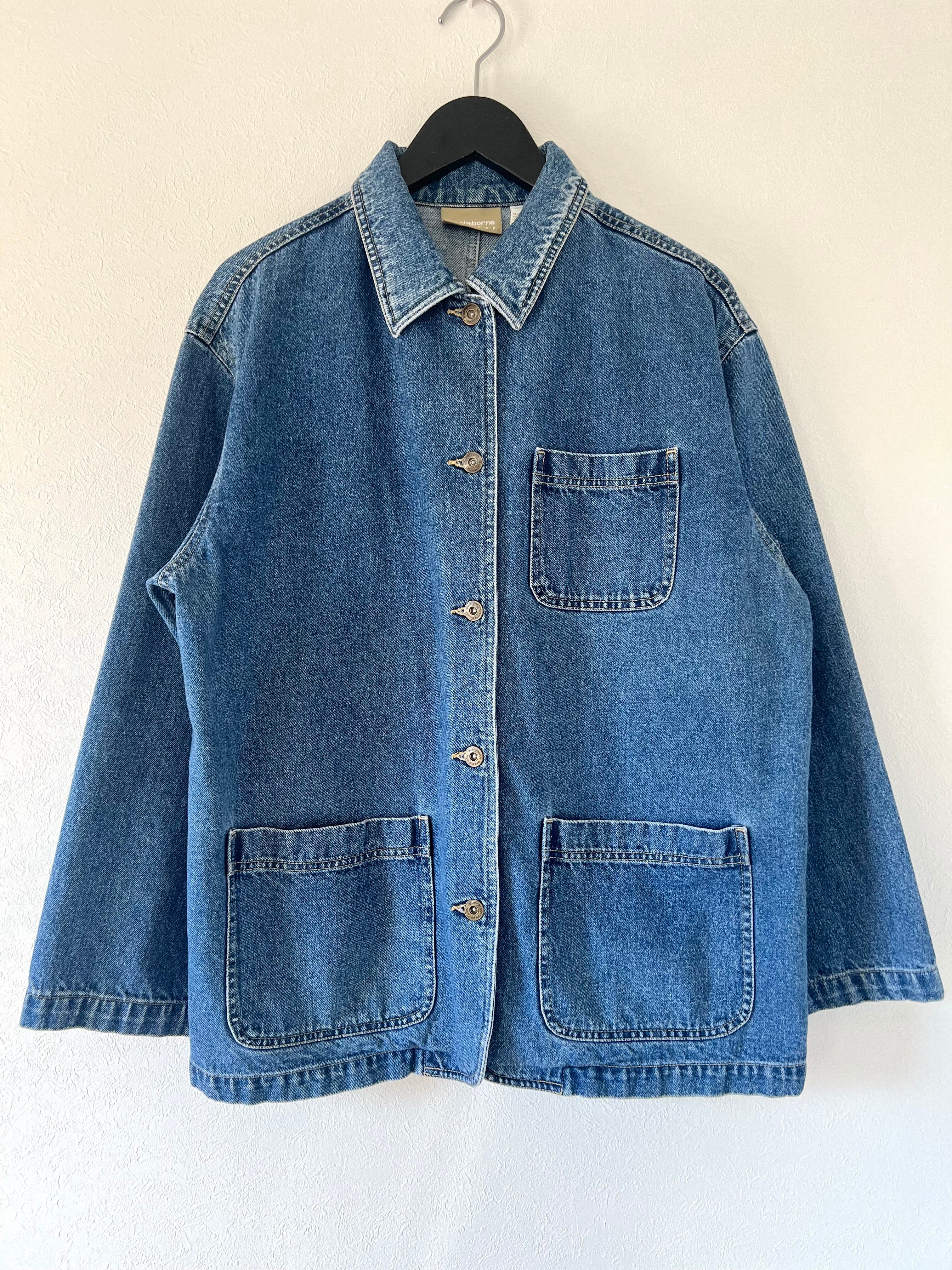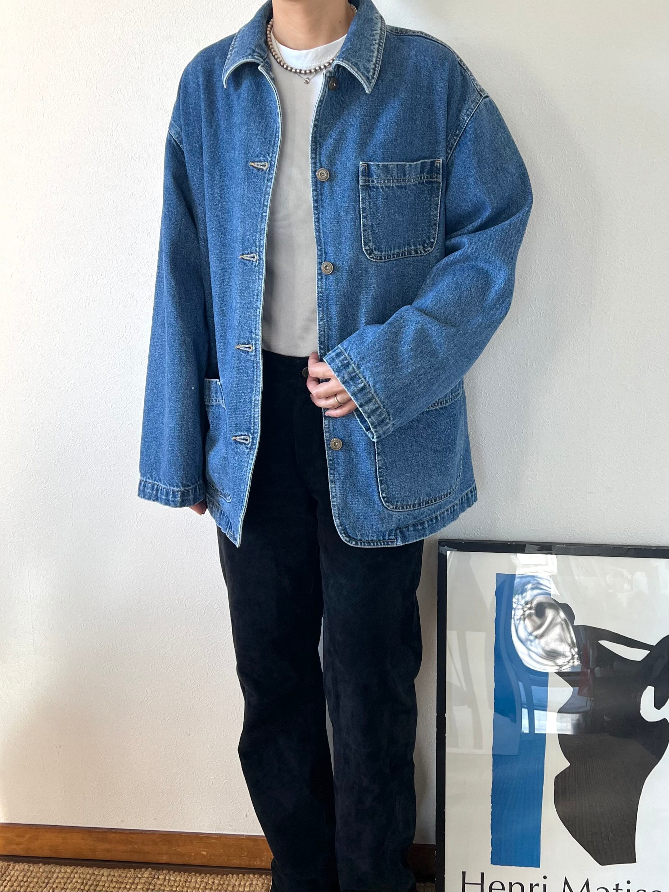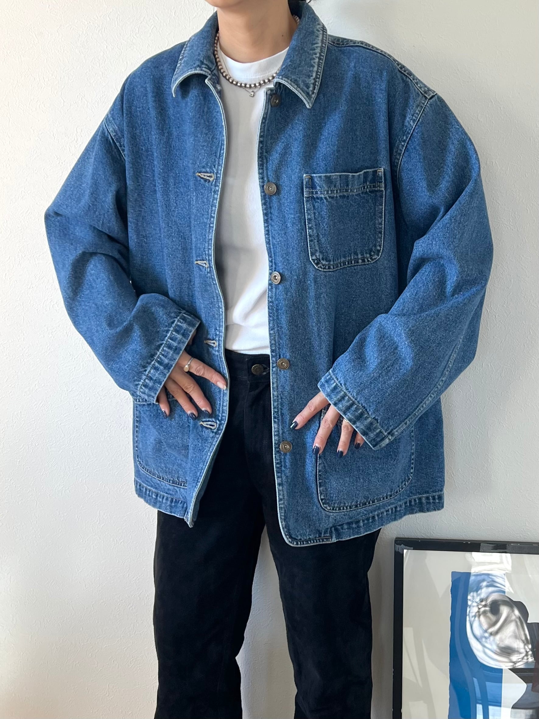 デニムの色落ちの雰囲気も良いLiz Claiborneのカーバーオールジャケット。