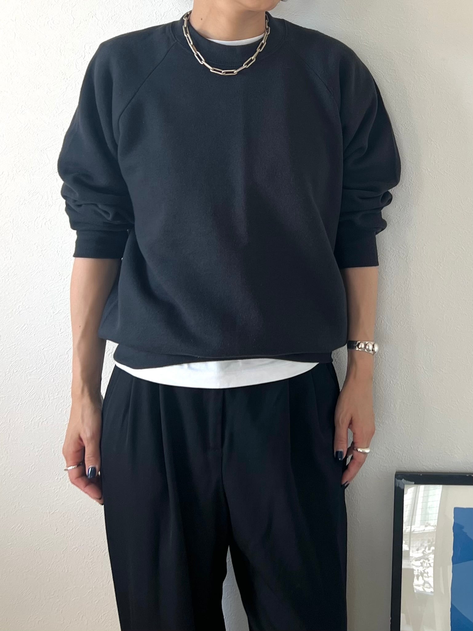 カジュアルで着回しの効く90年代のUSA製Fruit of the roomのラグランスリーブスウェットシャツ。