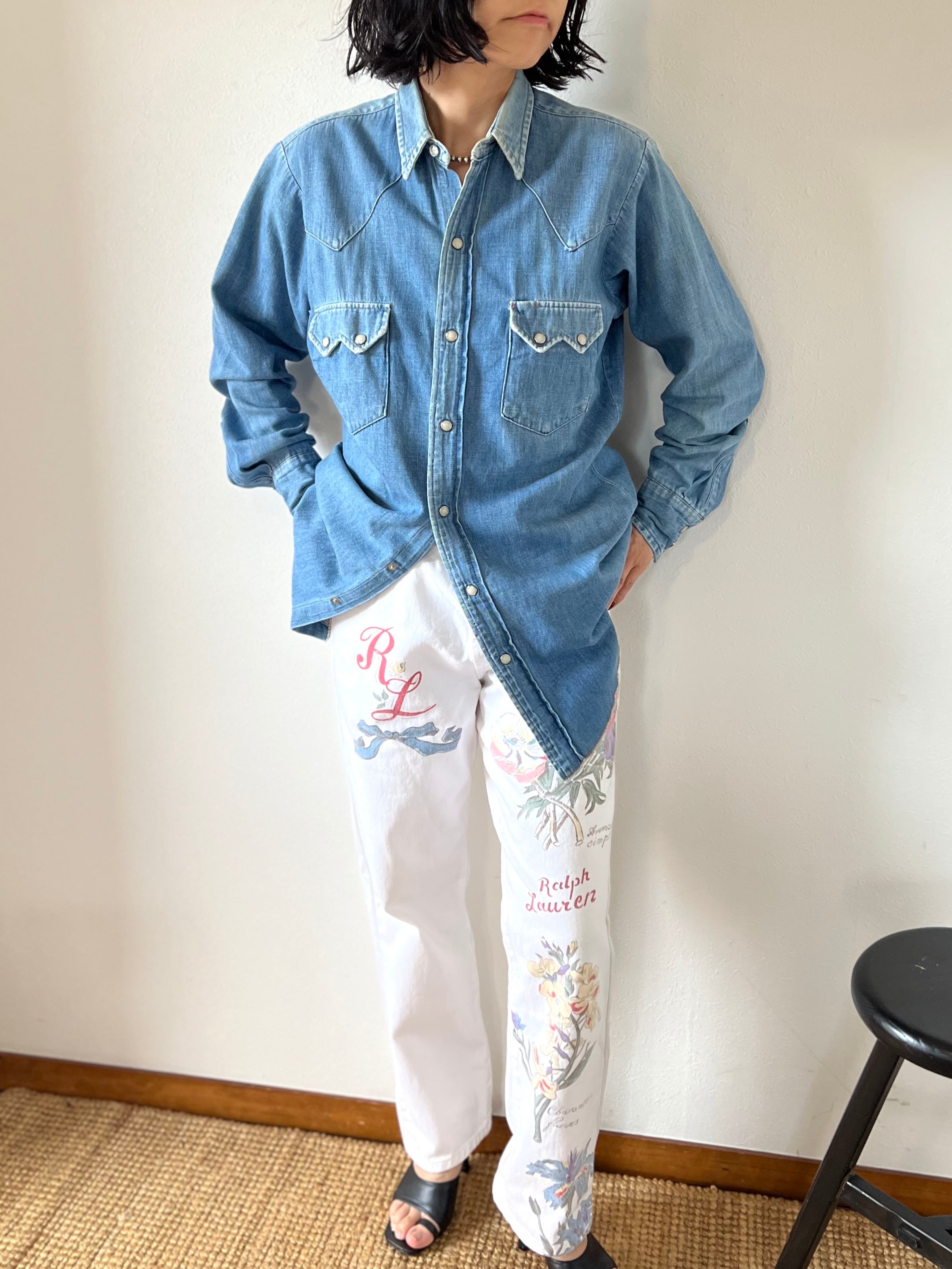 ペイント調のプリントがたまらなく可愛い80年代のUSA製Ralph Laurenのデニムパンツ。