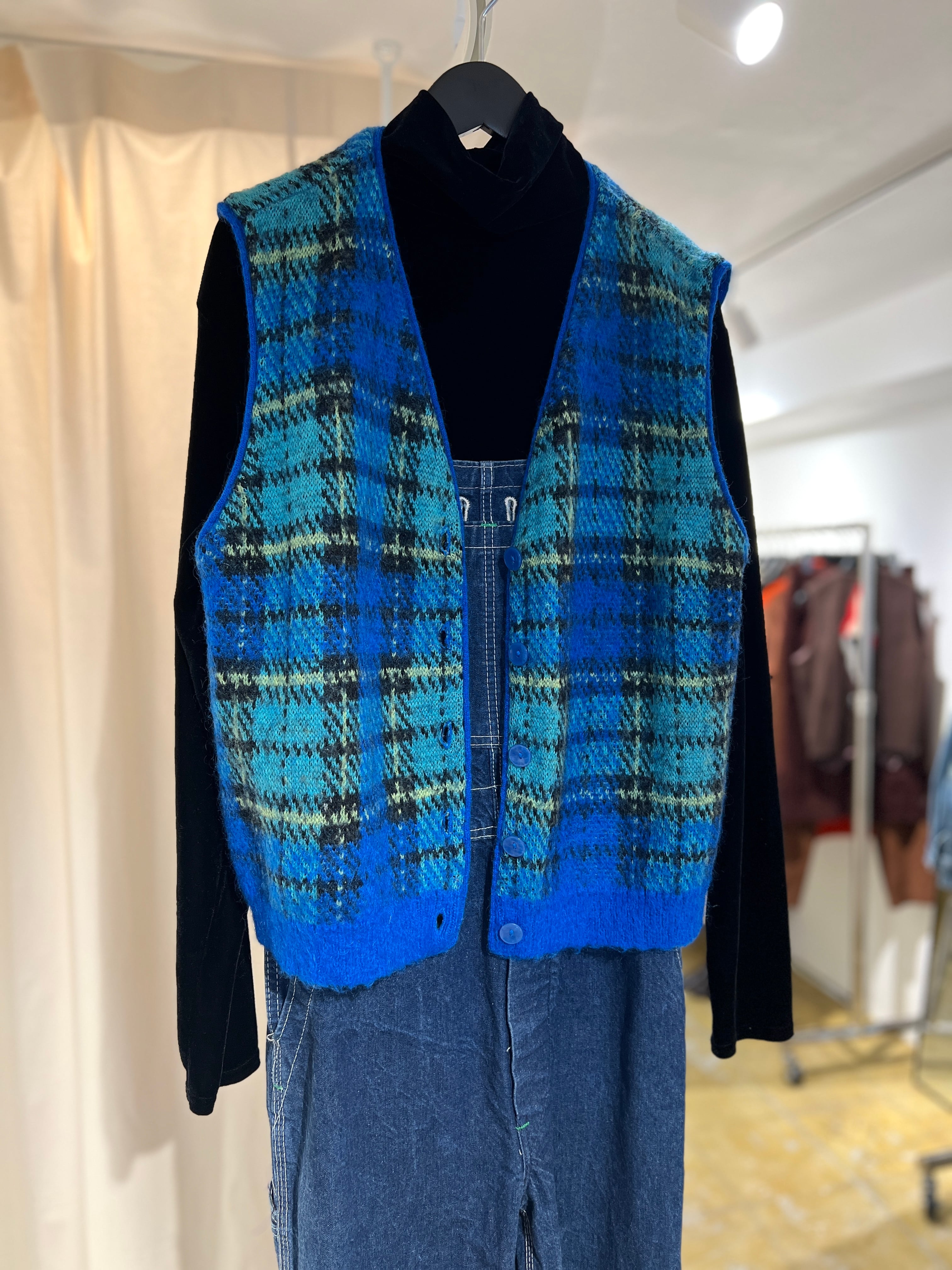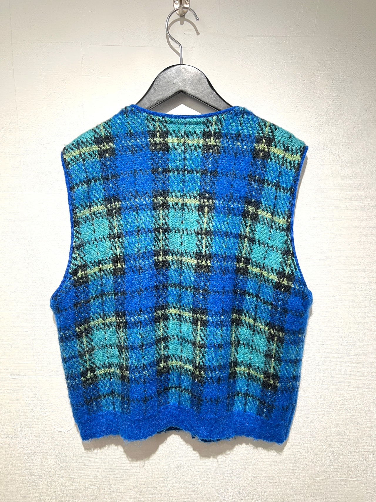 軽くて暖かいモヘアアクリルのニットベスト。シャツやカットソーと合わせたり、ジャケットの中にしのばせてレイヤードさせたりと、厚手では無いのでインにもアウトにも重宝します。