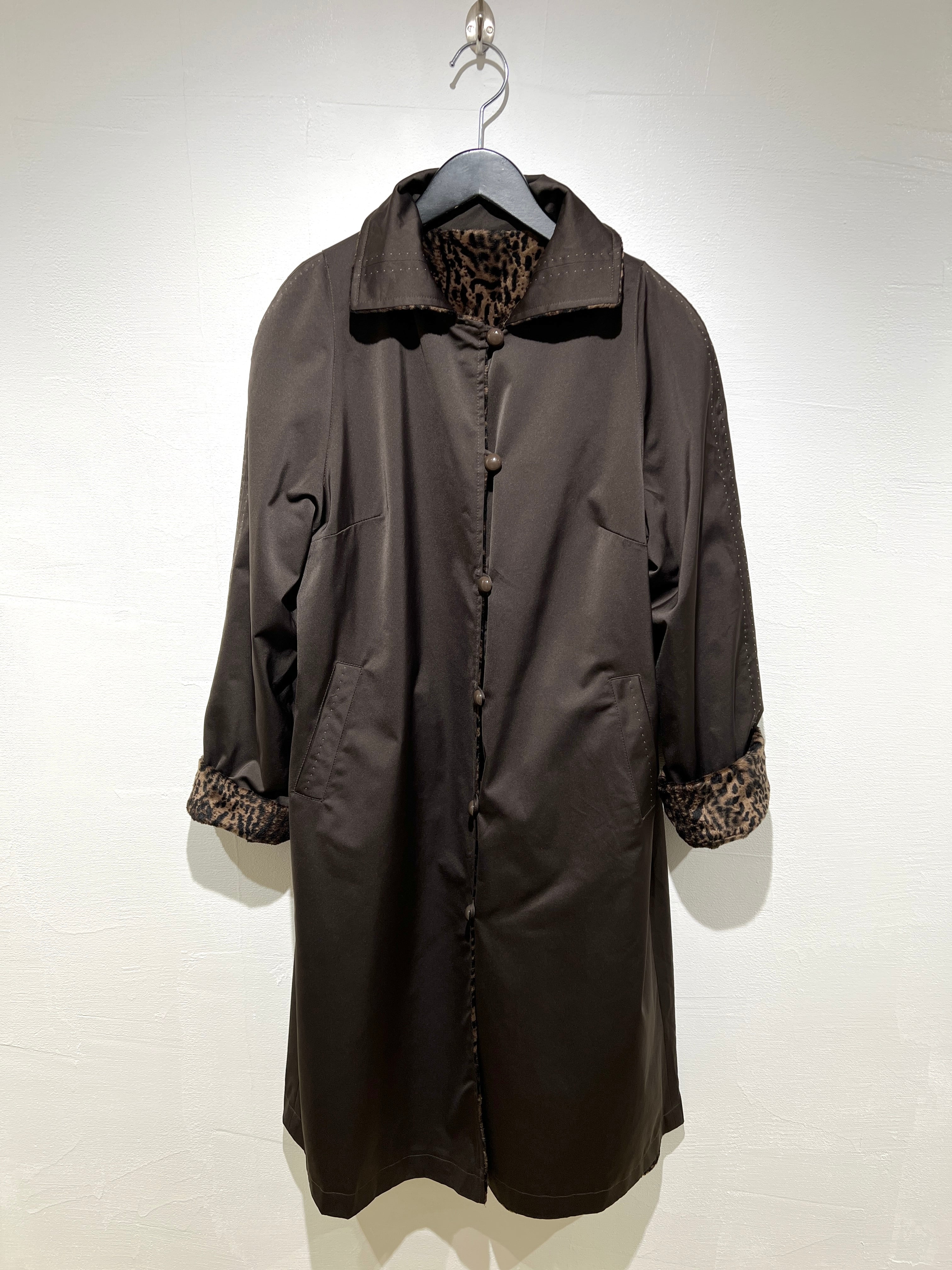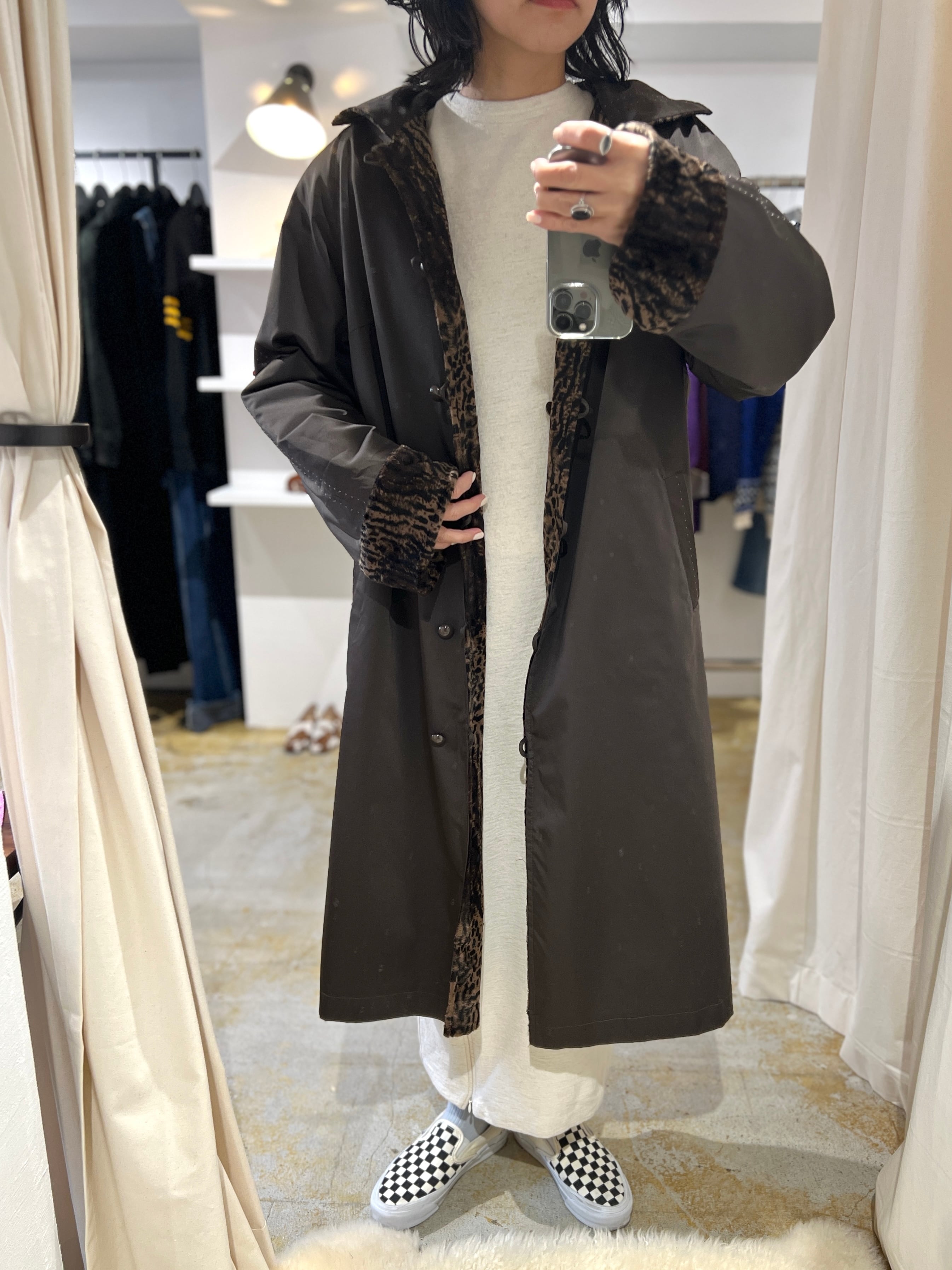 短めの毛並みが綺麗なフェイクファー素材と艶のあるナイロン調の2wayで両面着用出来るリバーシブルロングコート。