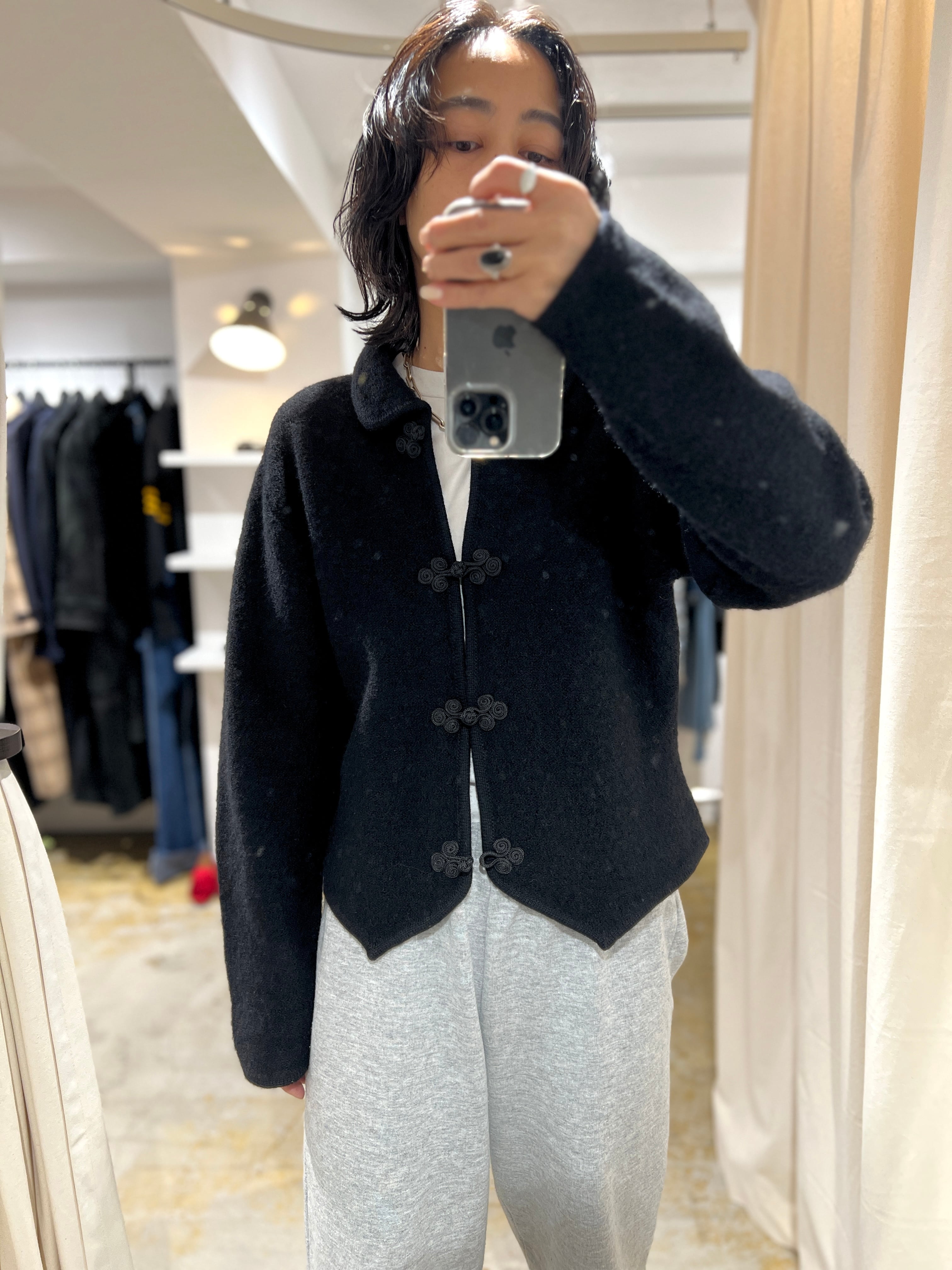 ウールを圧縮した軽く暖かいボイルドウールのチャイナスタイルジャケット。