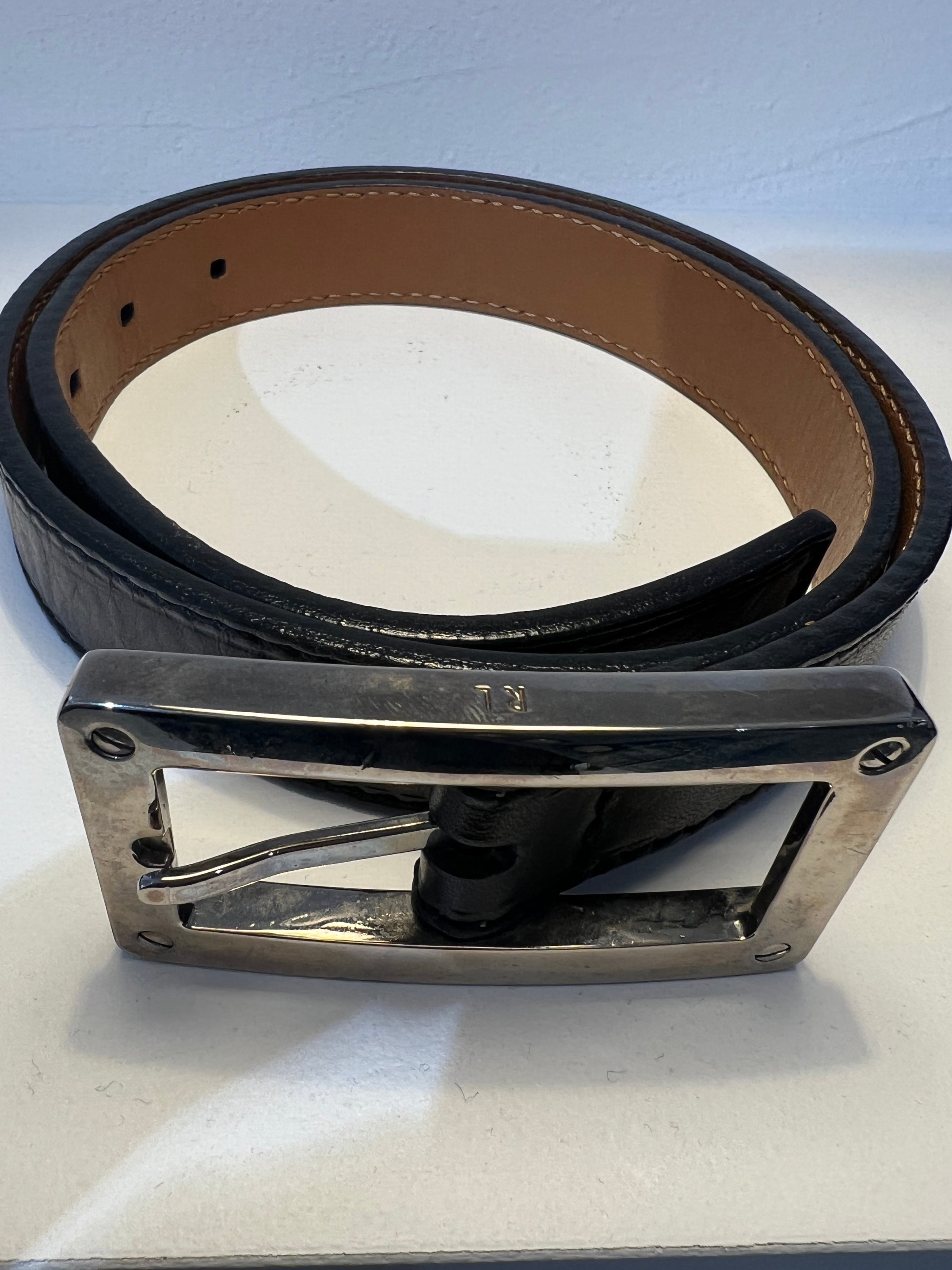 かっちりとした太めのスクエアバックルはかっこいいRalph Laurenのレザーベルト。