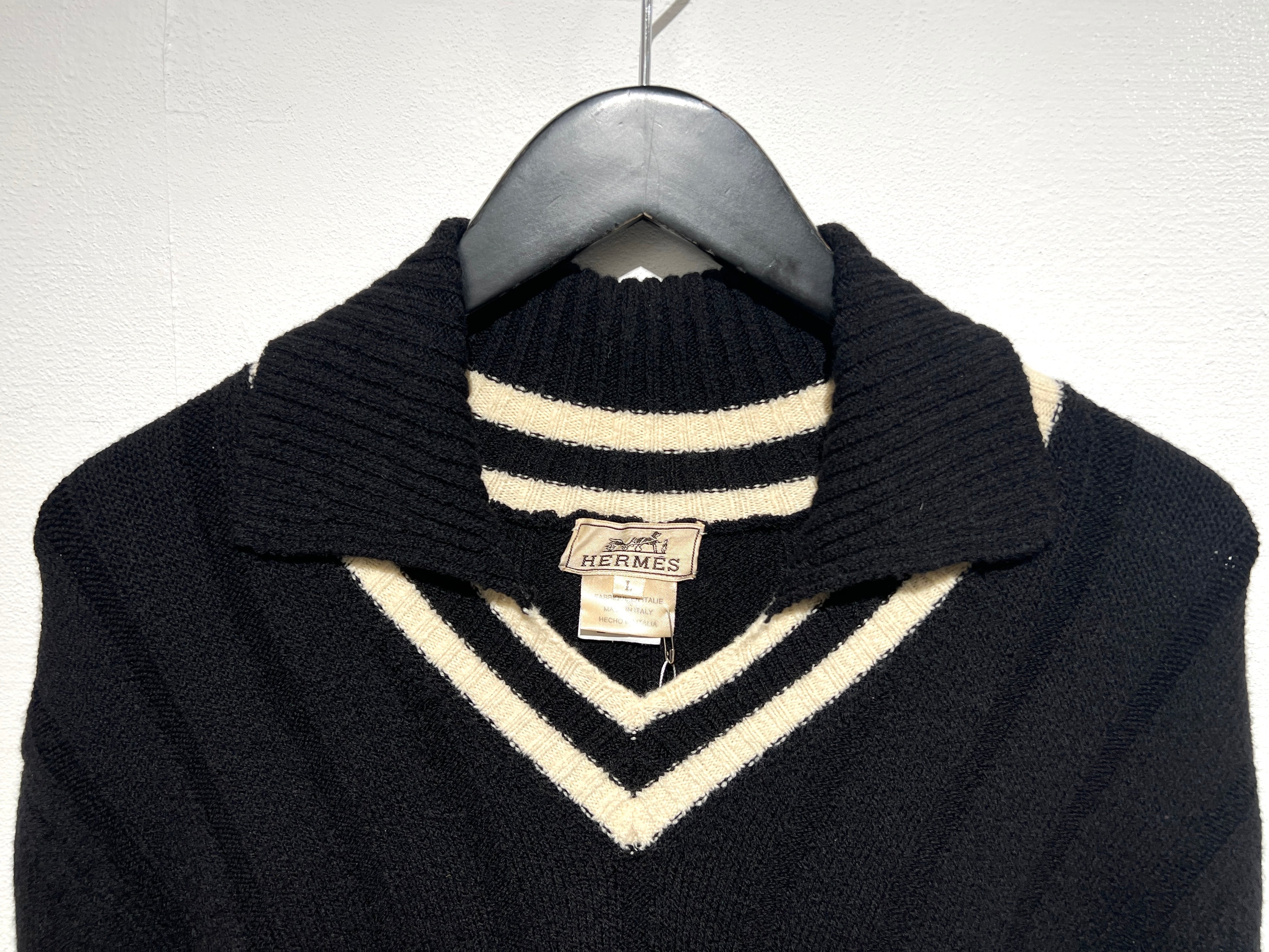 Vネックに襟のついた珍しいデザインが素敵なHERMÈSのリブニット。