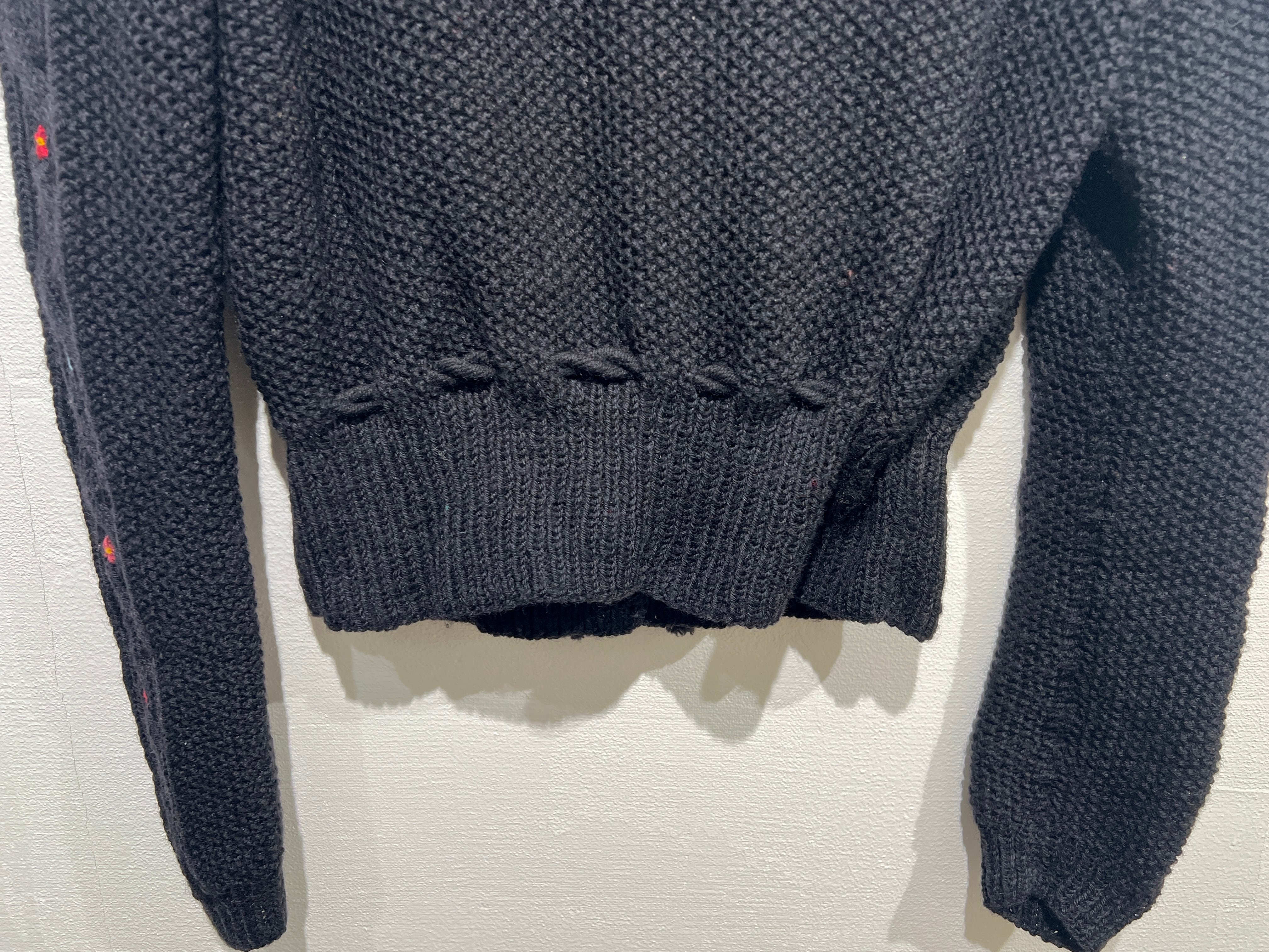 フロントや袖にも入った小花柄の刺繍やコンチョボタンが可愛いオーストリアの伝統的なチロリアンヴィンテージニット。