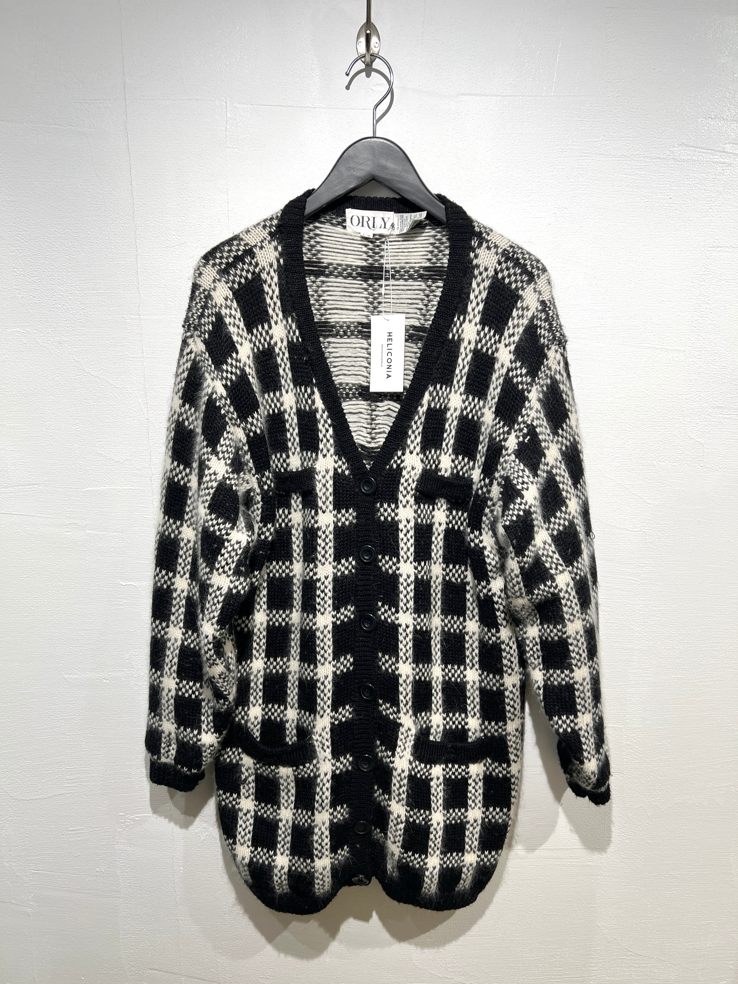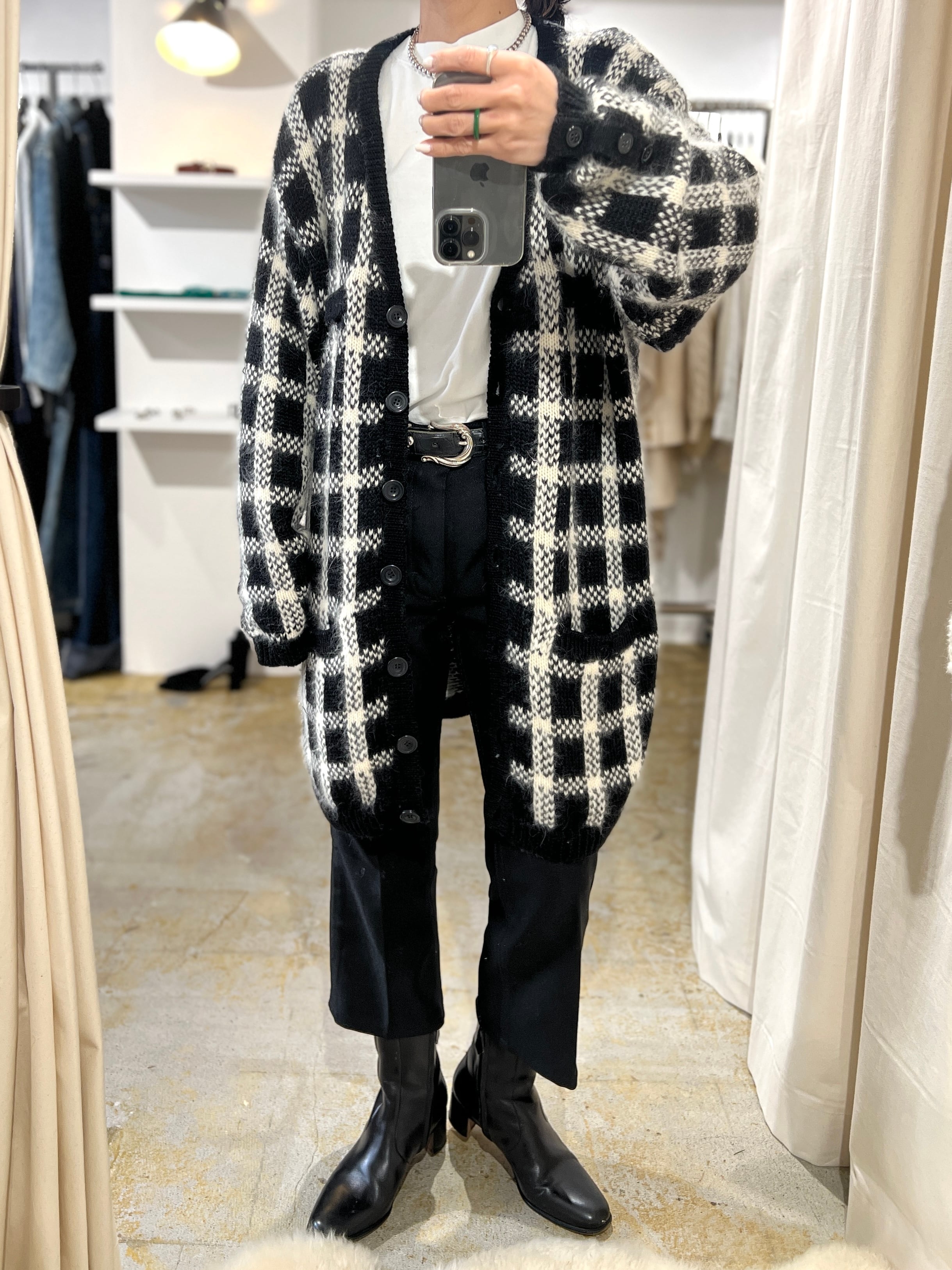アンゴラ混が可愛いチェックのロングニットカーディガン。