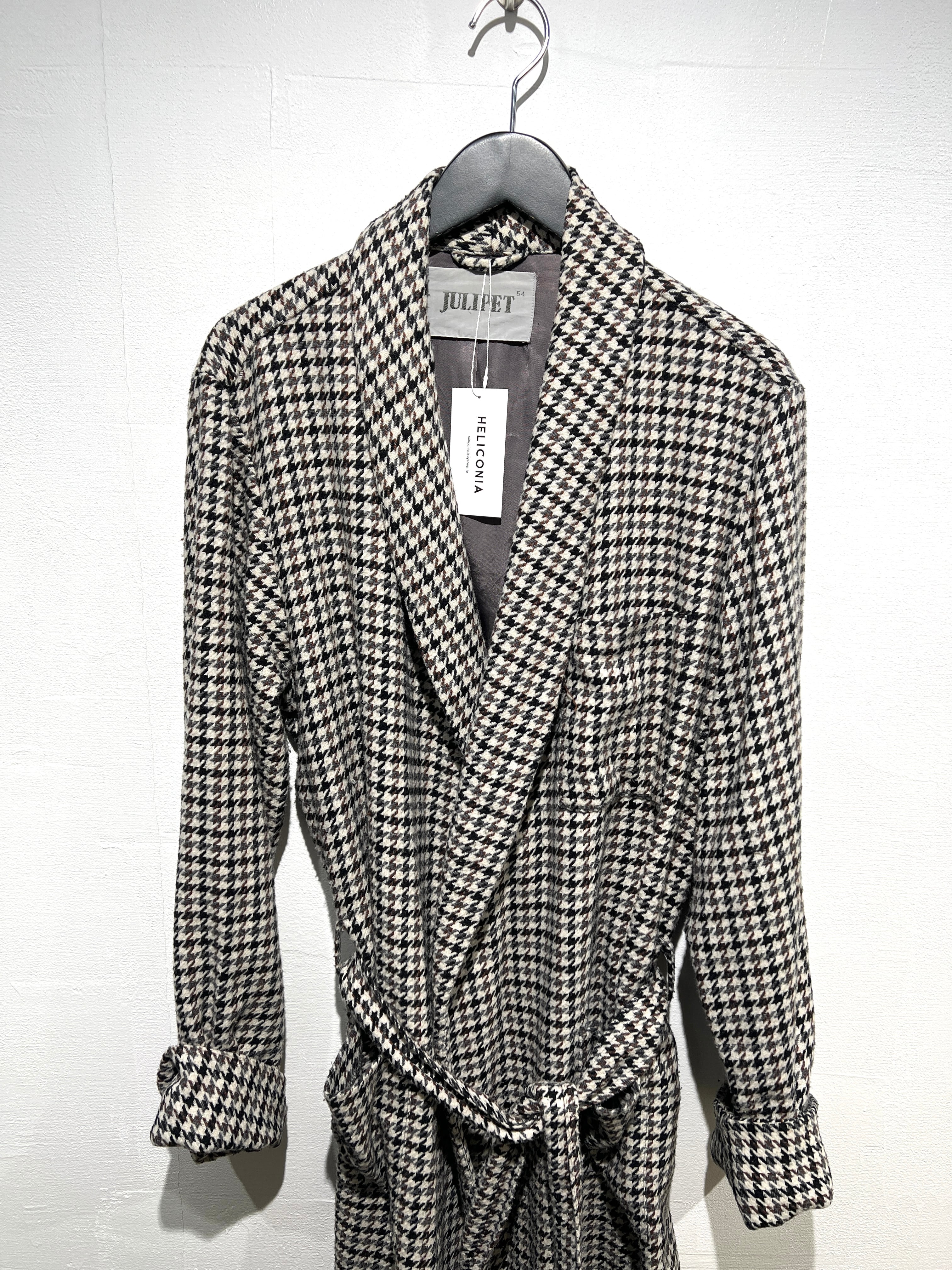 wool checked belted gown