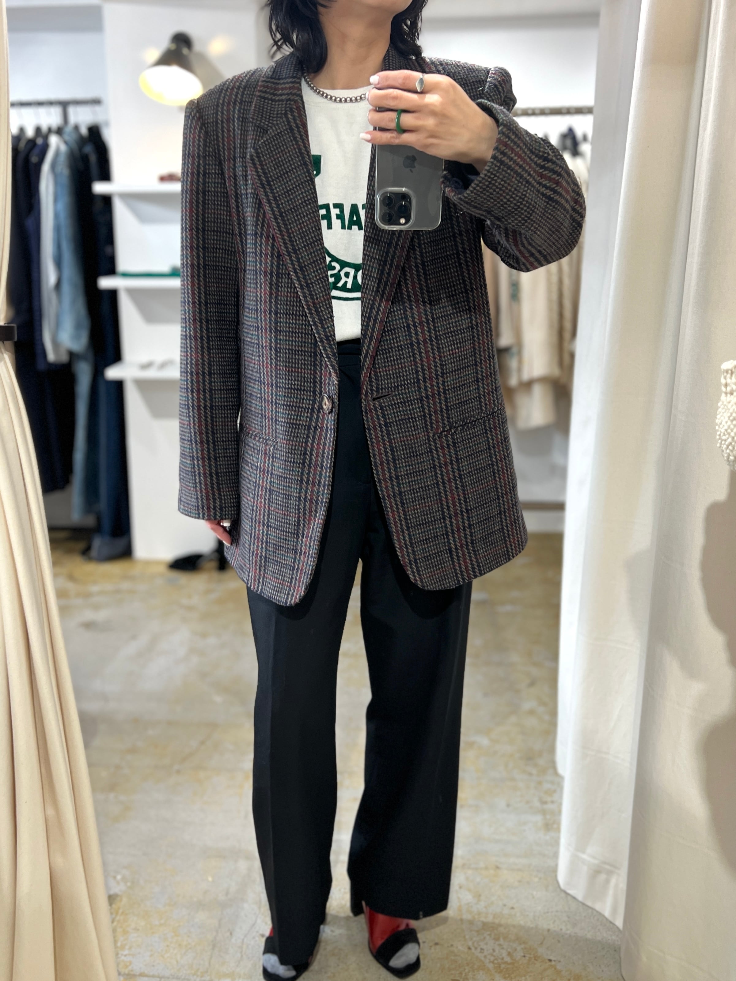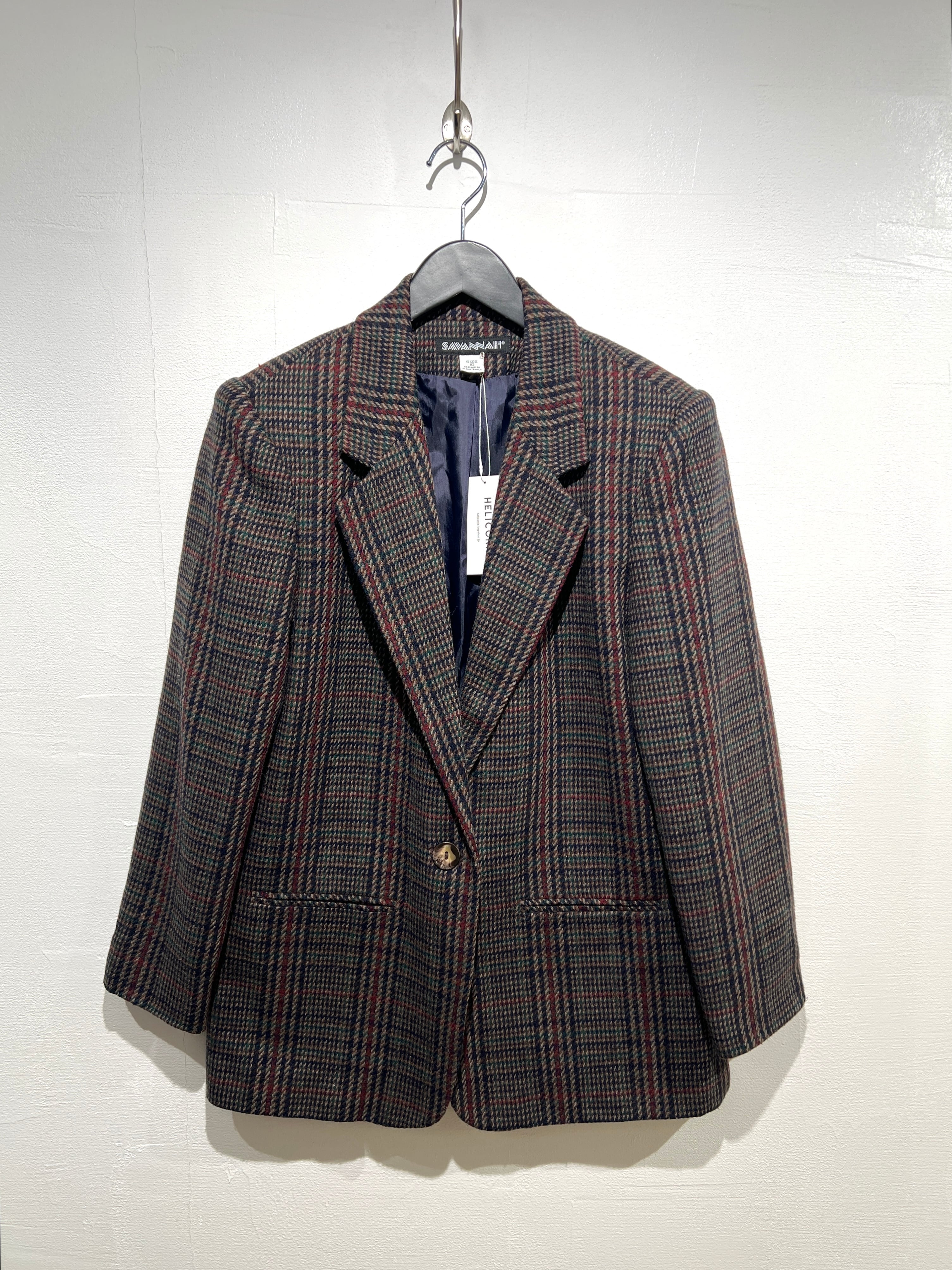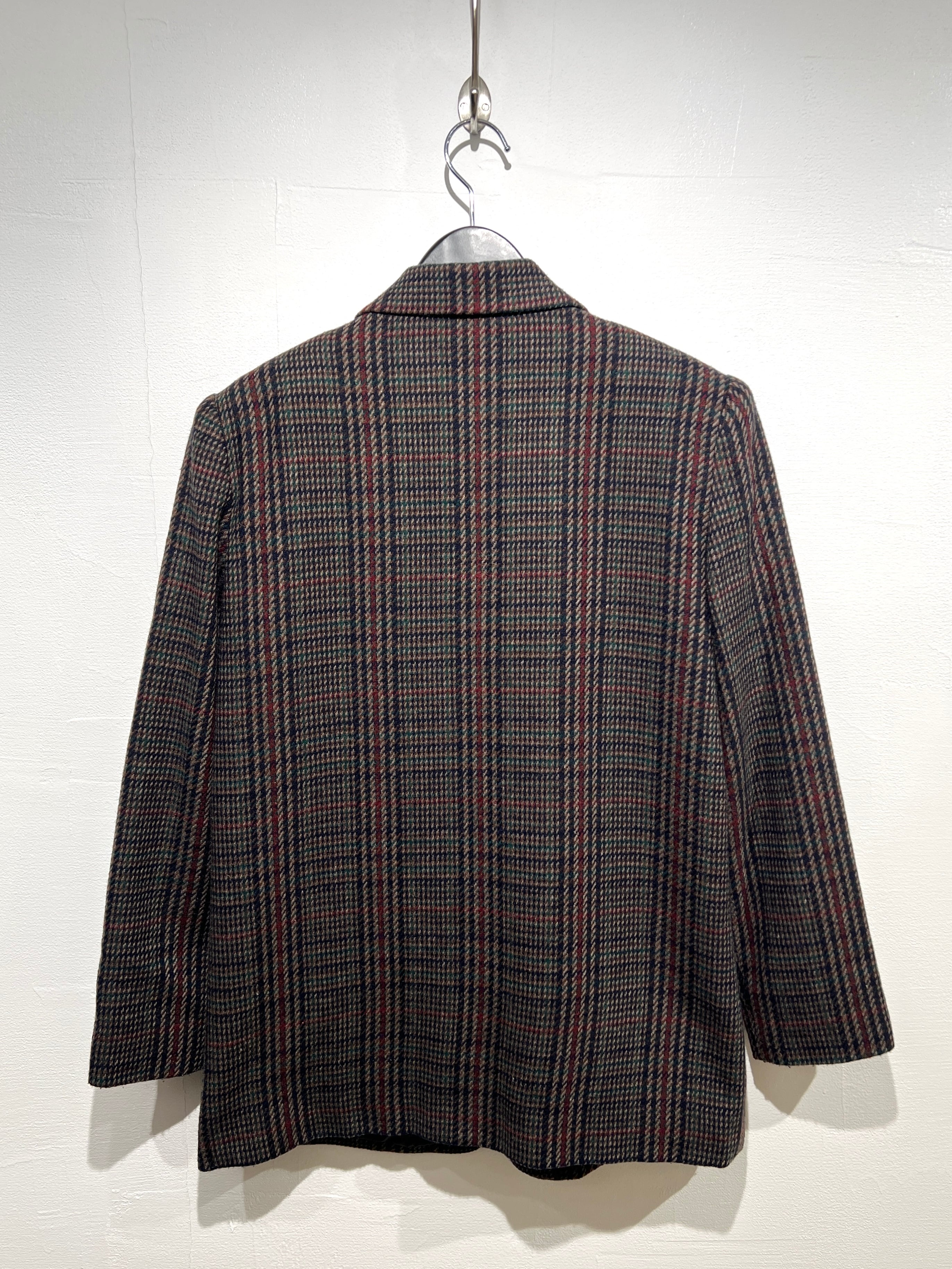 しっかりした肩パッドの入ったショルダーラインやクラシックな柄が素敵な80年代のチェックジャケット。