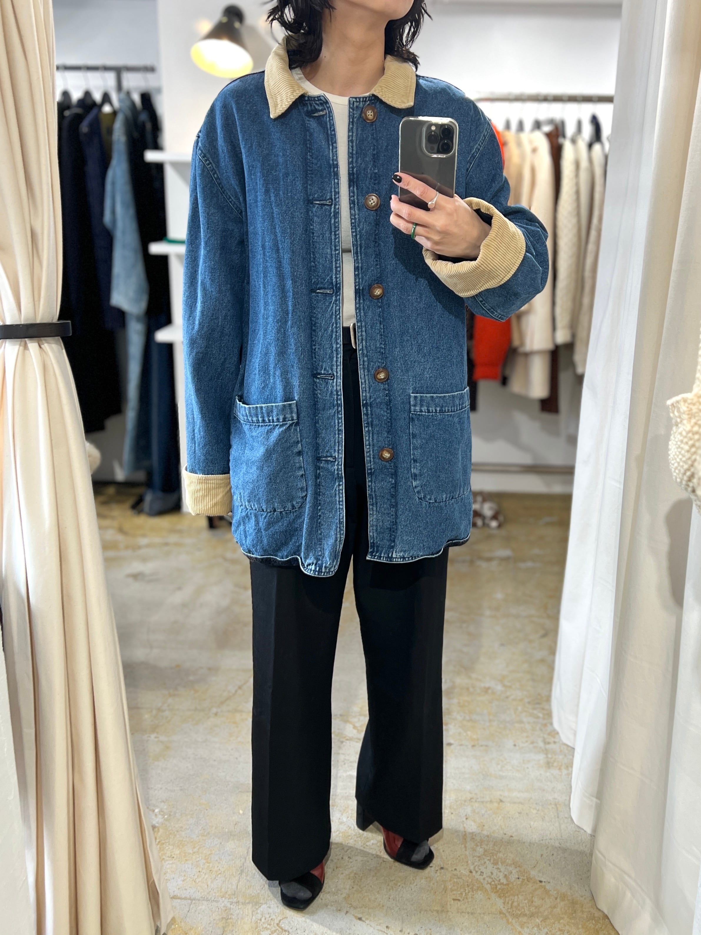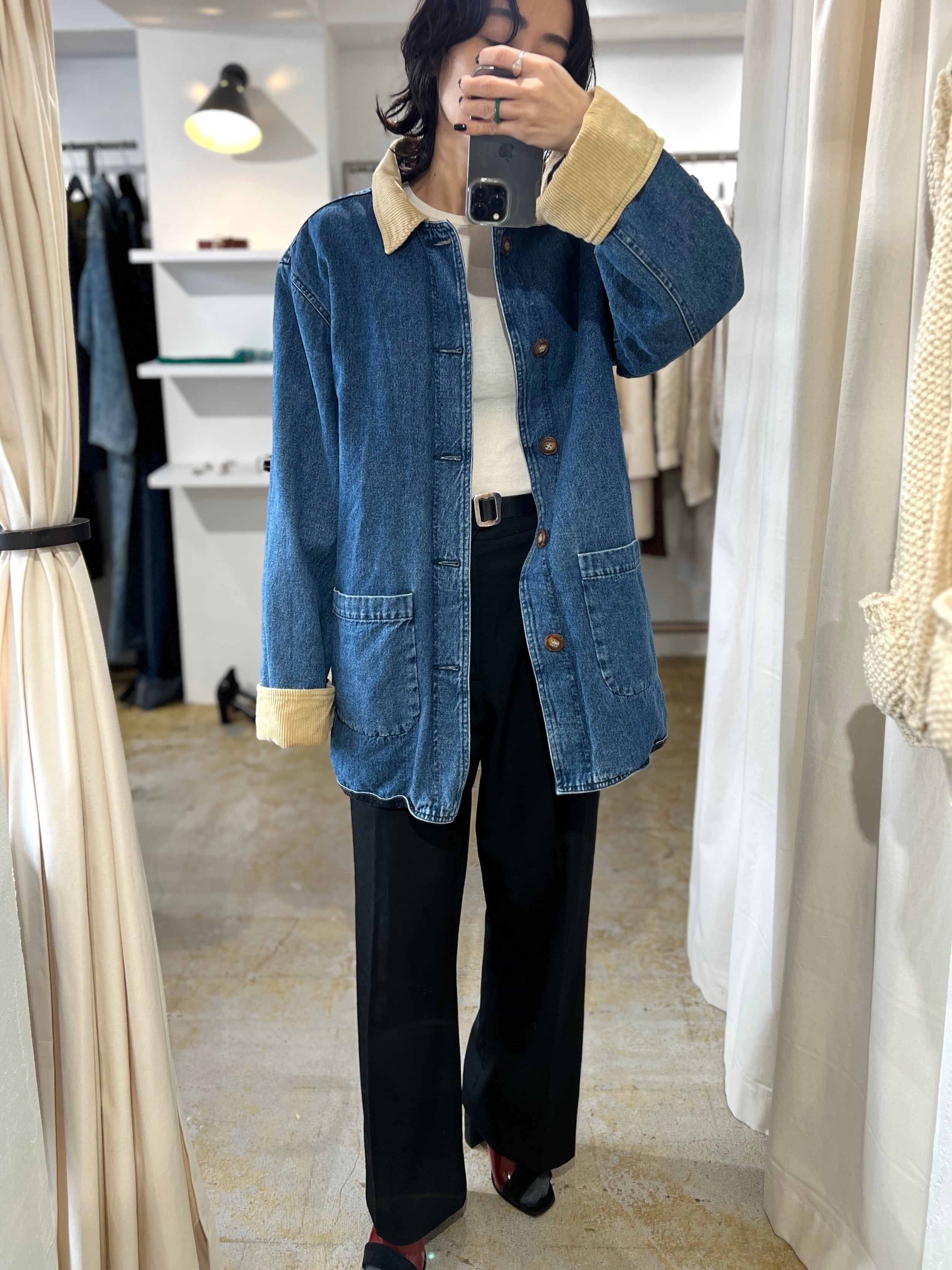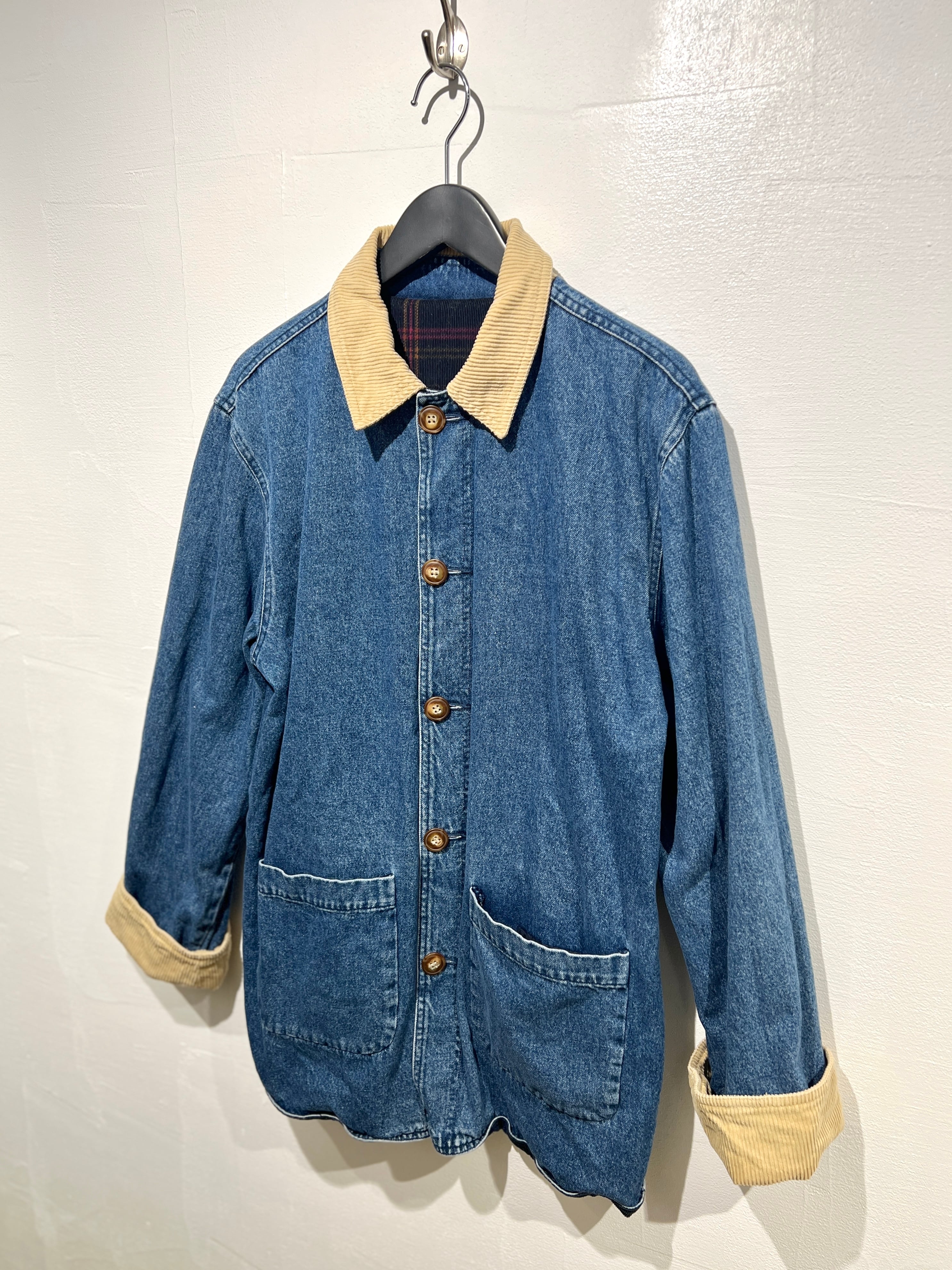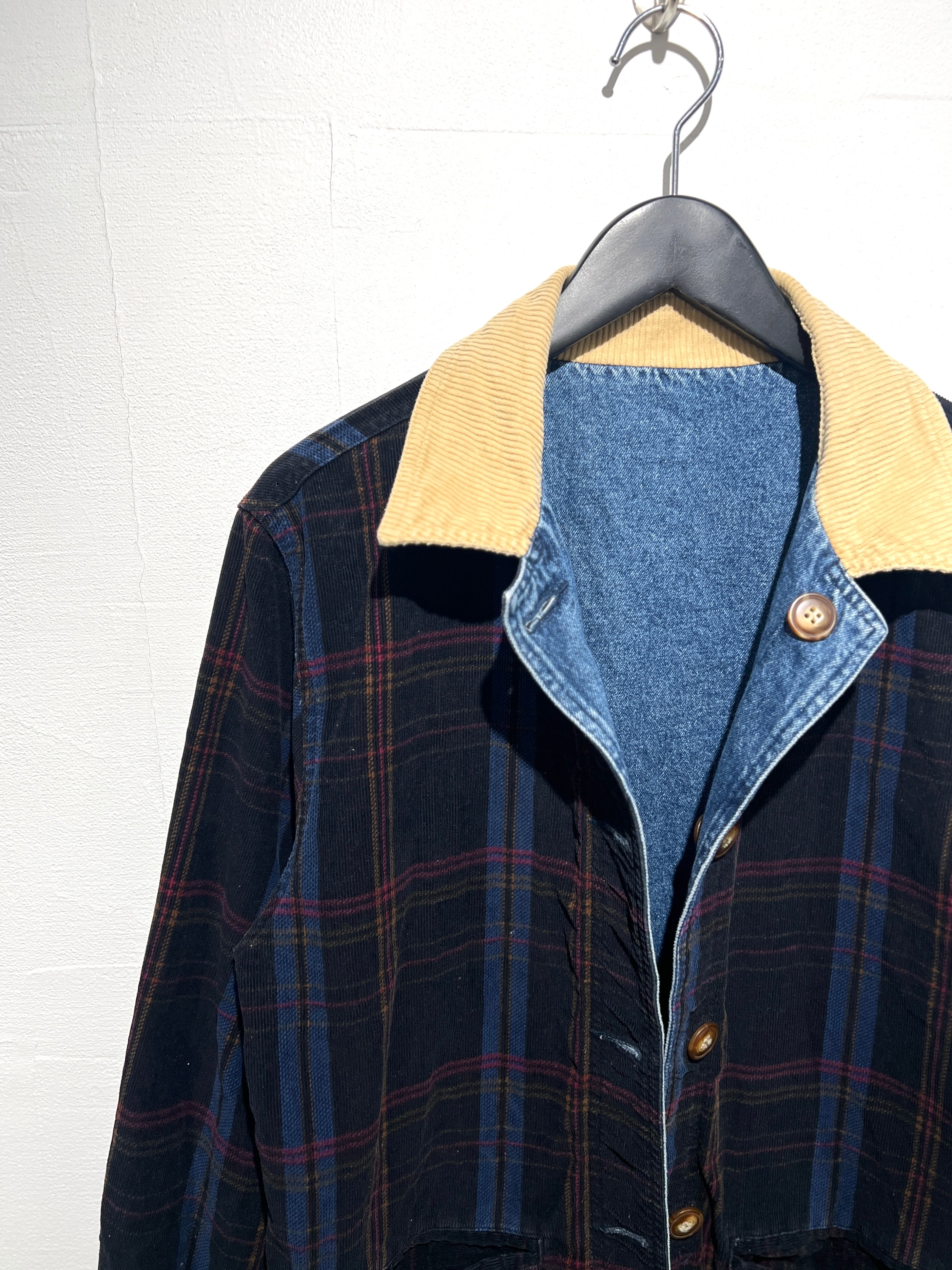 デニムとコーデュロイのリバーシブルになったカバーオールジャケット。