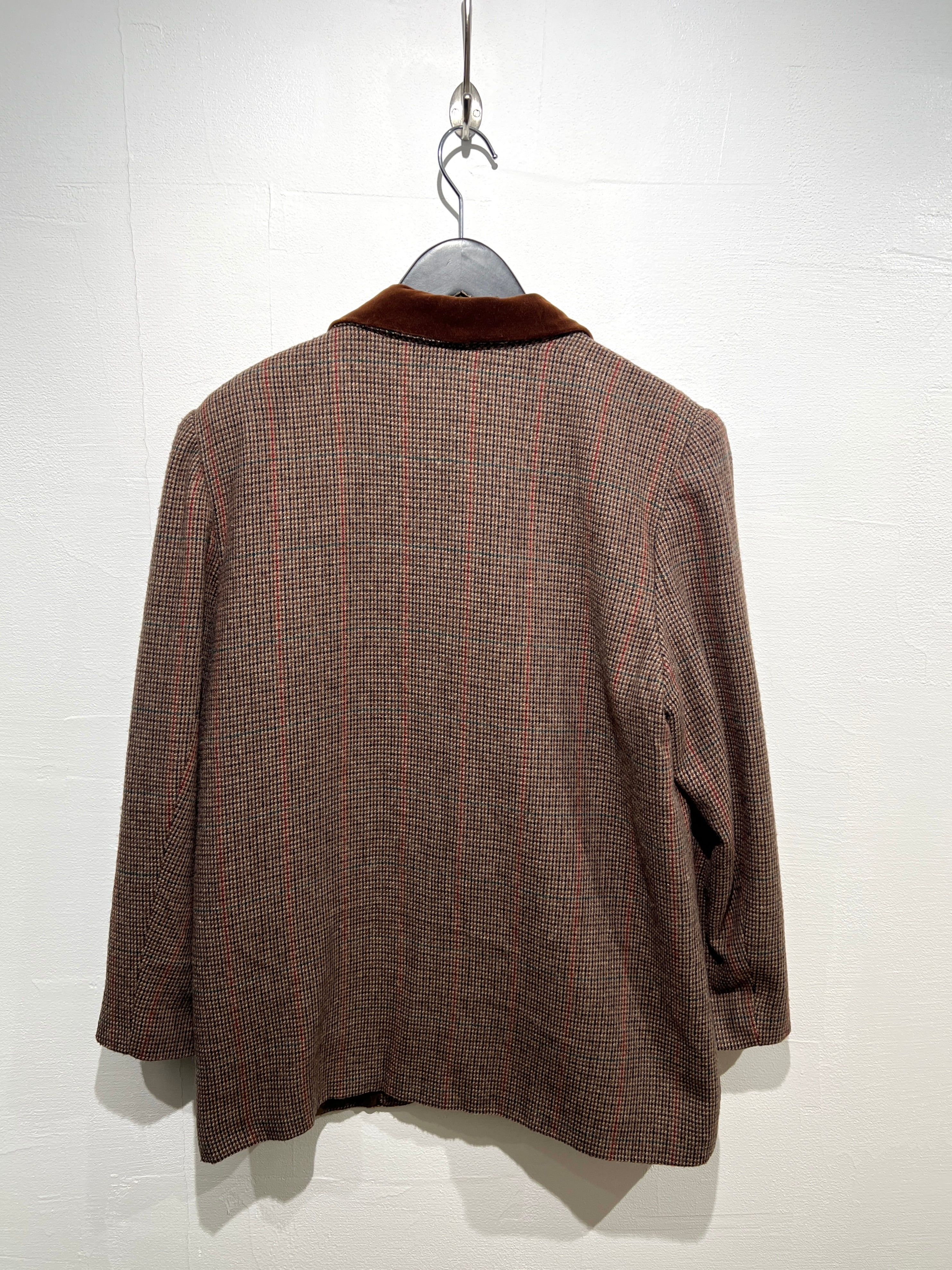 カラーとポケット口がベロアで切り替えられた80-90年代のツイードジャケット。