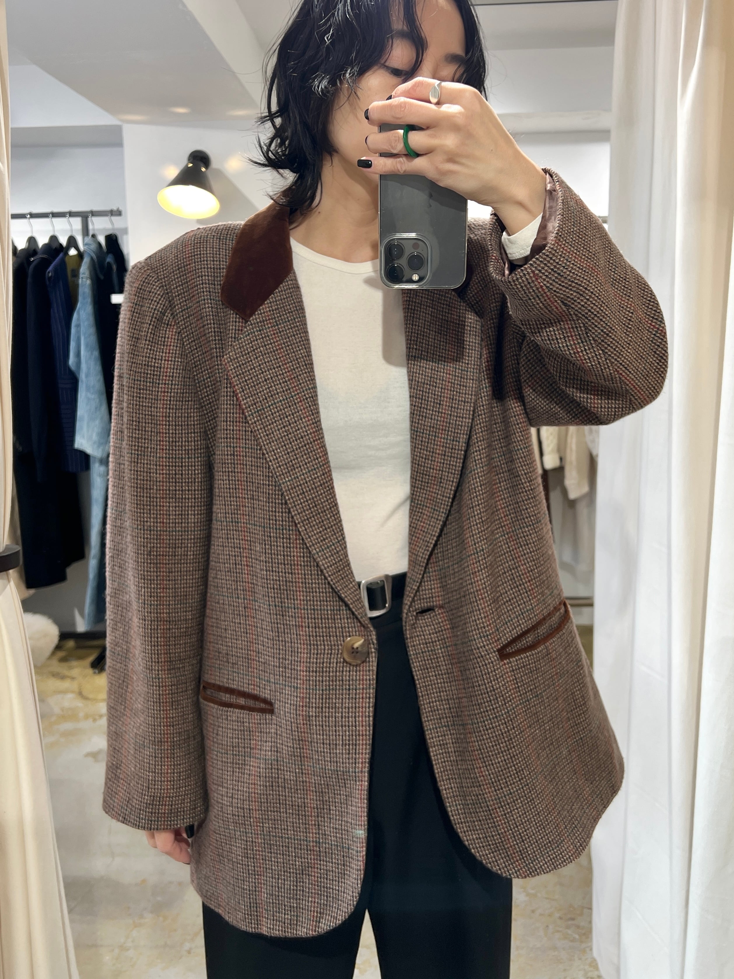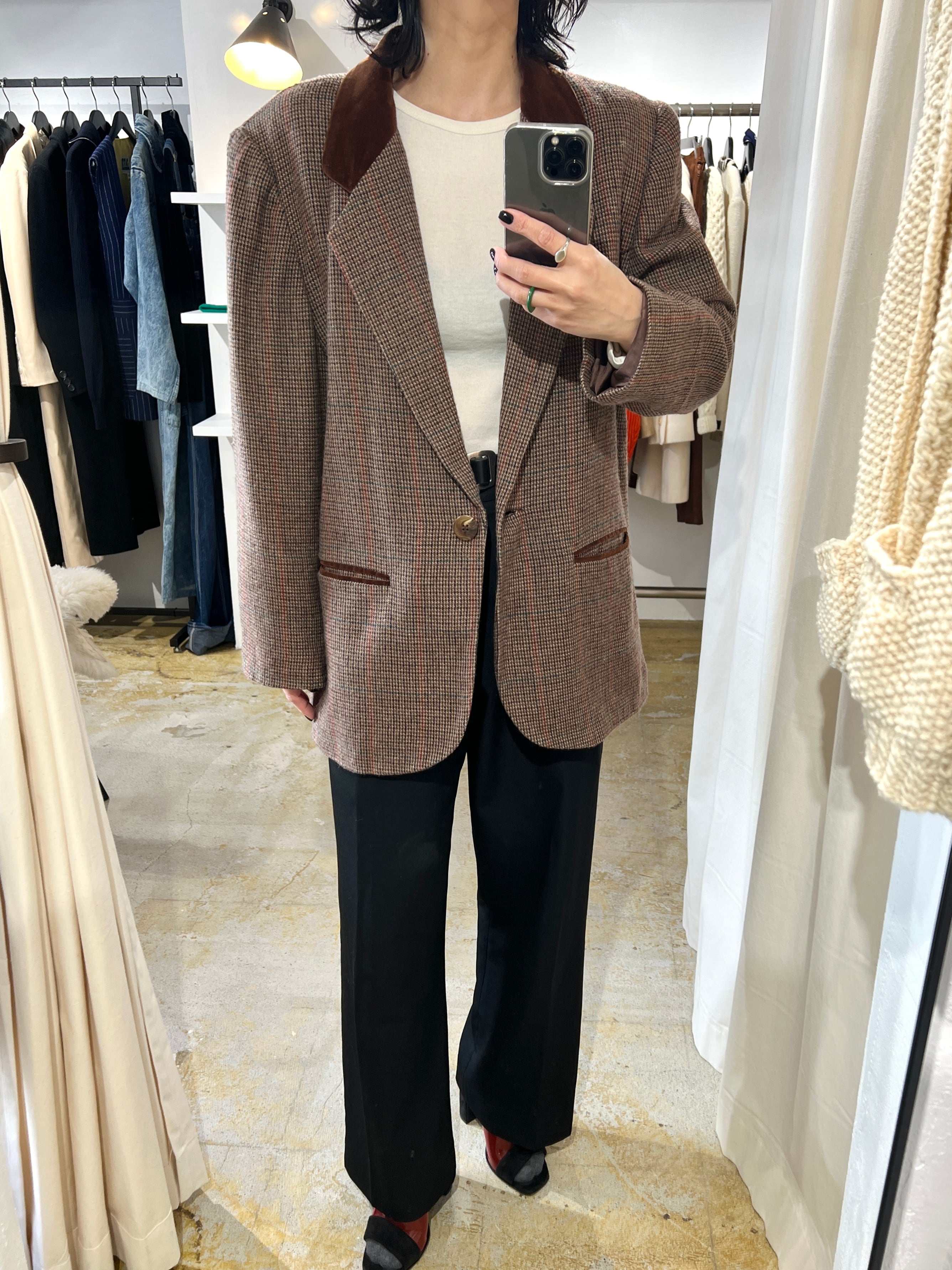 80-90's velvet collar tweeted jacket