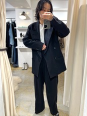 女性がオーバーサイズで着用するのに程よいサイズ感がポイントで買いつけました。