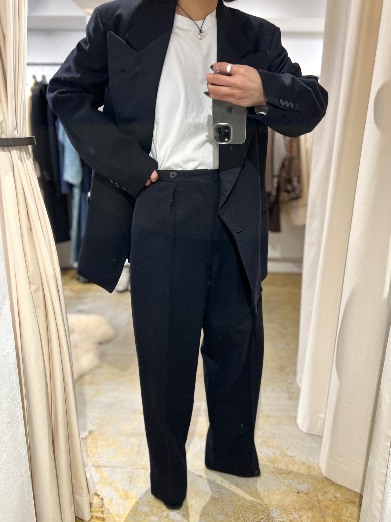 Quality:表記なし。ウールの風合い。ジャケットの裏地は袖と前身頃、パンツは裏地なしです。