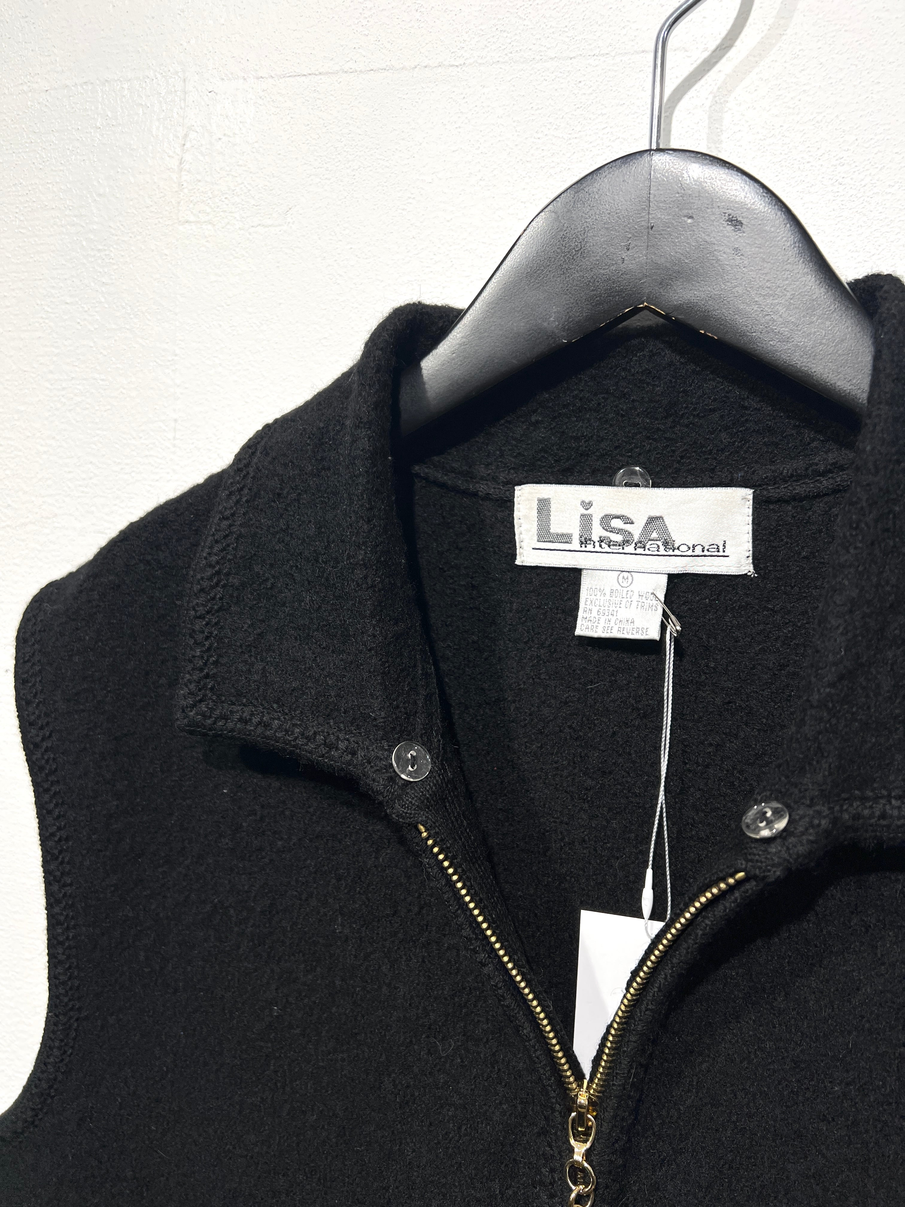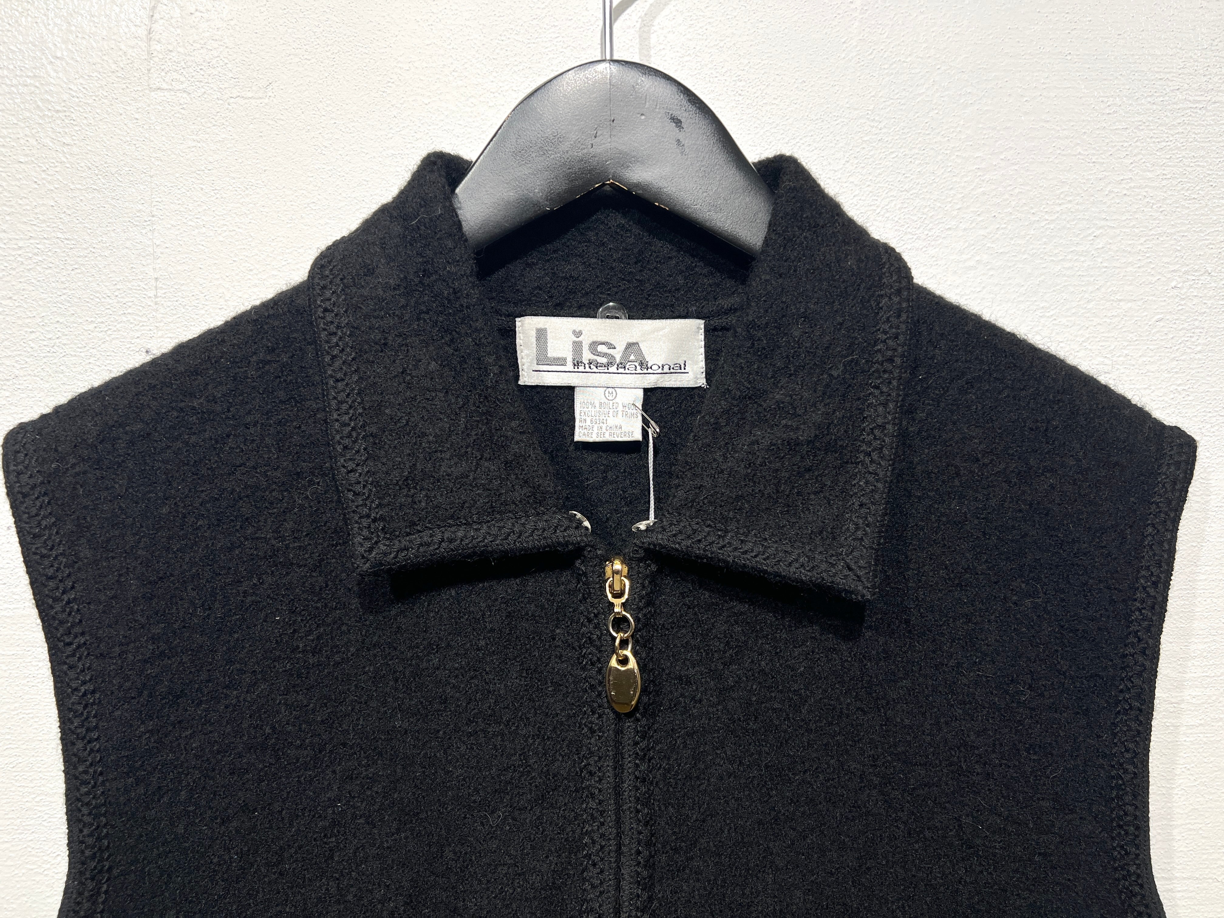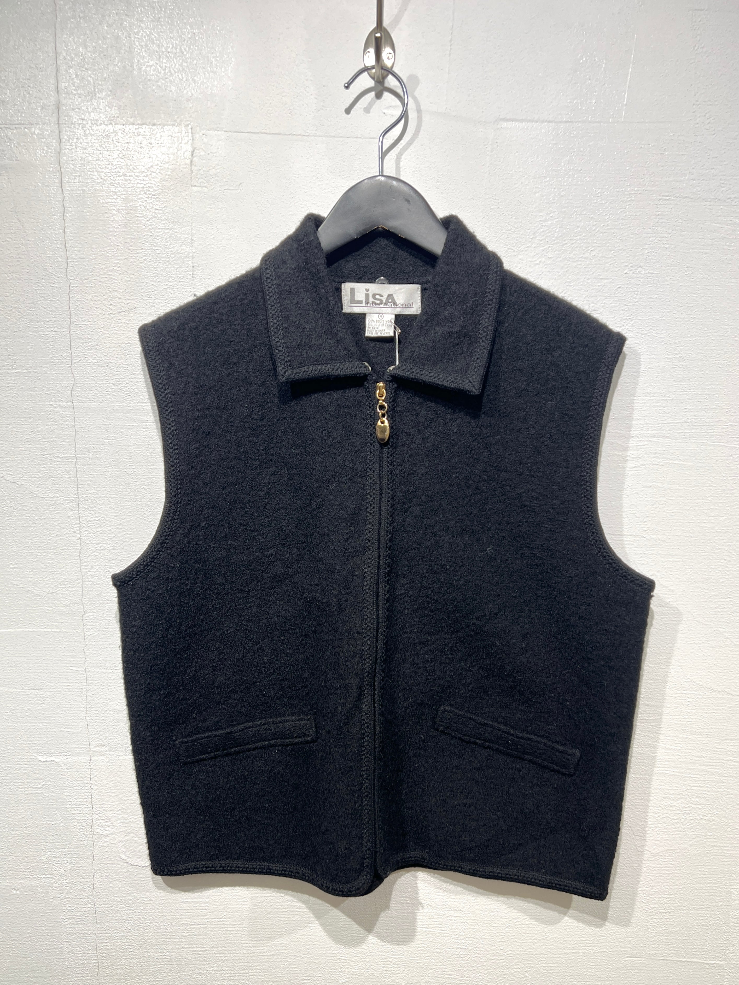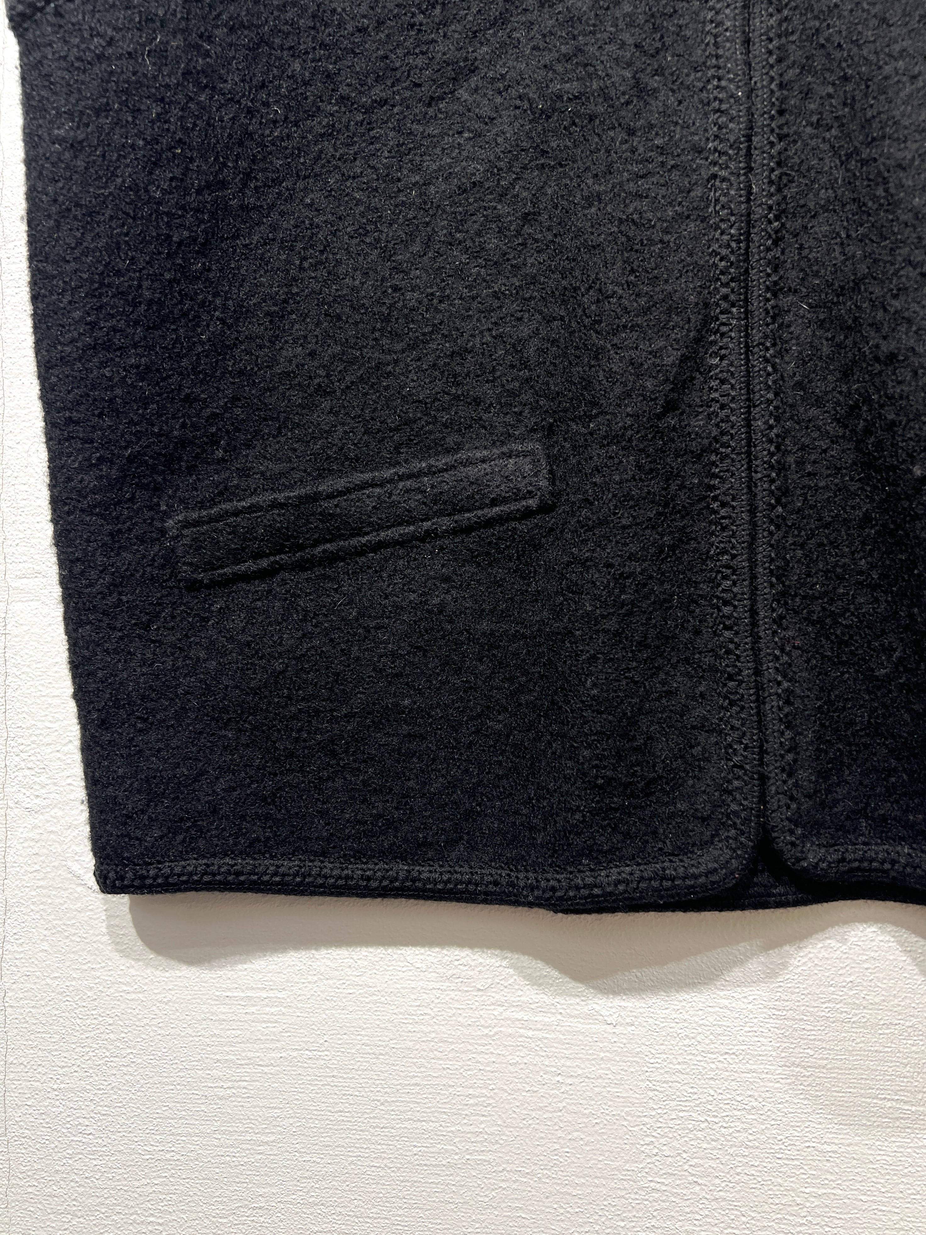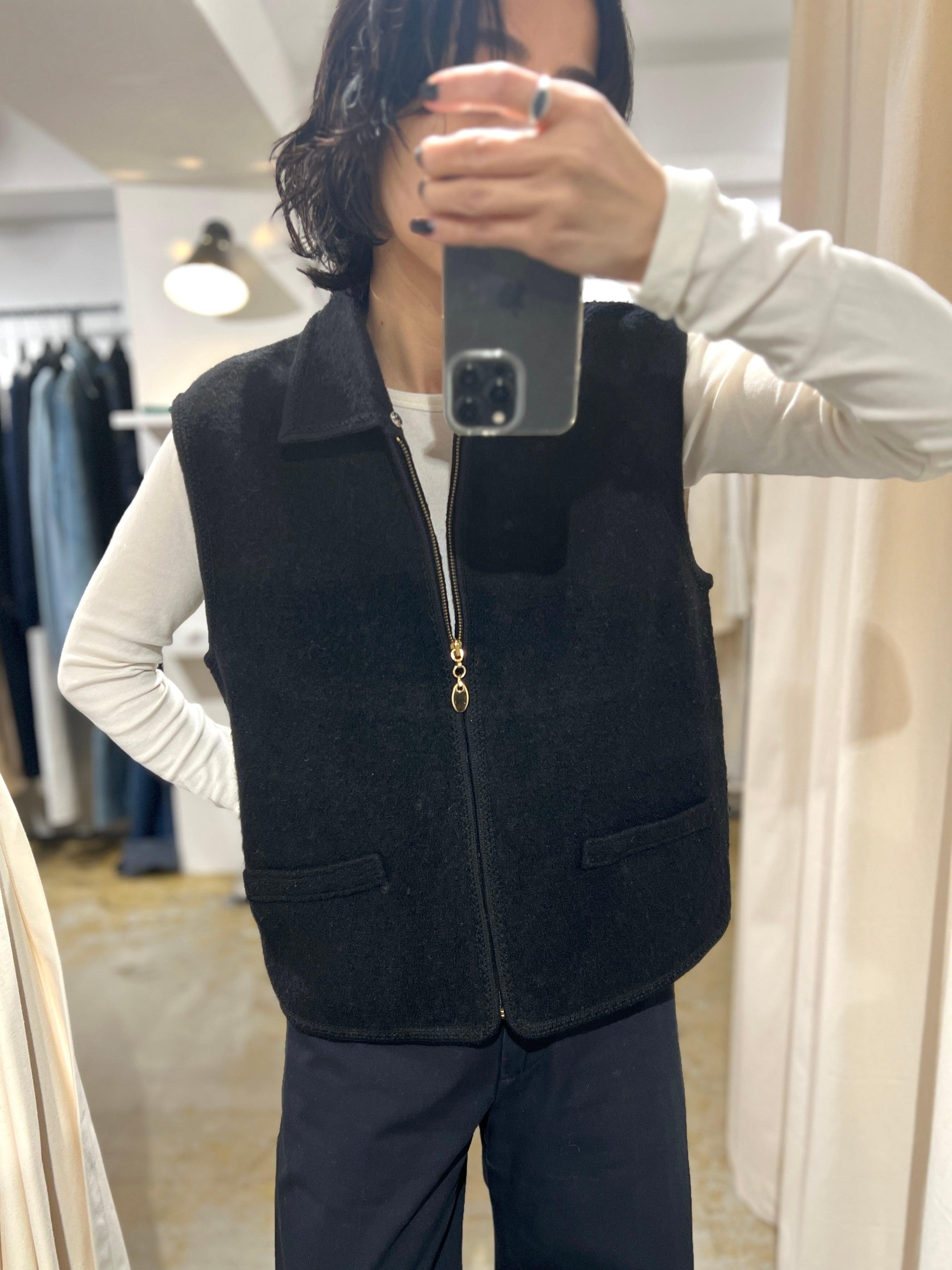圧縮されたぎゅっとっした風合いのボイルドウール素材のジップアップベスト。