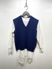 シャツやカットソーとレイヤードしたり、ジャケットの中に忍ばせて着こなしの➕アイテムとして持っていると便利なアイテムかと思います。