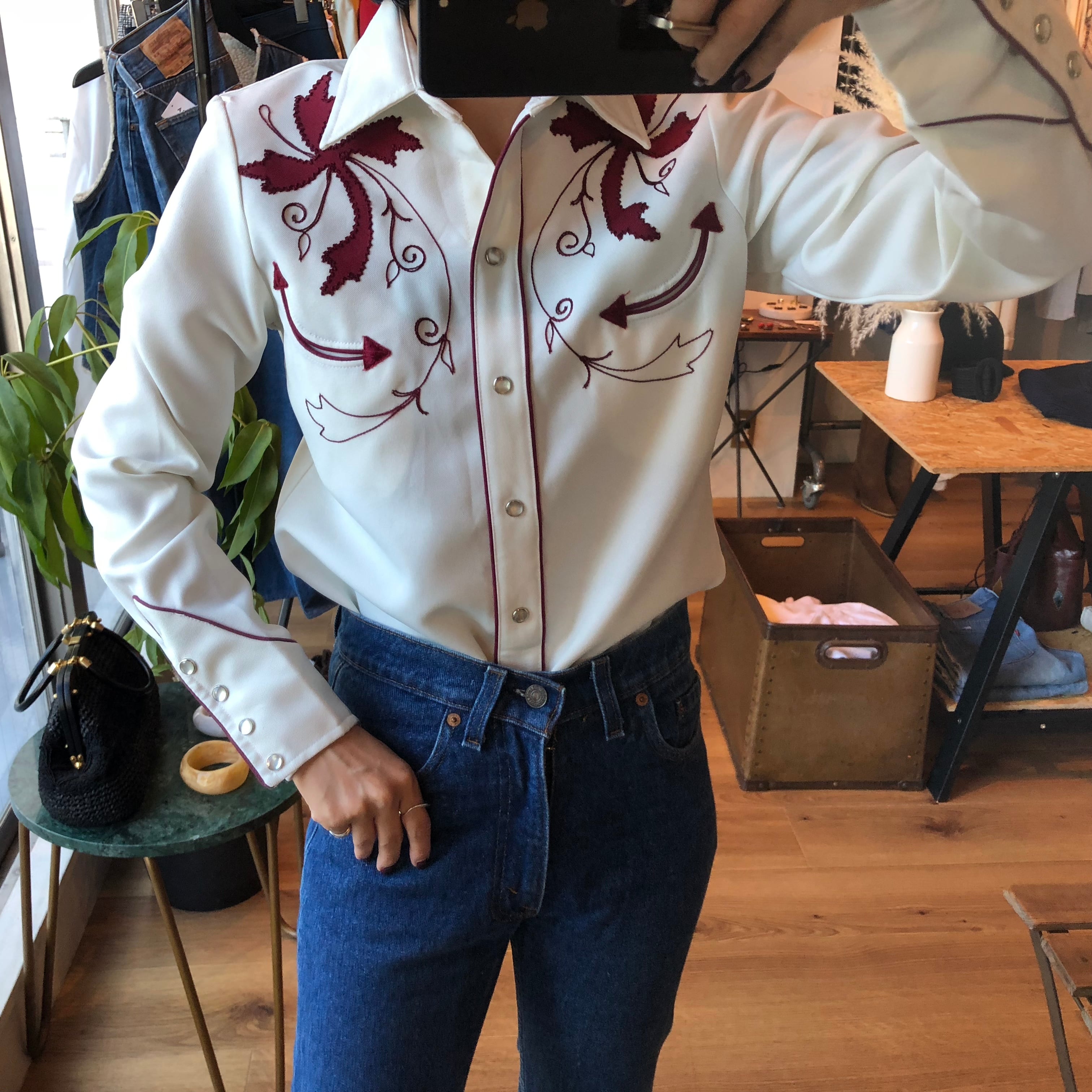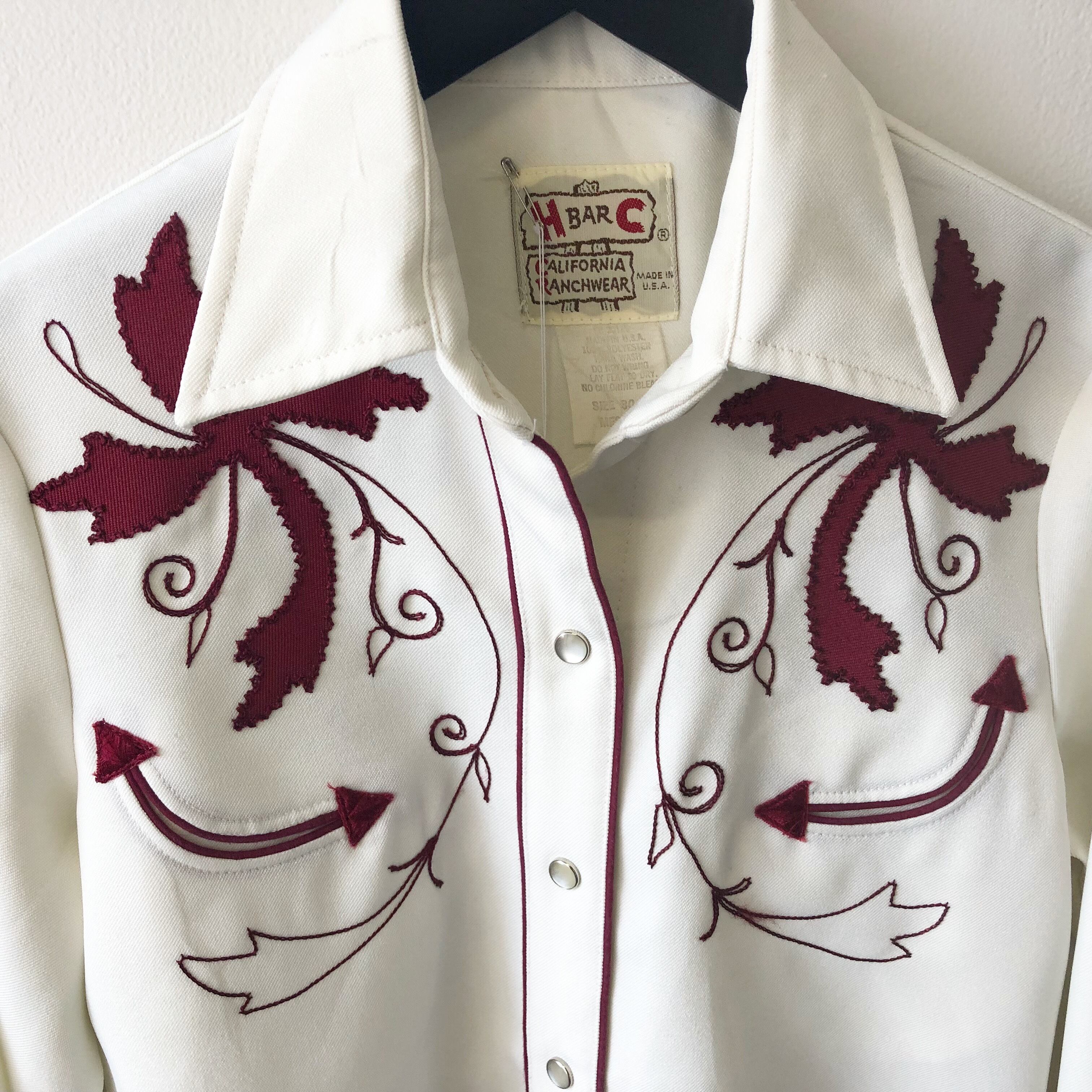 取り入れやすいエンジ×ホワイトのカラーが素敵なH BAR C のウエスタンシャツです。