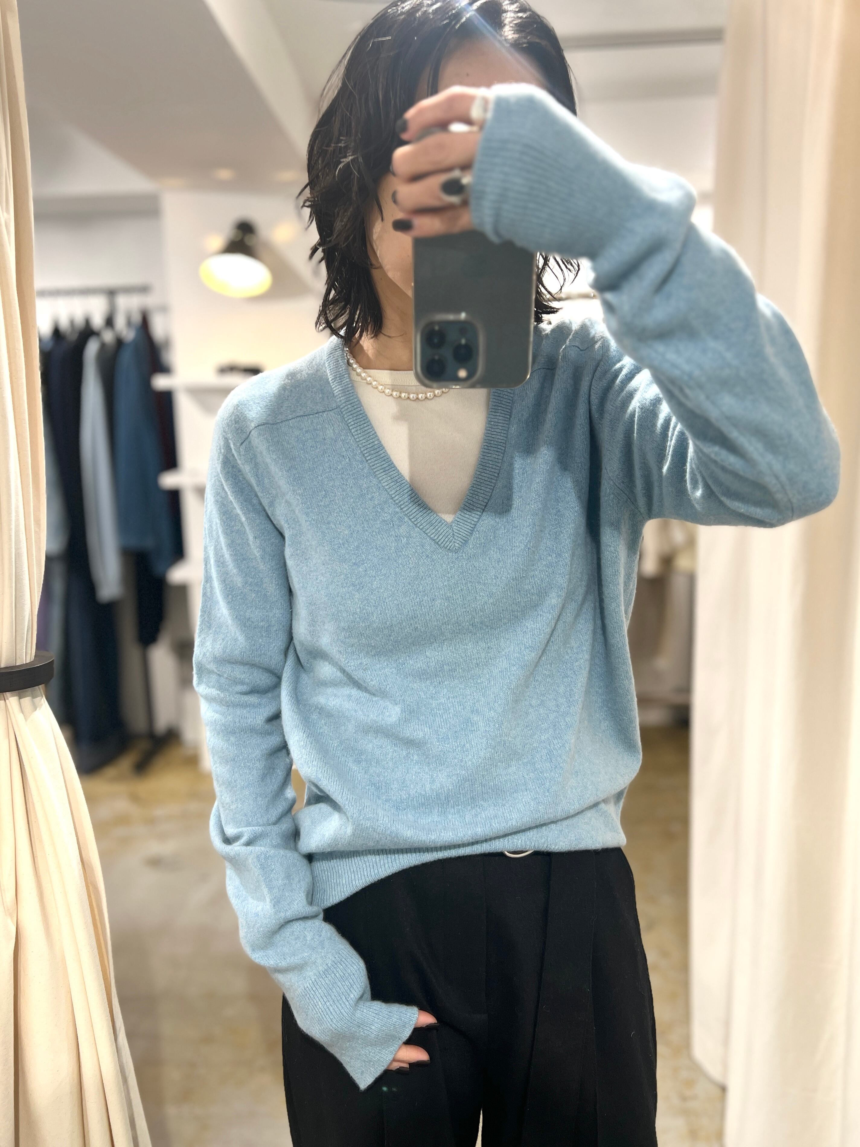 春先まで活躍するペールトーンのカシミヤ100%のニット。