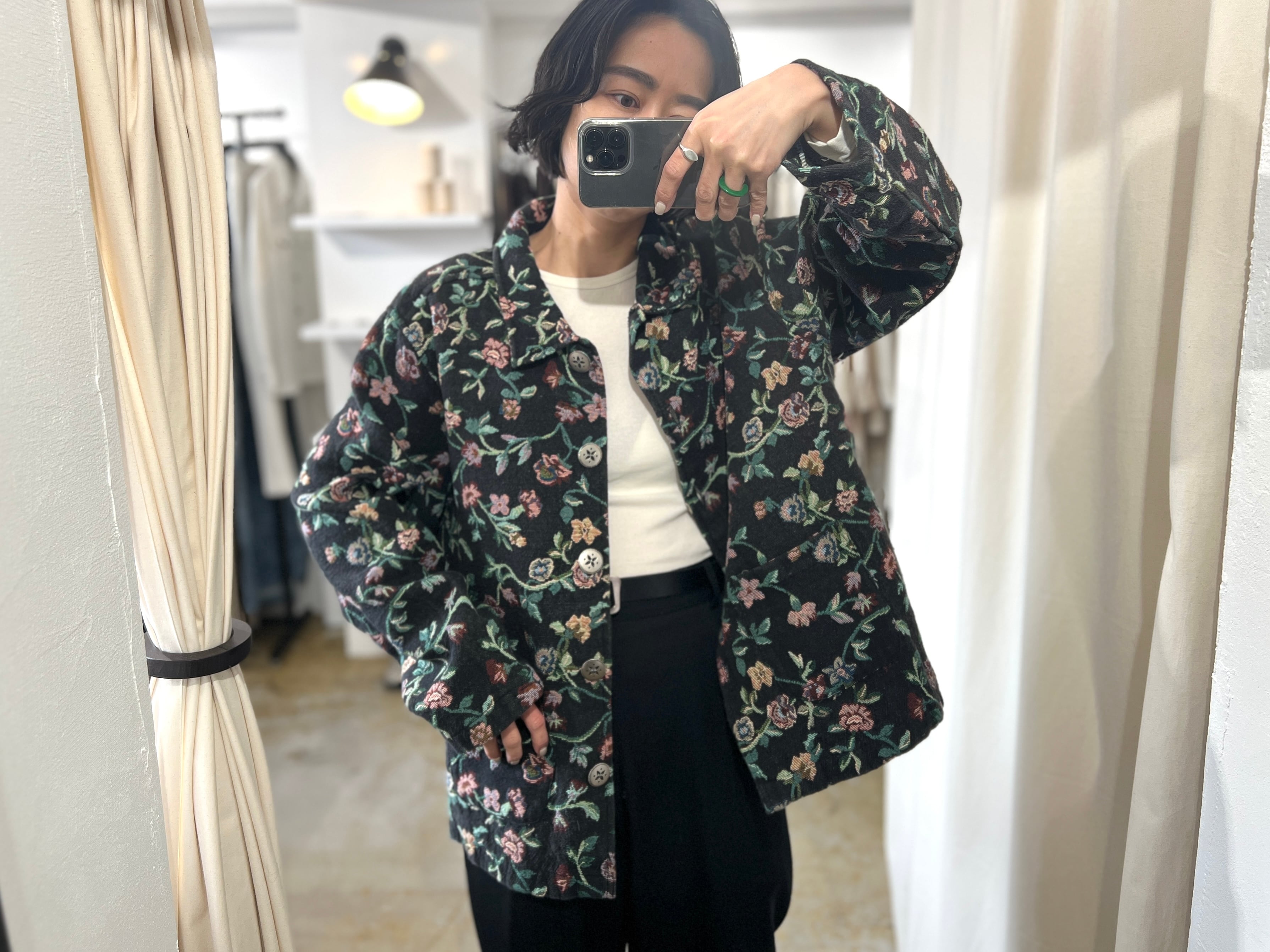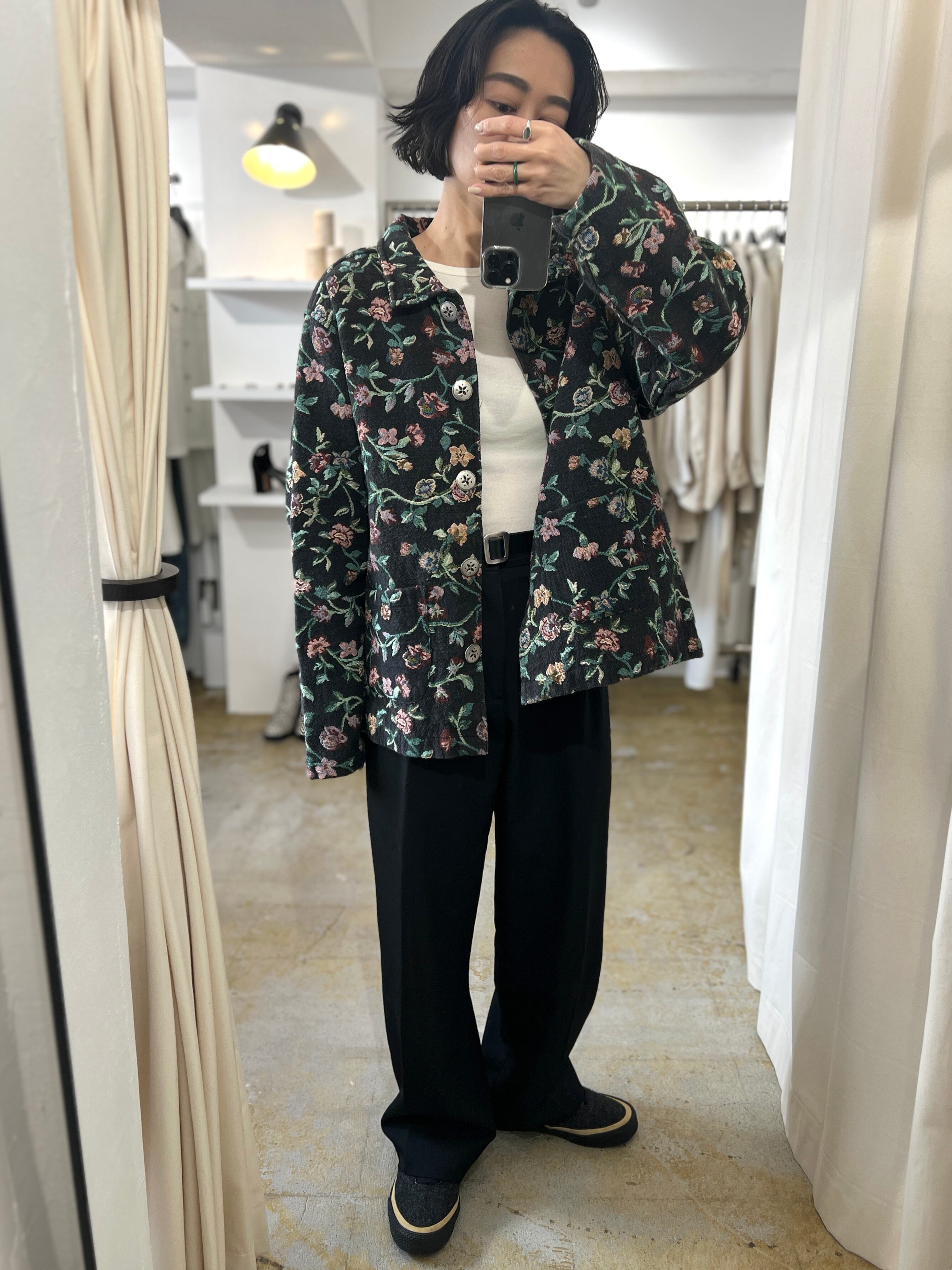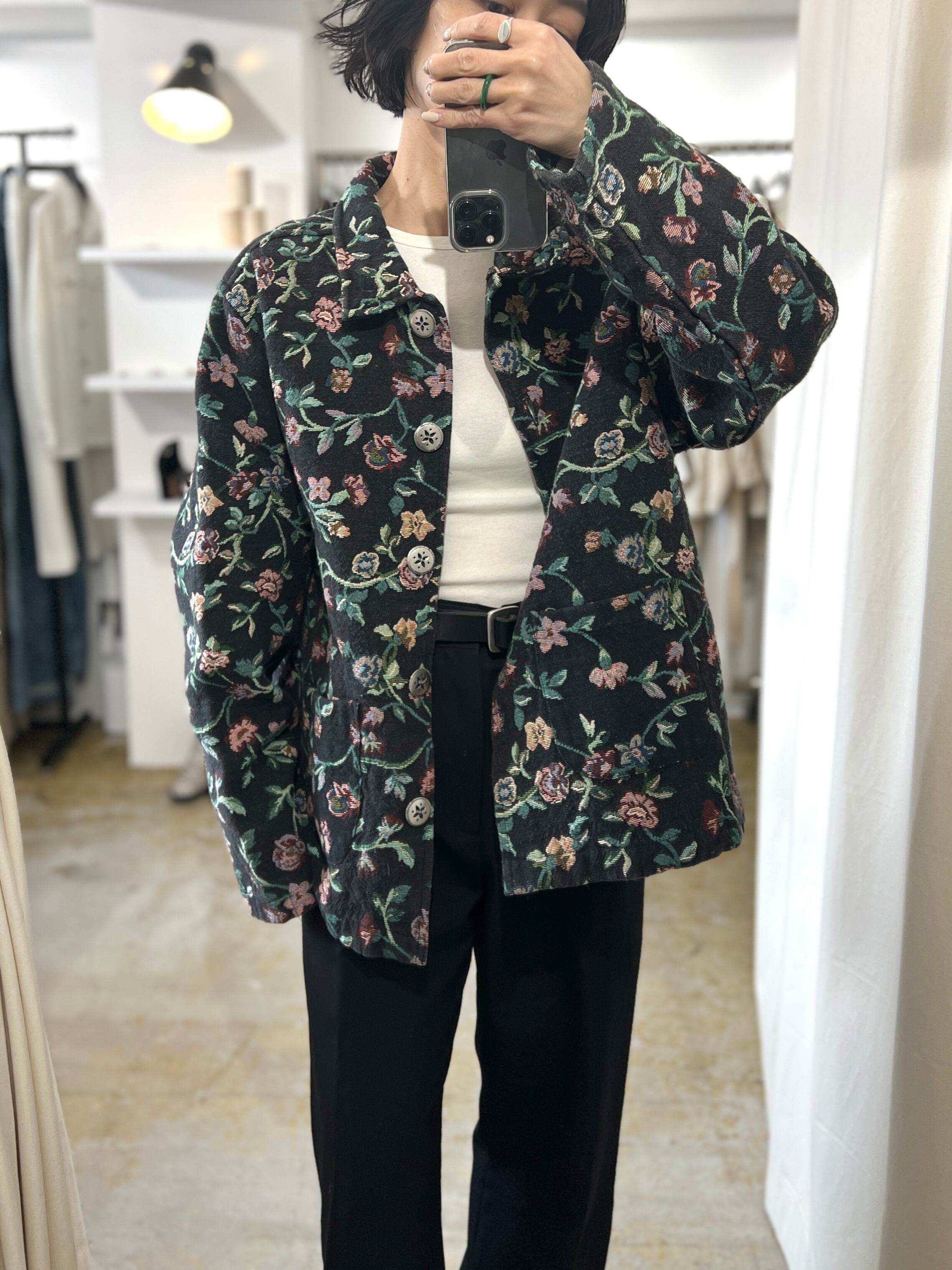 美しい絨毯のような花柄の織りが素敵な90年代のタペストリージャケット。