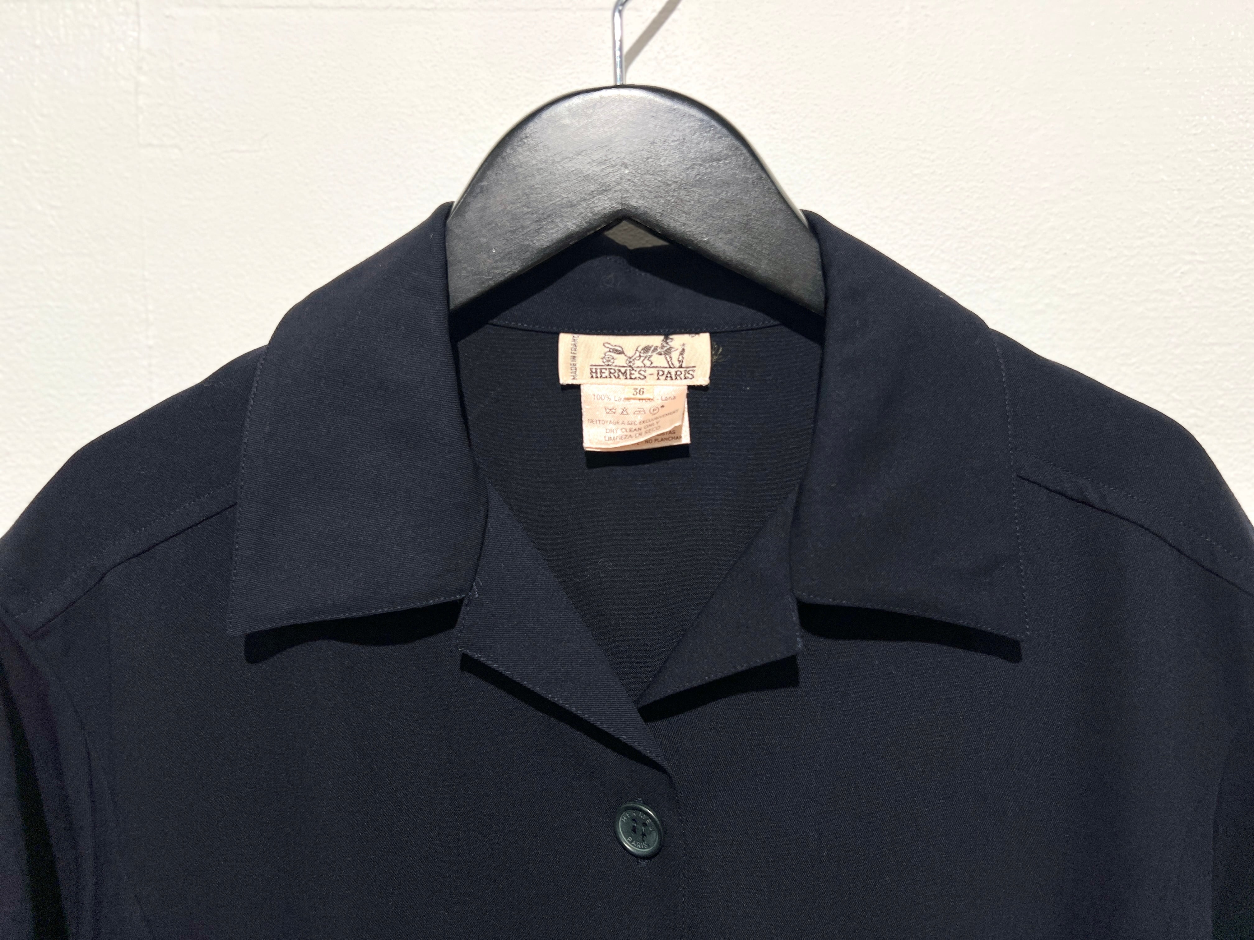 仕立てや細部のパーツまで美しいヴィンテージHERMÈSのウールギャバジンのシャツジャケット。