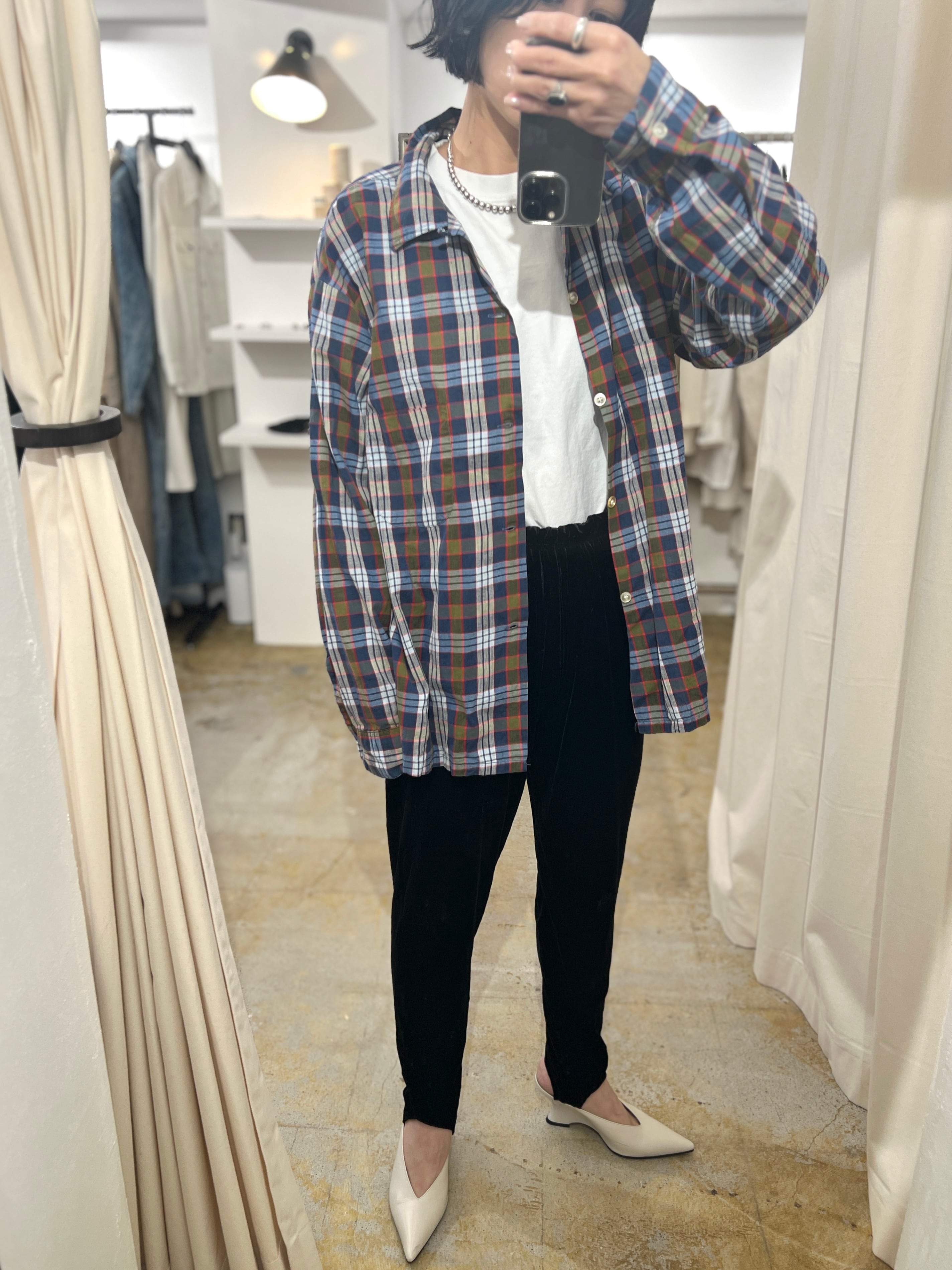 足元のバランスが新鮮な印象になりベロアでカジュアルになり過ぎないのもポイントです。
