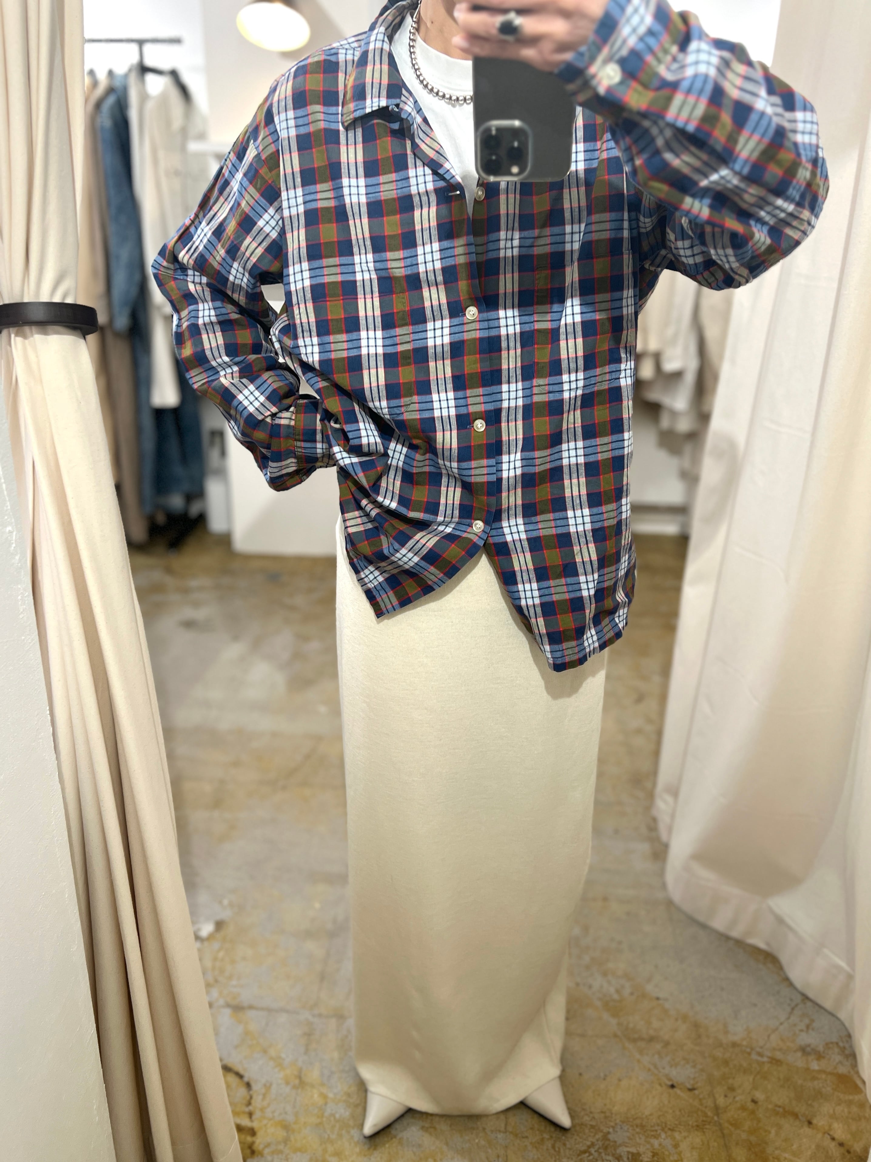 Model : 158cm着用で丈も全体的なサイズ感も大きいです。