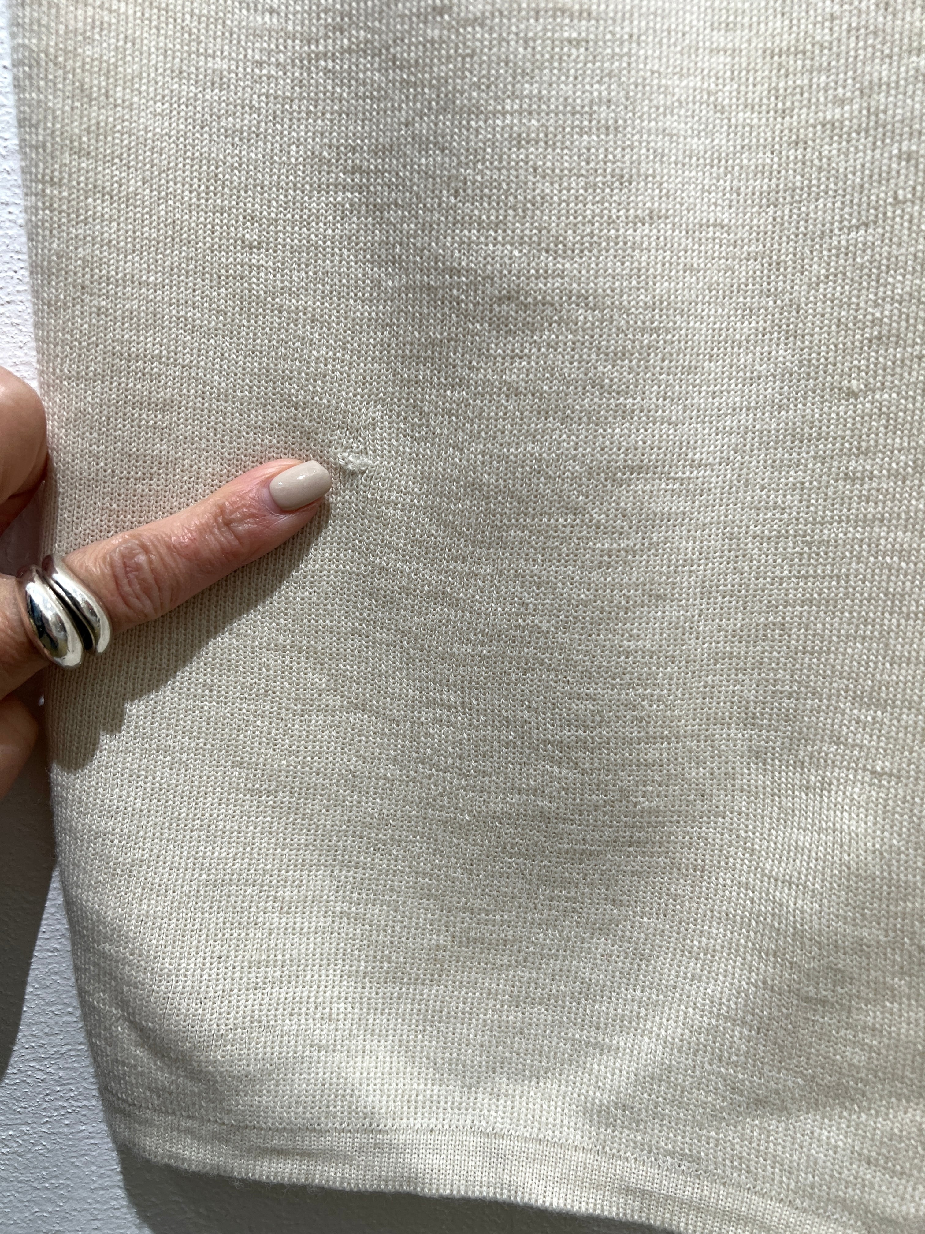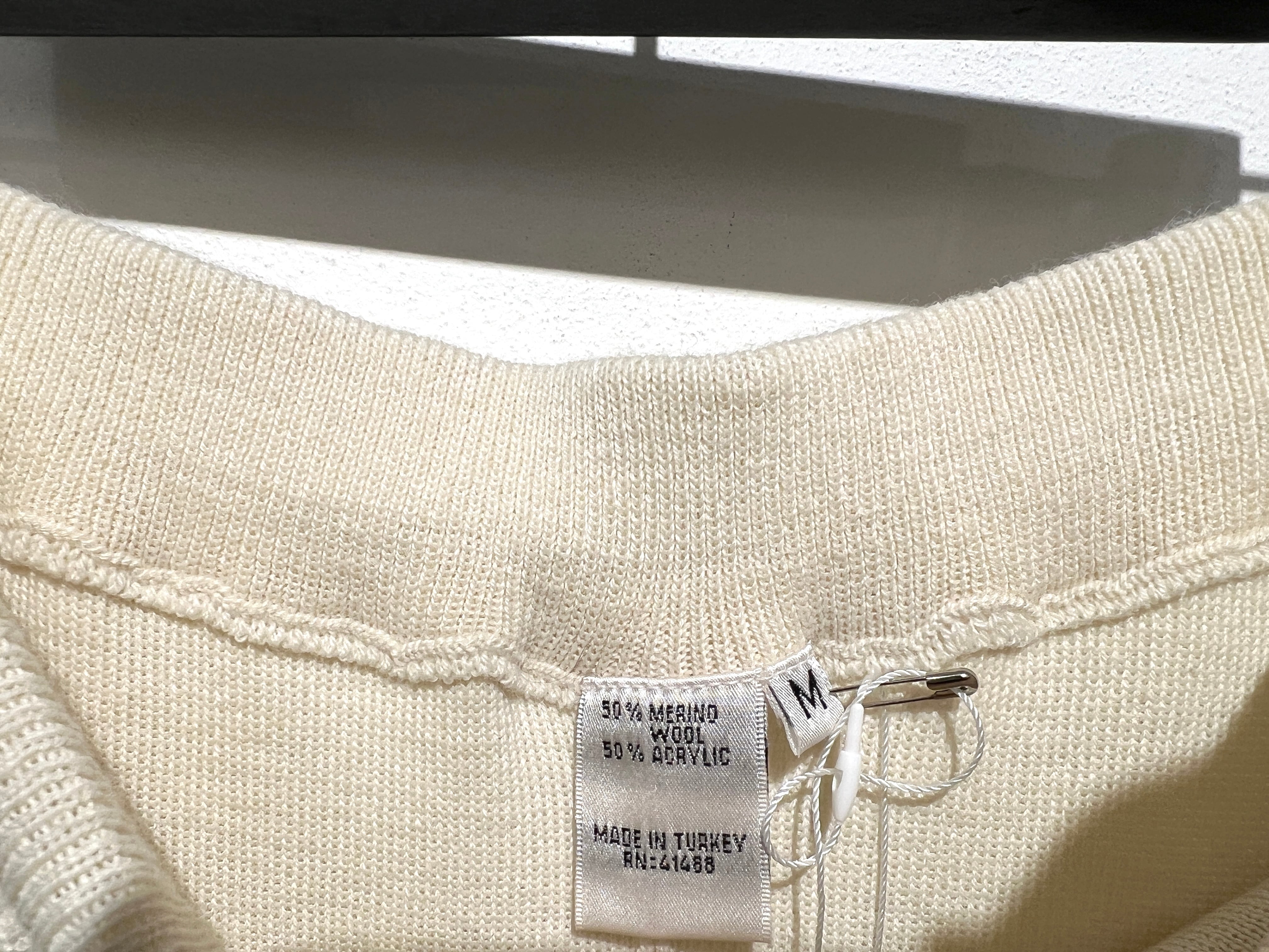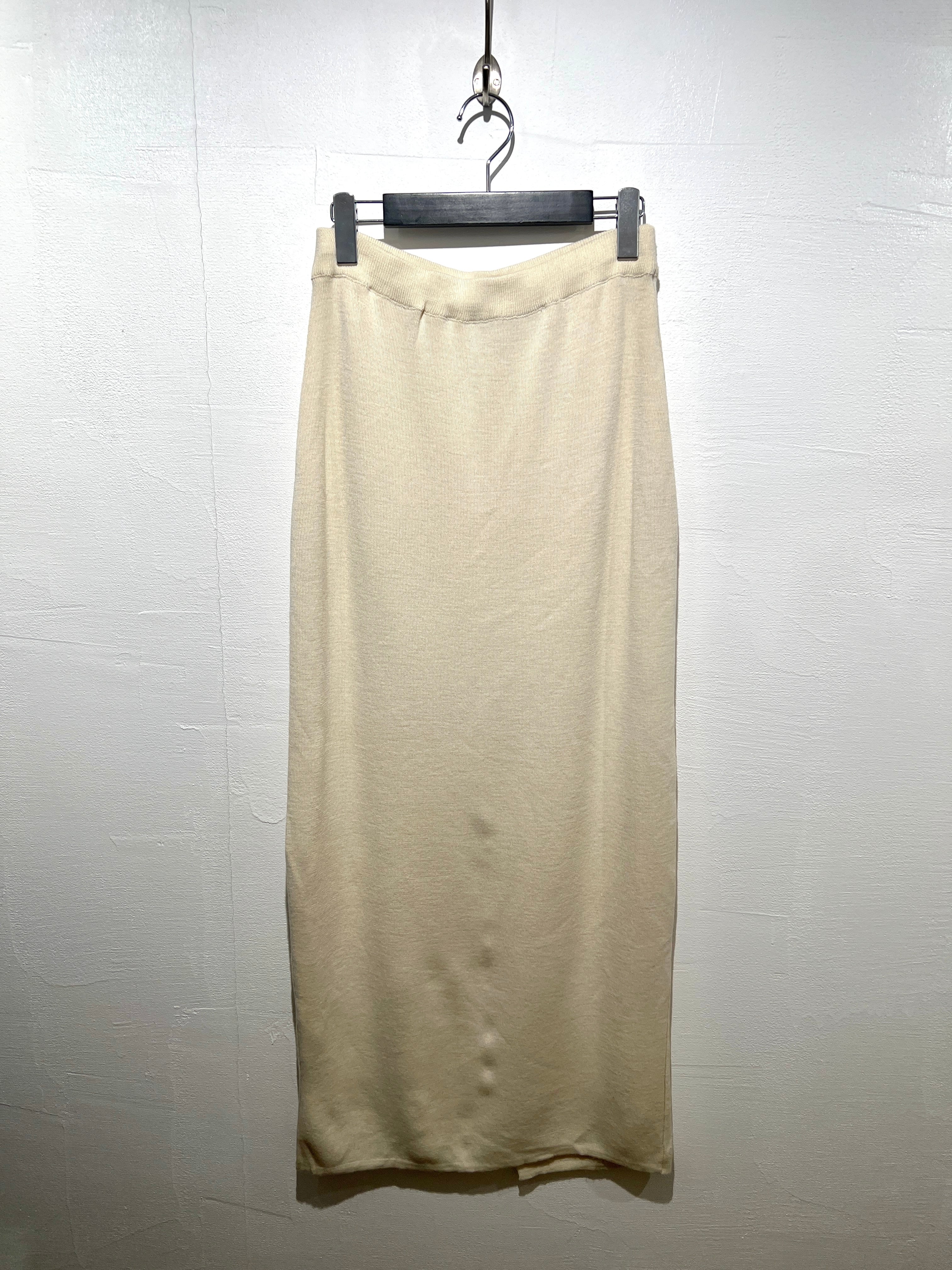 優しいクリームカラーのホワイトリブニット素材が可愛い90年代のメリノウールスカート。
