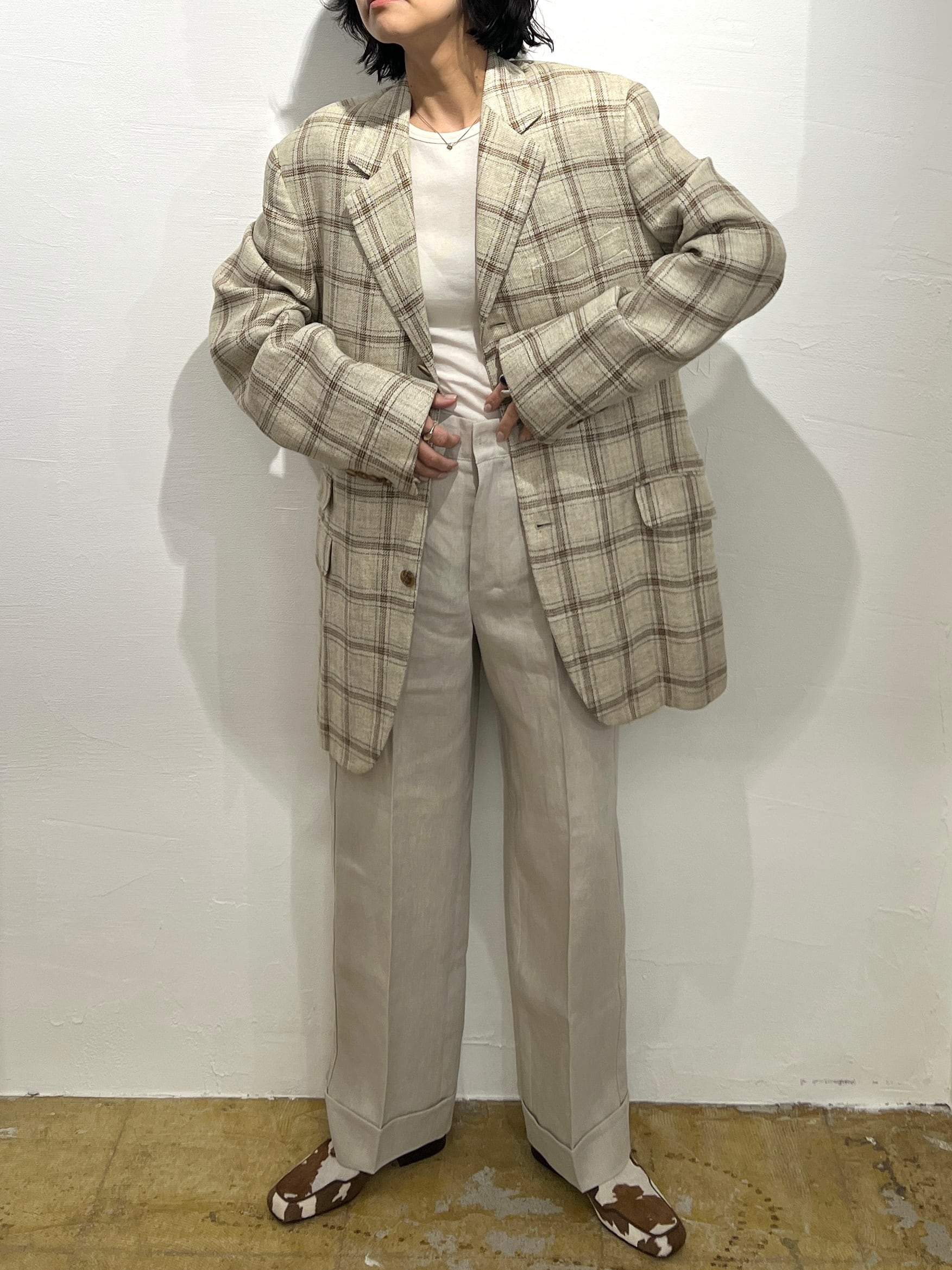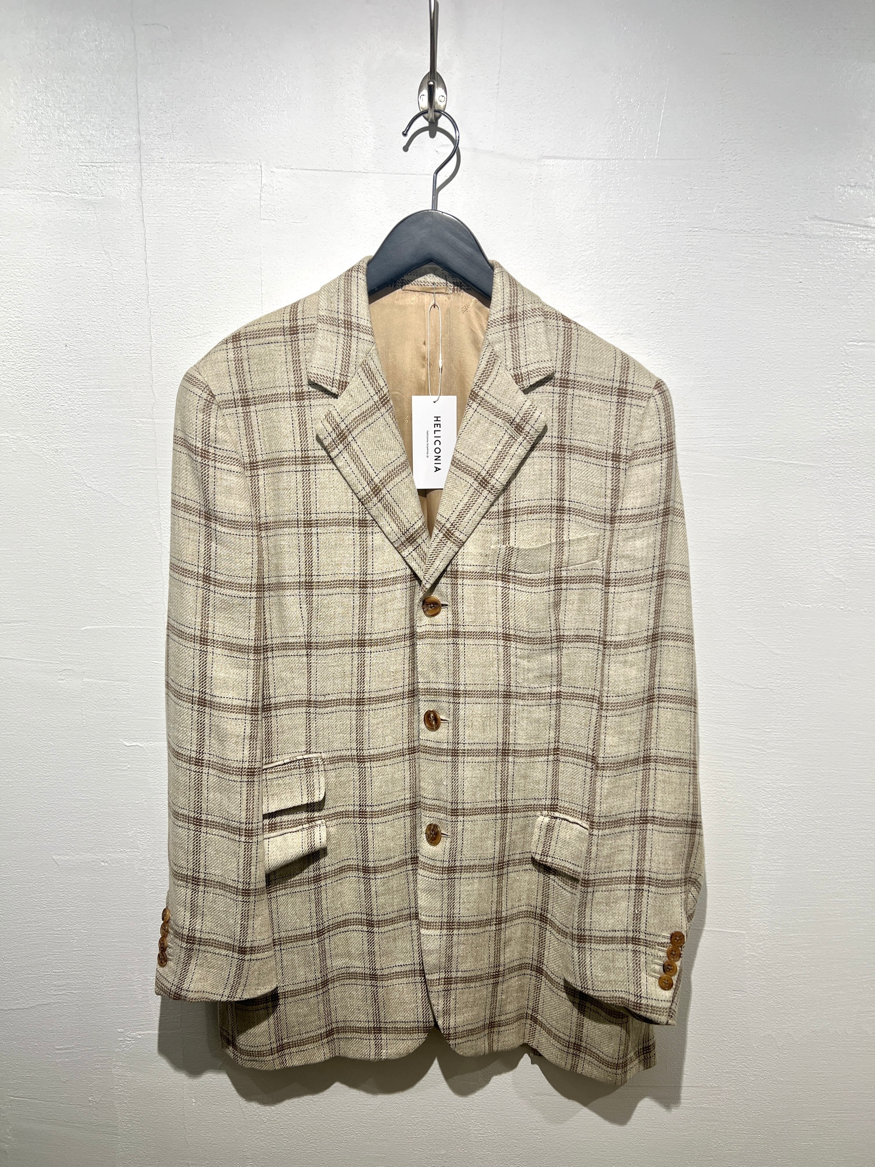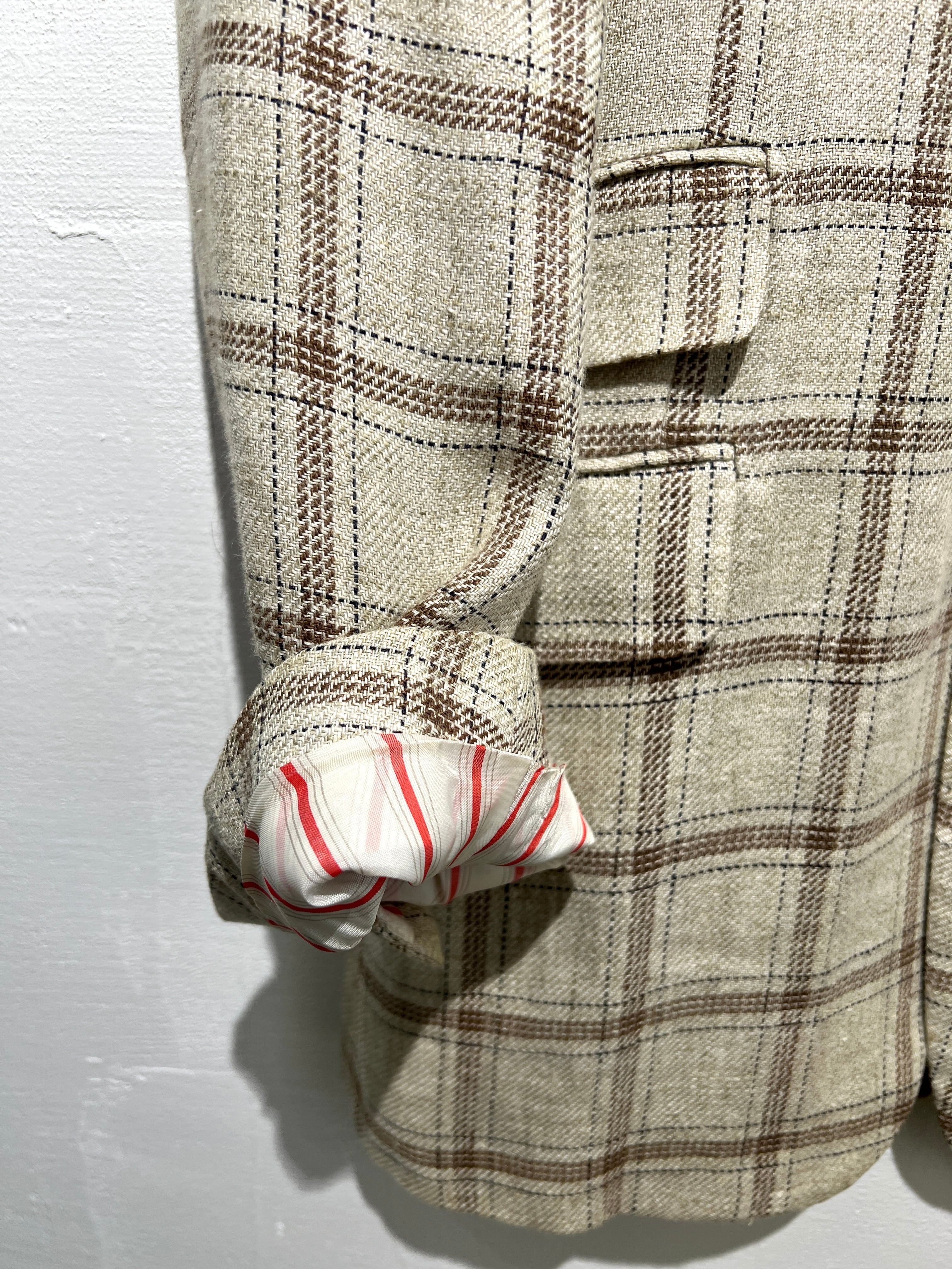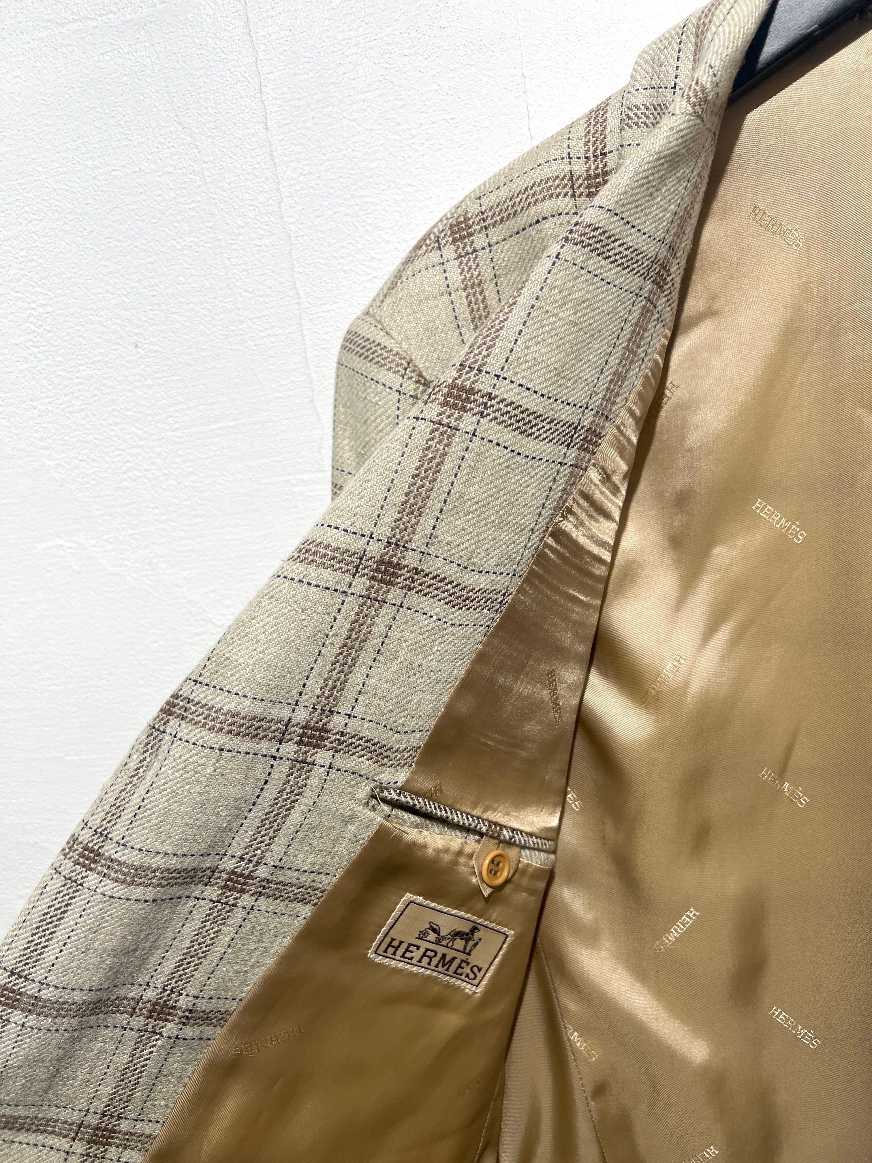 チェックの柄や袖裏など細部までHERMESメゾンの上質さ可愛さの詰まったリネンチェックジャケット。