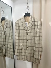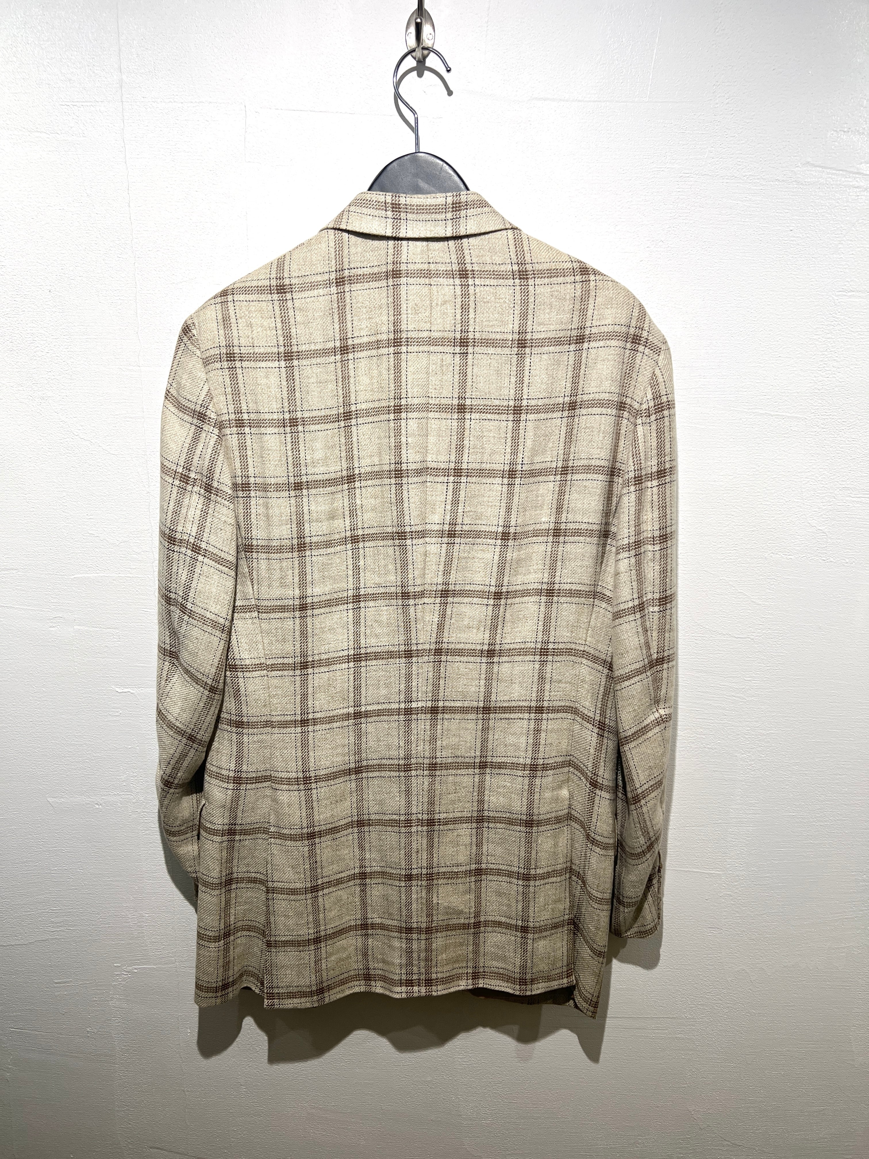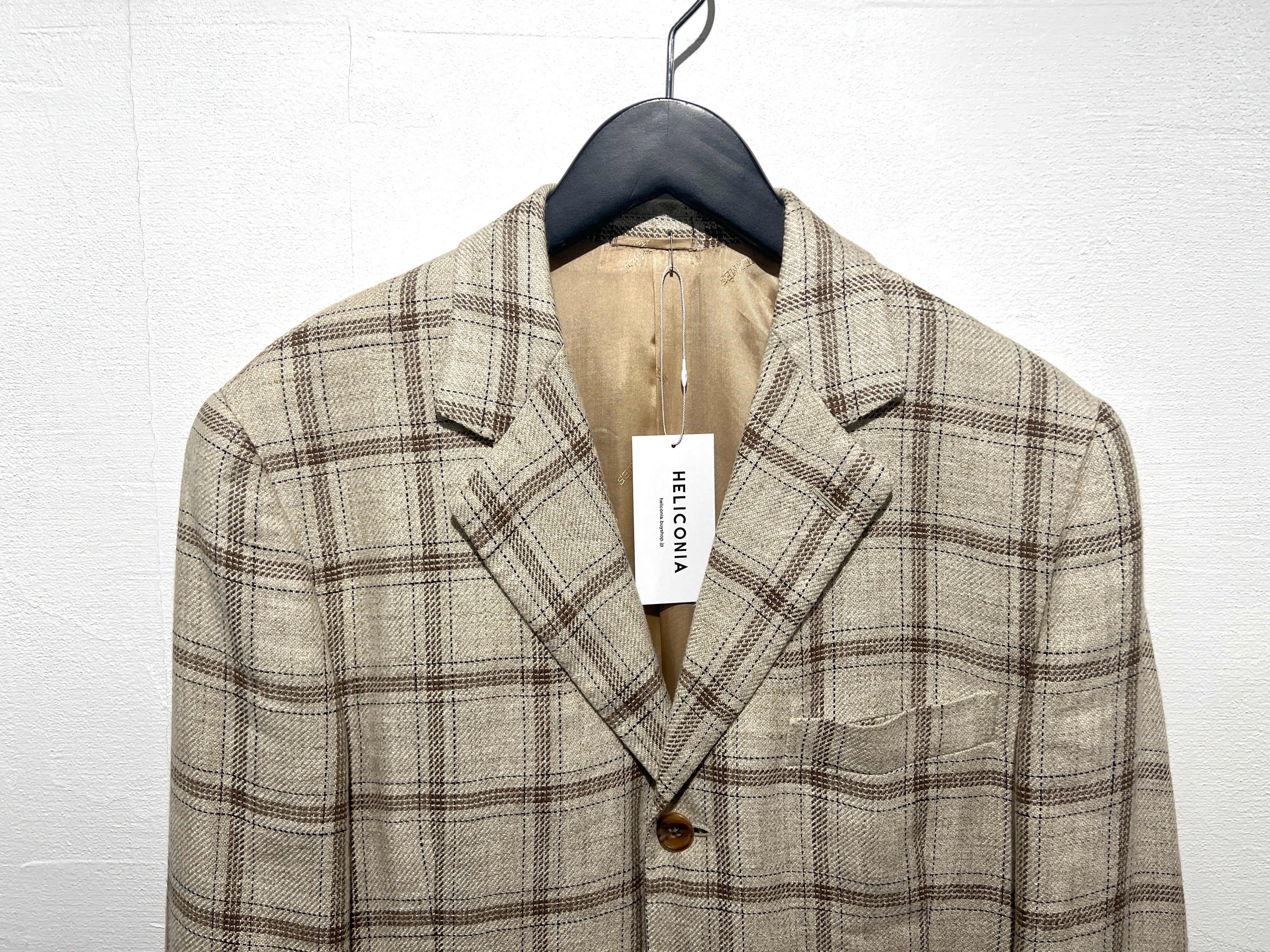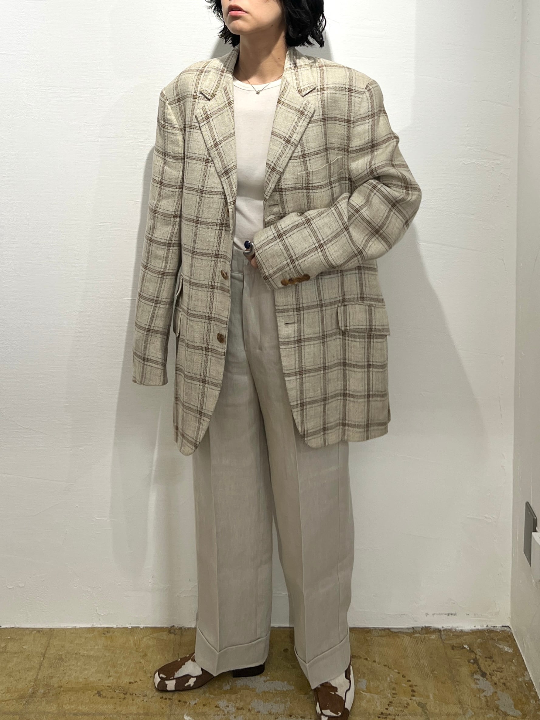 チェックの柄や袖裏など細部までHERMESメゾンの上質さ可愛さの詰まったリネンチェックジャケット。
