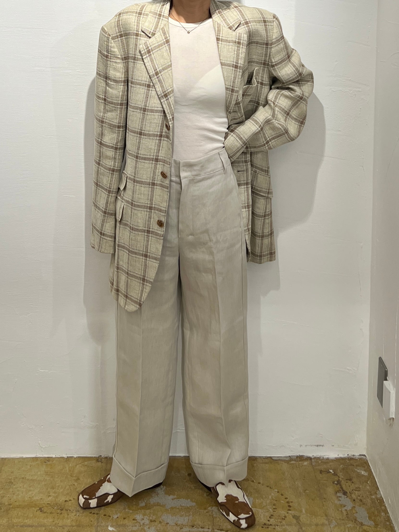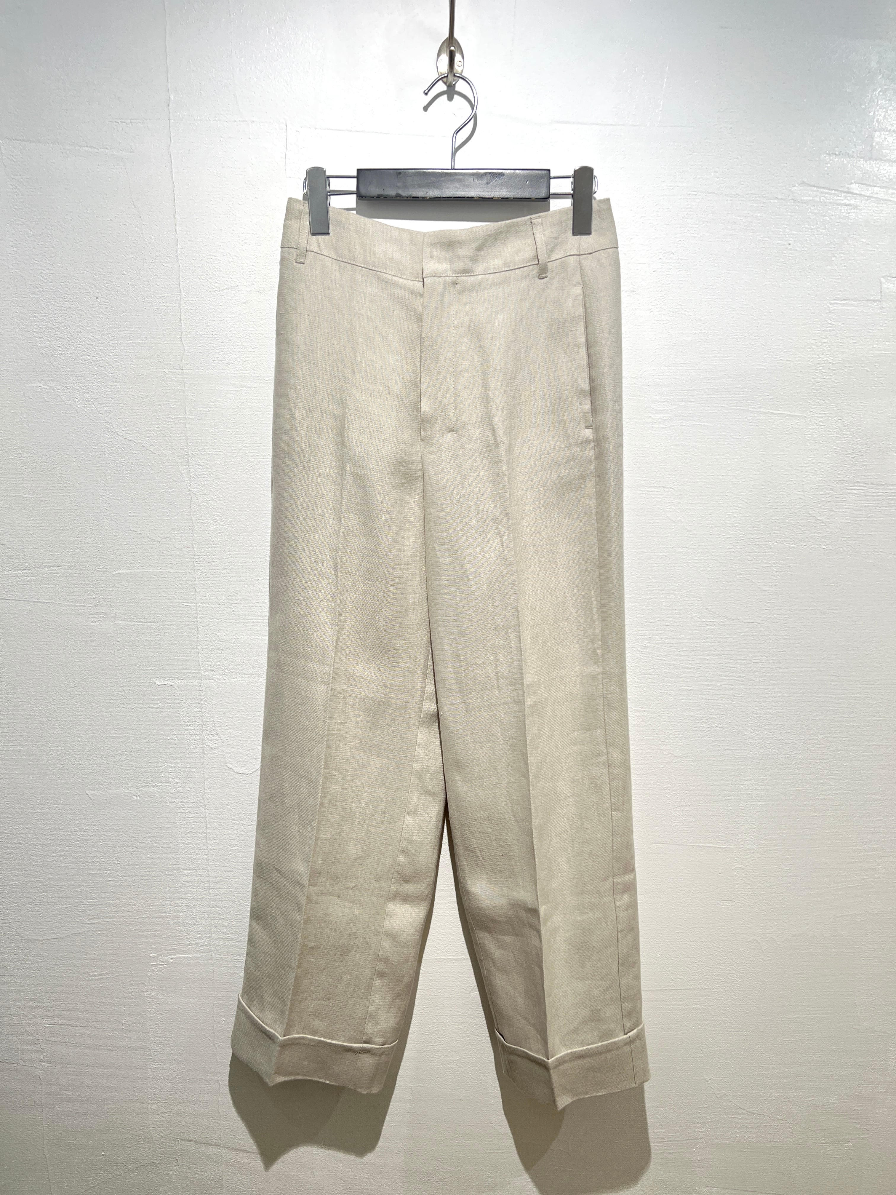 股上が深く裾がダブルになった太めのシルエットが素敵なMAX MARAのリネンパンツ。